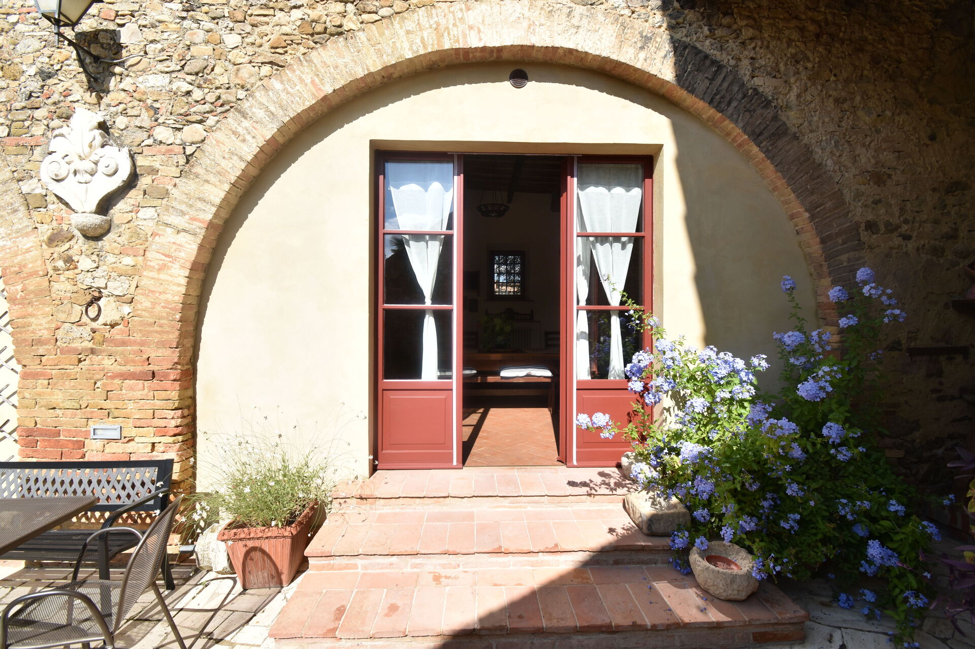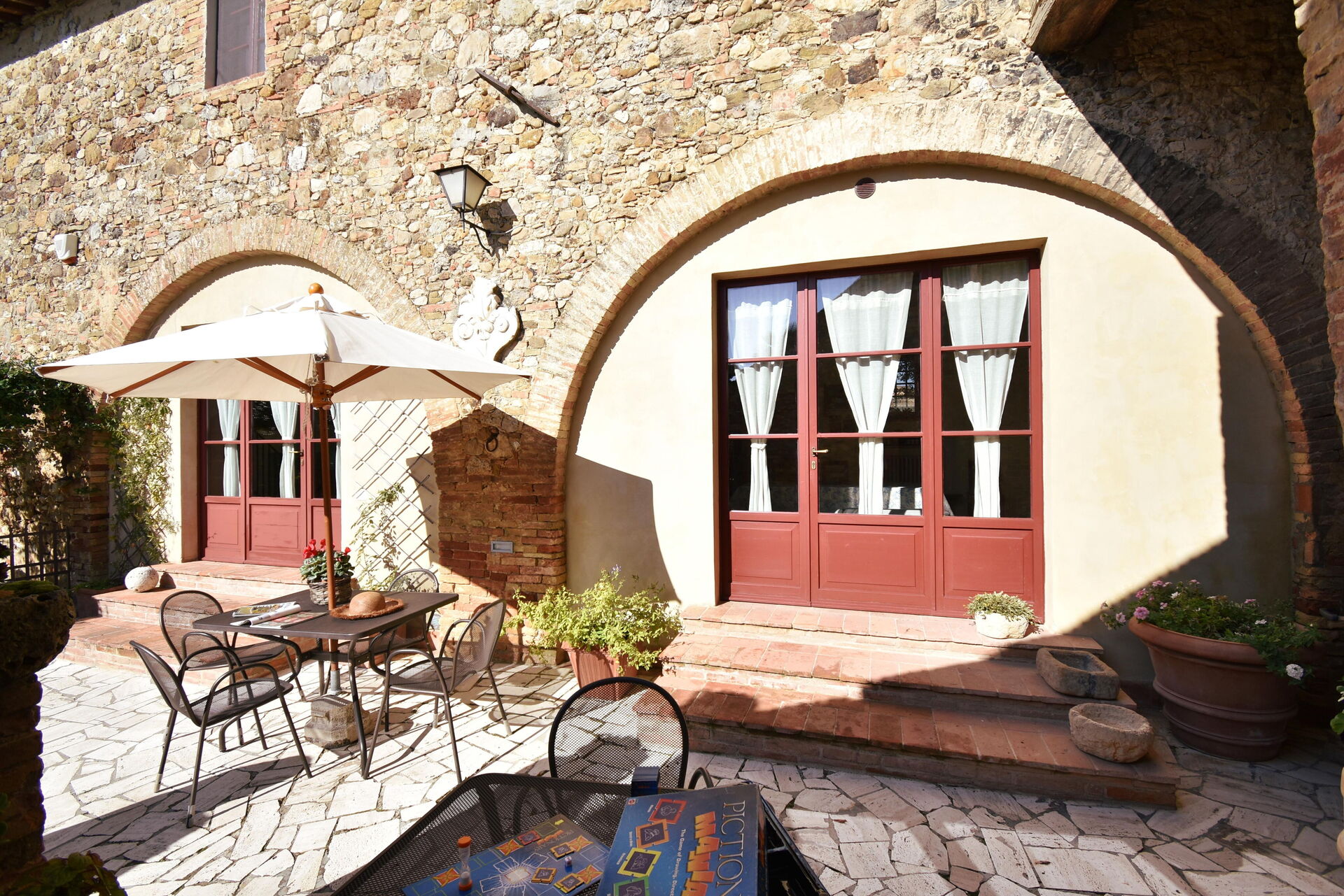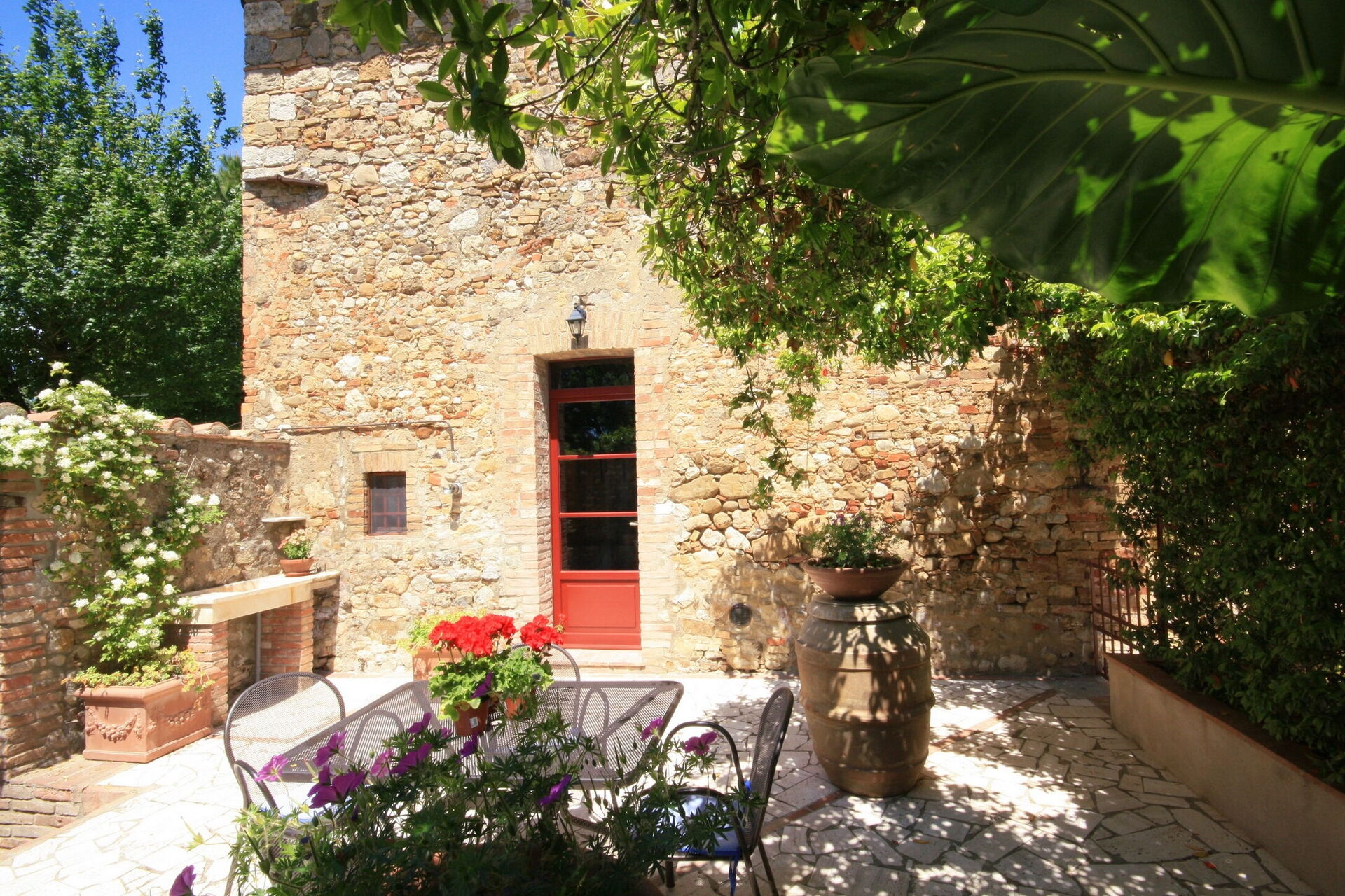 Podere Le Muricce is located 8 km (5 mi) from Siena, Italy and only 34 km (21 mi) from San Gimignano in the tourist area "Siena And Surroundings". Podere Le Muricce is a lovely stone building (300 sq m) with private pool, air conditioning and WiFi internet. The property can accommodate up to 12 guests comfortably in five bedrooms with four bathrooms.