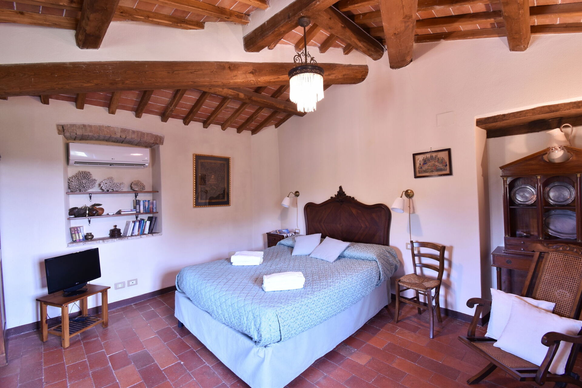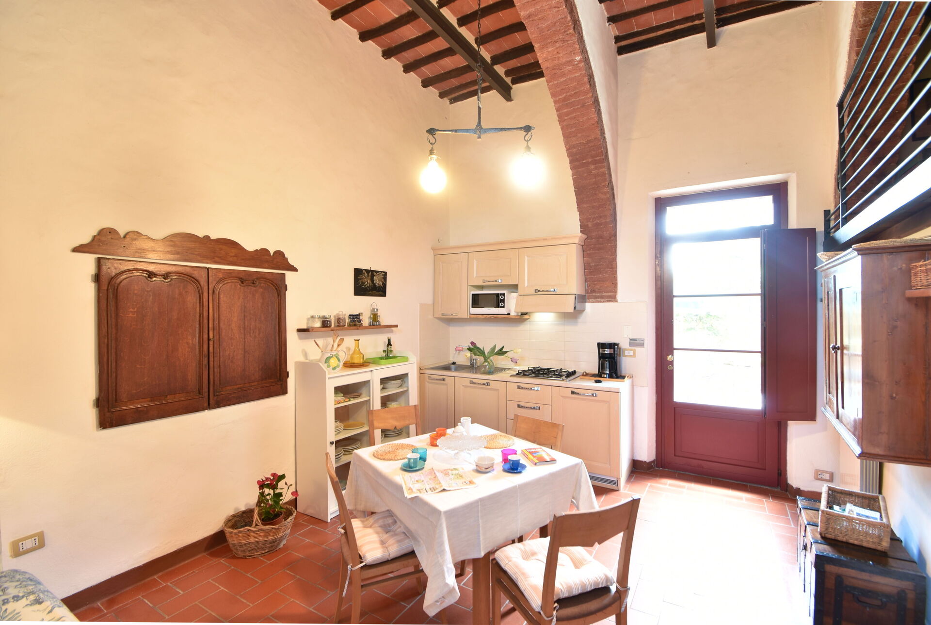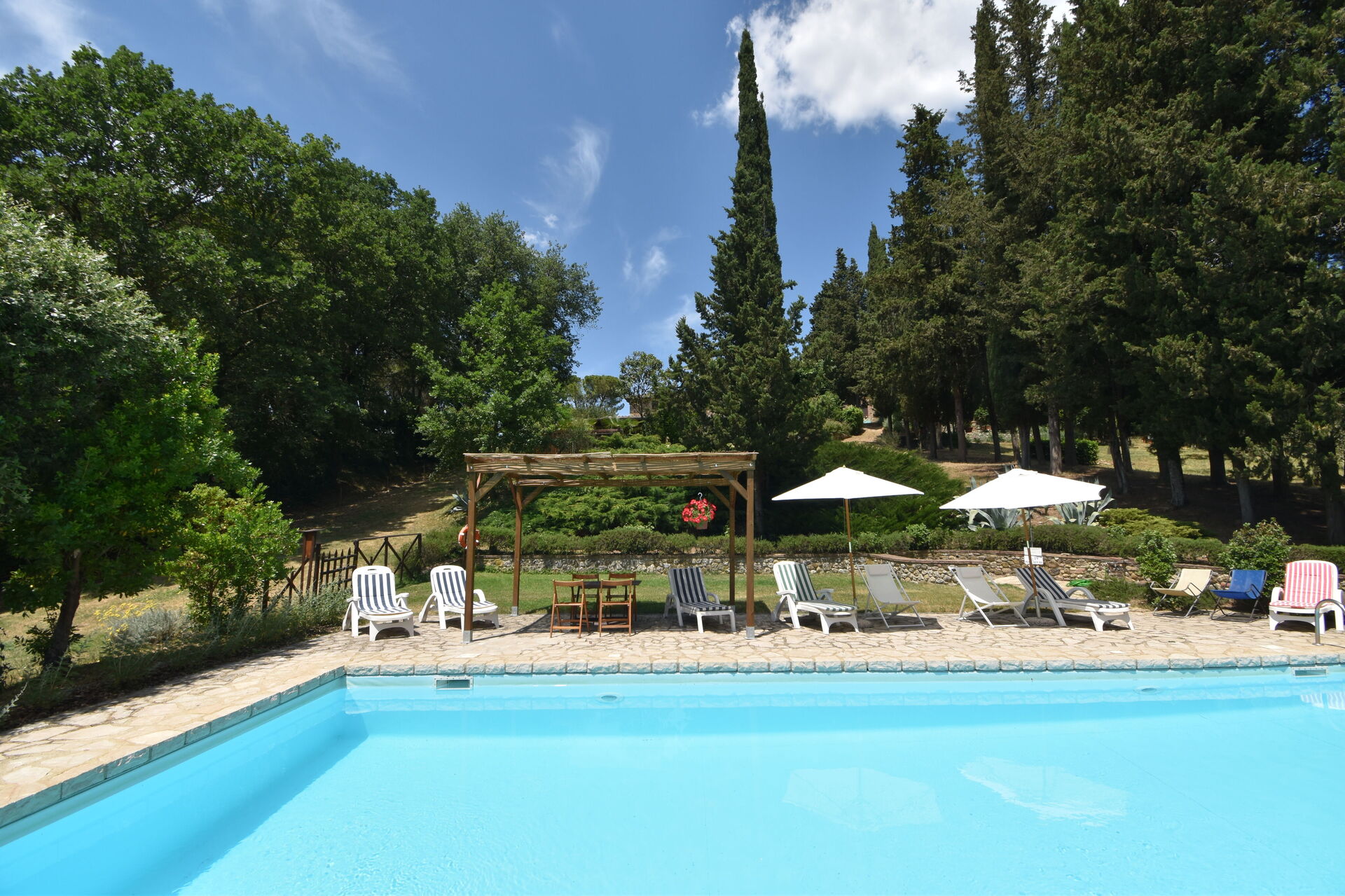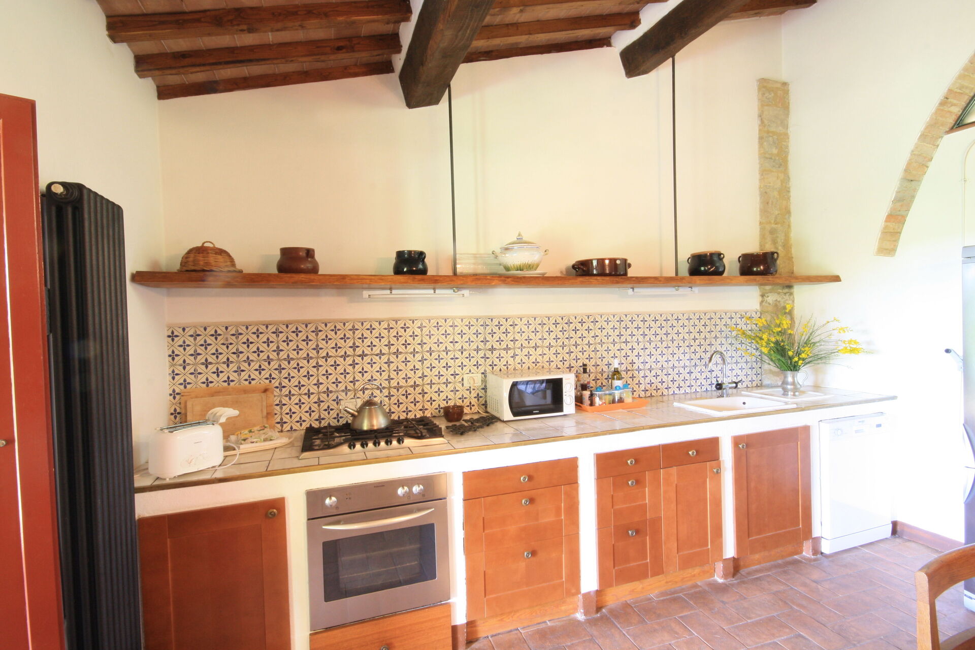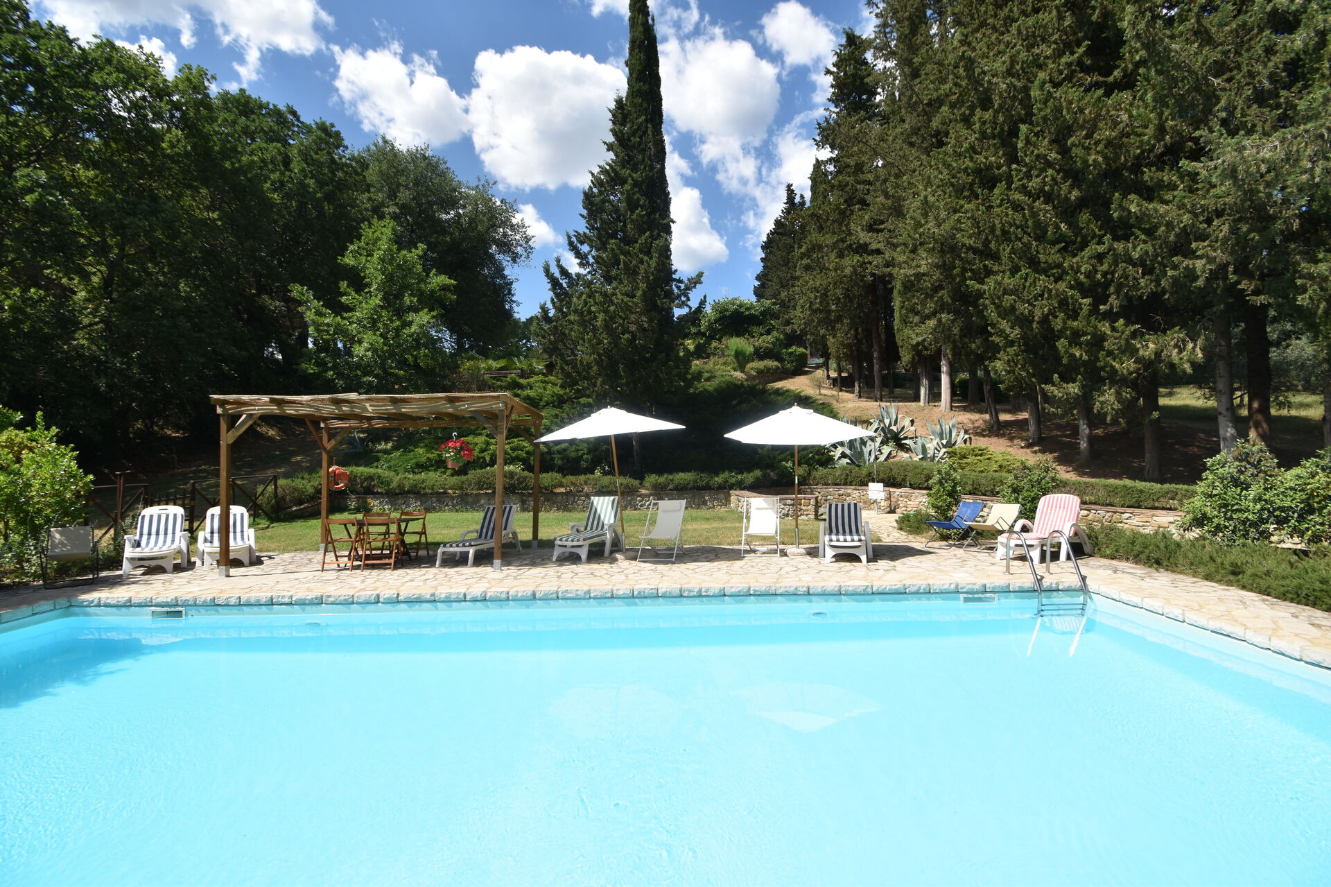 After arriving you will be welcomed by the owner or manager where you’ll find a nice clean well-maintained property perfect for a peaceful vacation in Tuscany. After a busy day of sightseeing, spend some time with friends and family poolside enjoying a glass of wine - a perfect way to relax at the end the day. Also available outside are a patio and barbecue grill. Dining with friends and family is a big part of the Tuscan culture. Take advantage of the kitchen to prepare meals using local produce while on your holiday. The kitchen includes coffee machine, toaster and refrigerator, as well as, plenty of tableware and cutlery for up to 12 people.