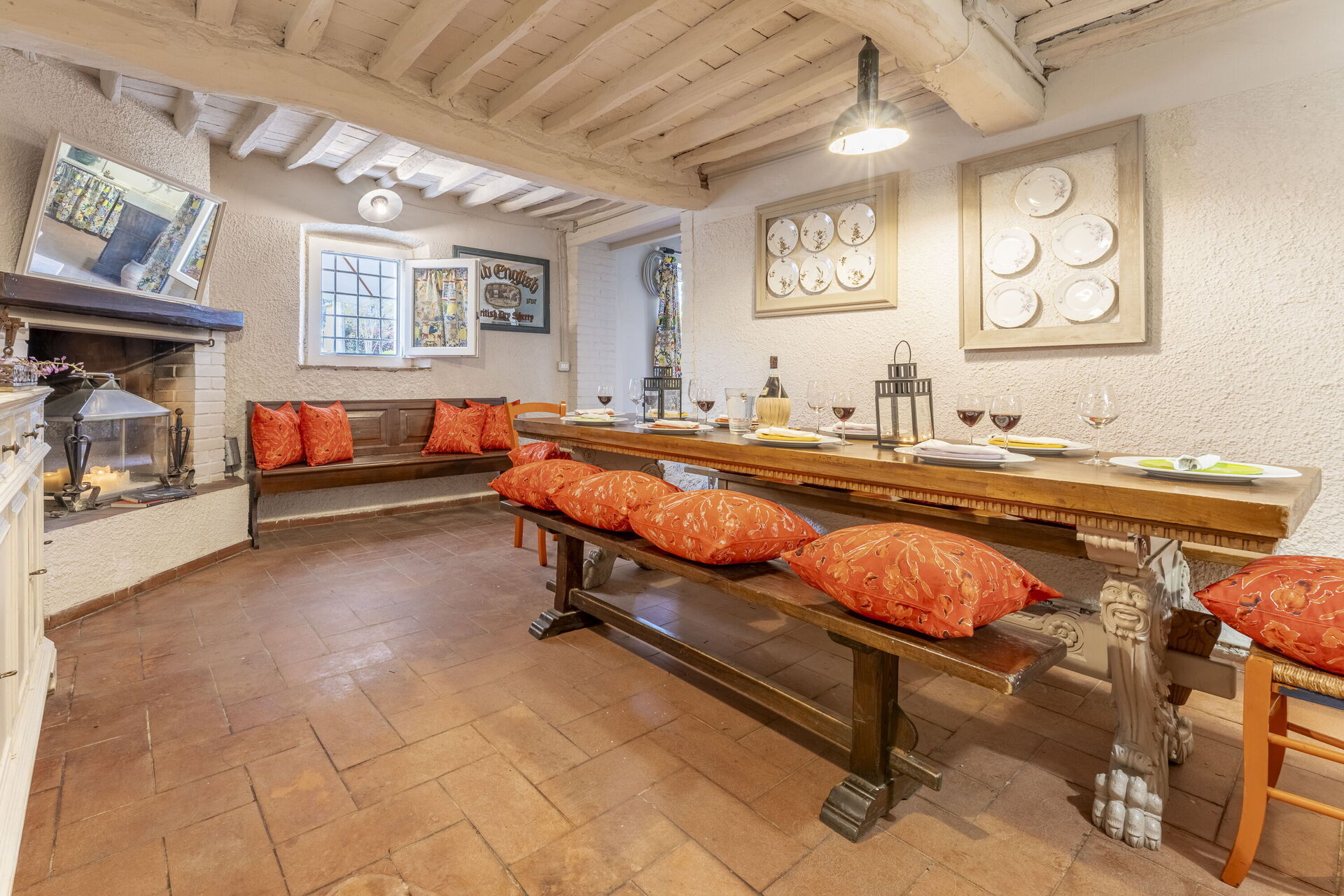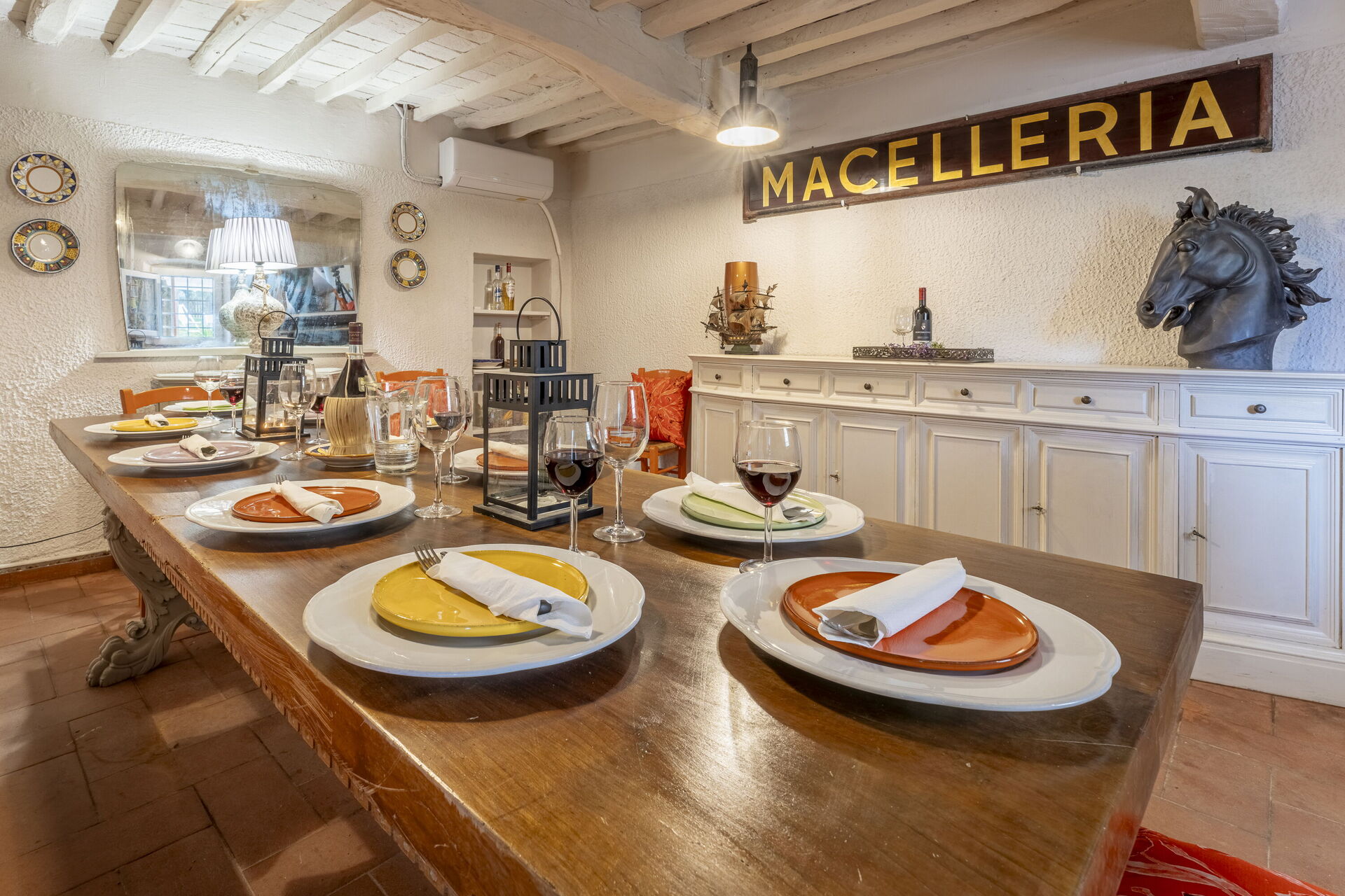 Dining room: dining table, air conditioning, WIFI internet, fireplace, exit to the garden.