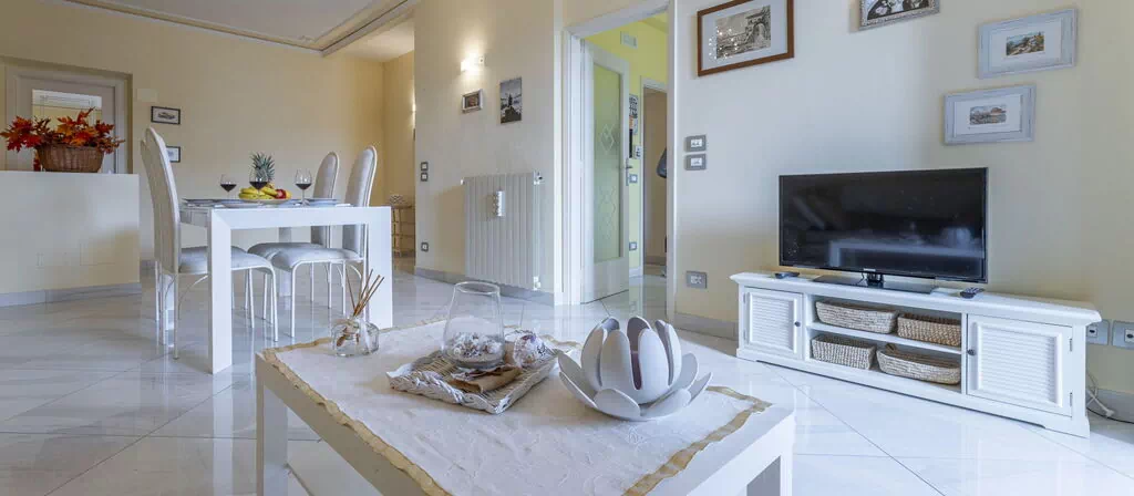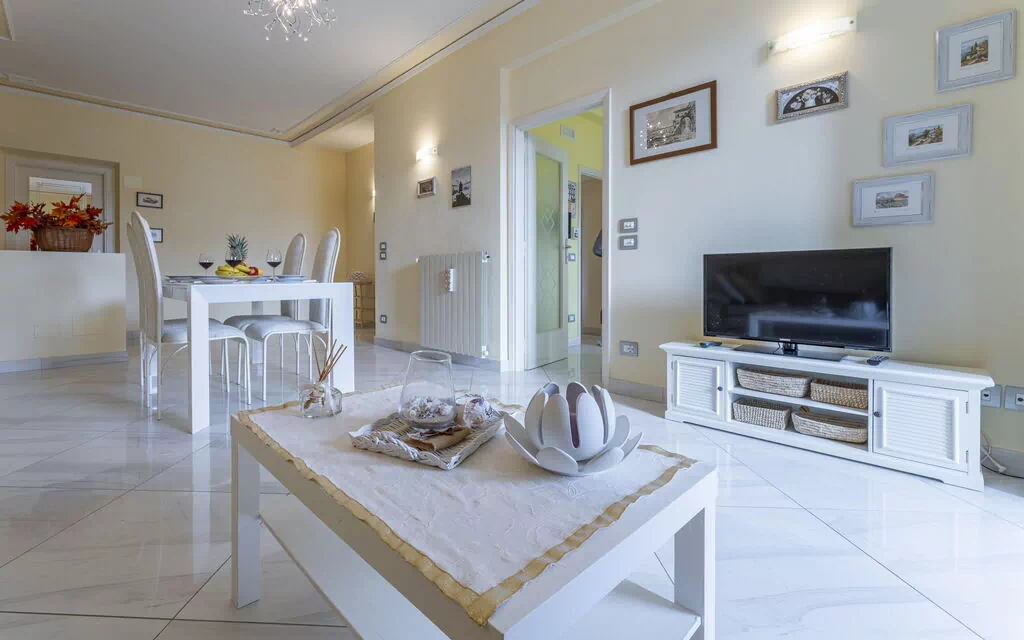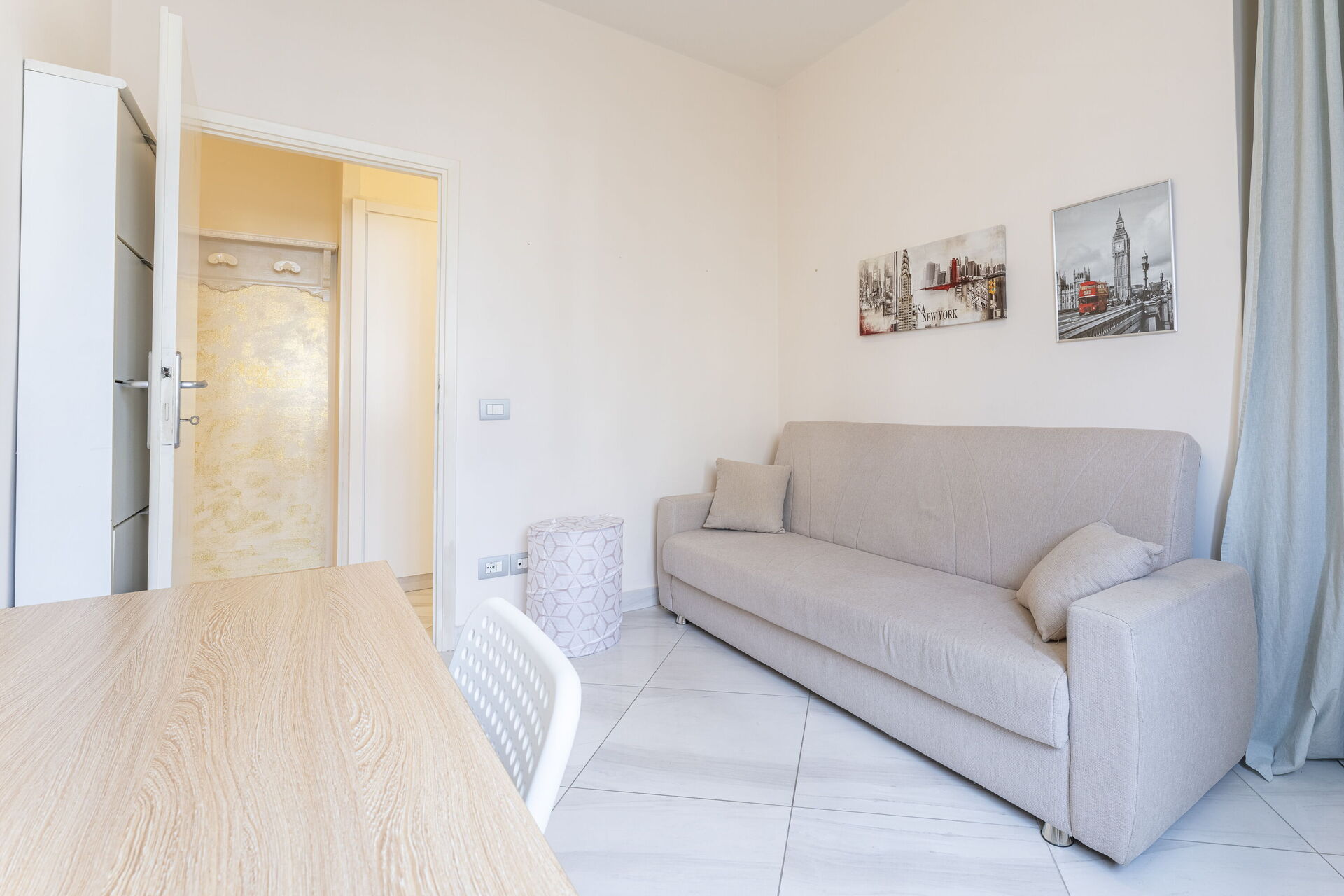 Kitchen + living room: well equipped kitchen, dining table, fridge, freezer, microwave, oven, italian coffee machine, sofa, WIFI internet, air conditioning, television, exit to the balcony.
