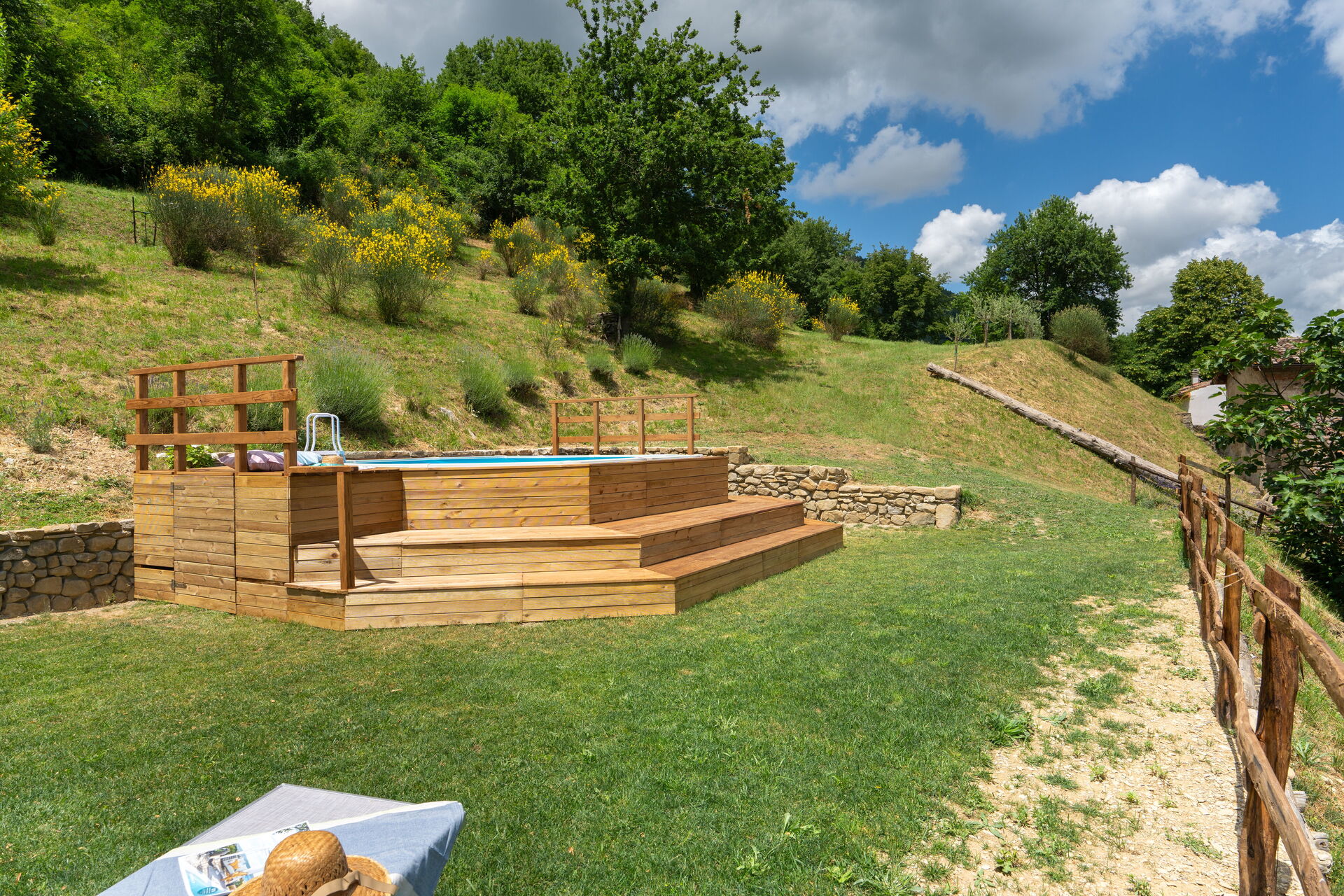Garden: swimming pool (private, length: 5m, width: 3.6m, depth: 1.2m, outdoor), WIFI internet, barbecue, al fresco dining, dining table (people: 6), garden furniture, terrace furniture, two sunbeds.