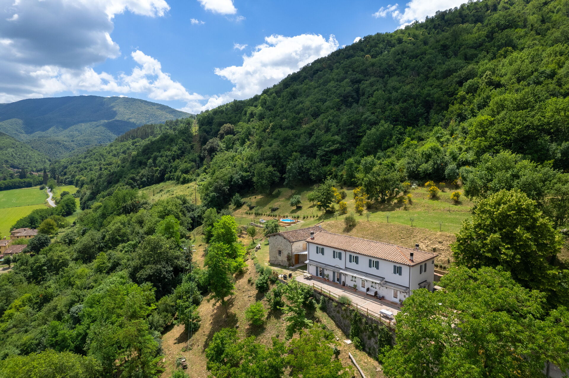The property, which is accessed via approximately 200m of unmade 'white' road, is immersed in the quiet Tuscan countryside, surrounded by oak and chestnut forests. Part of the building is occupied by the property owners, who have their own private entrance.