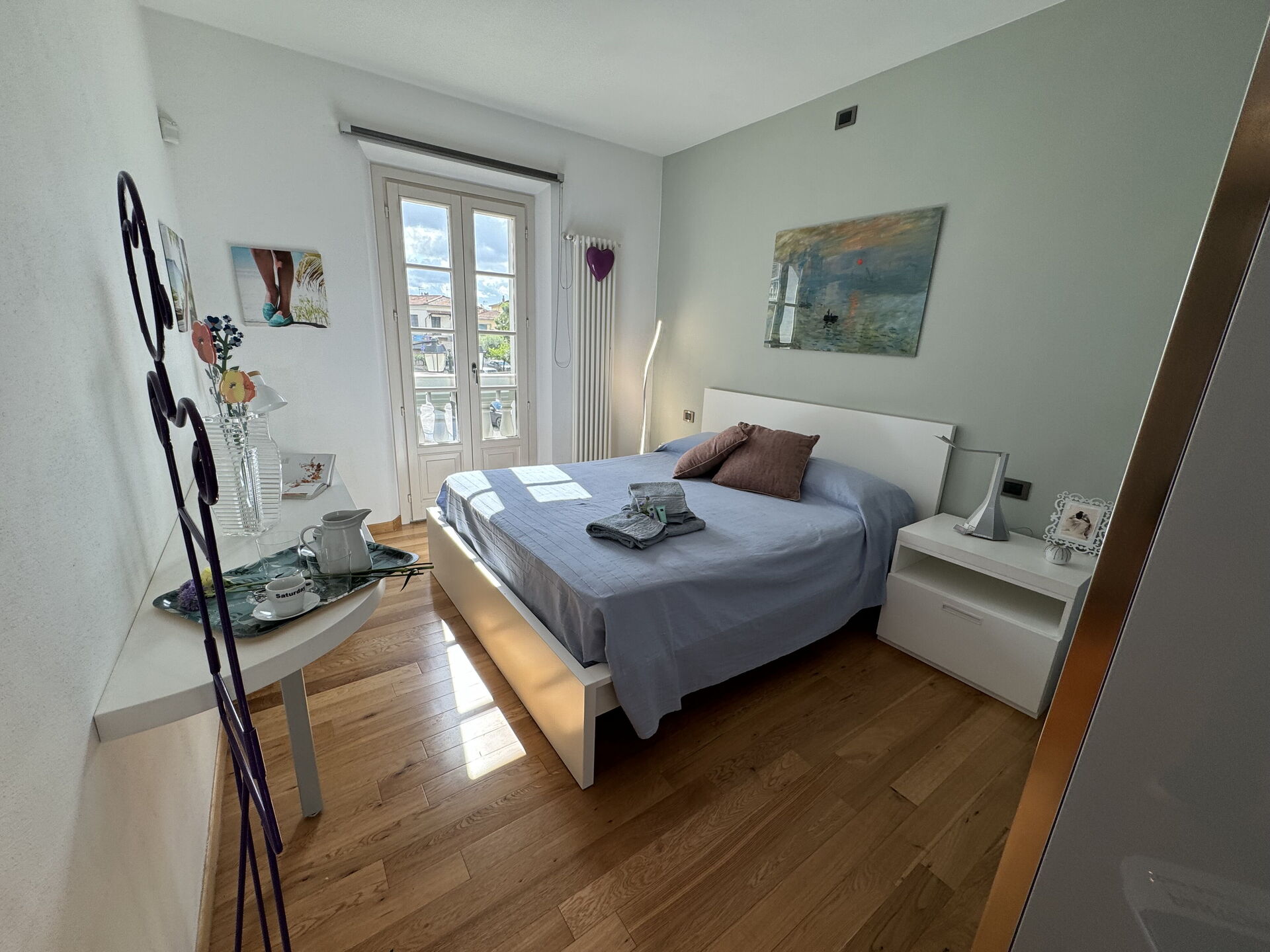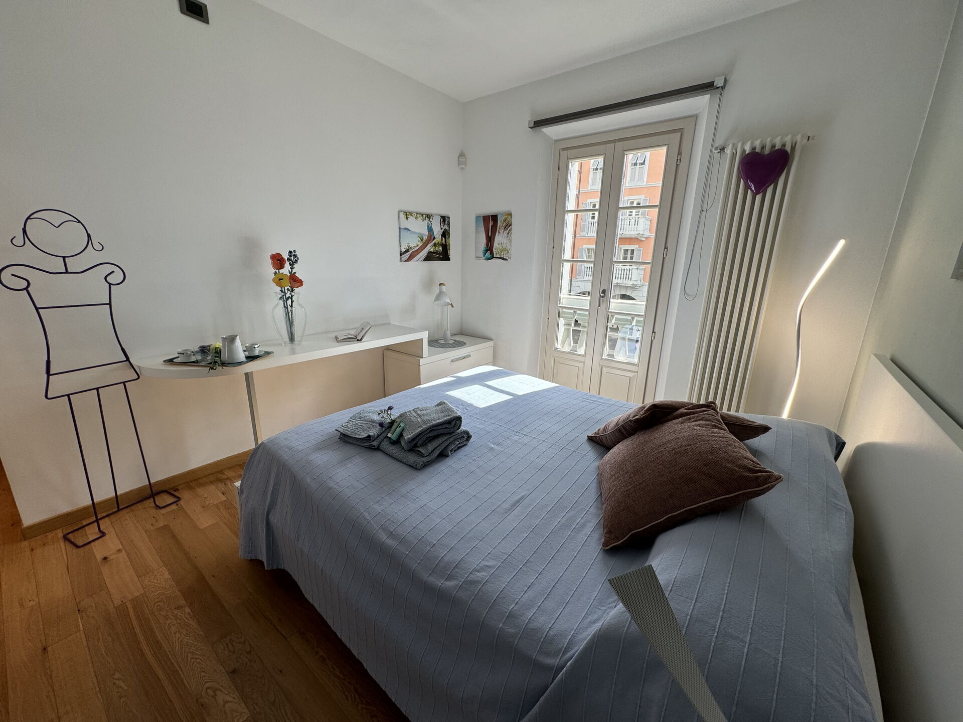 Bedroom 2: french bed (length: 1.85m, width: 1.55m), WIFI internet, portable fan, exit to the balcony.