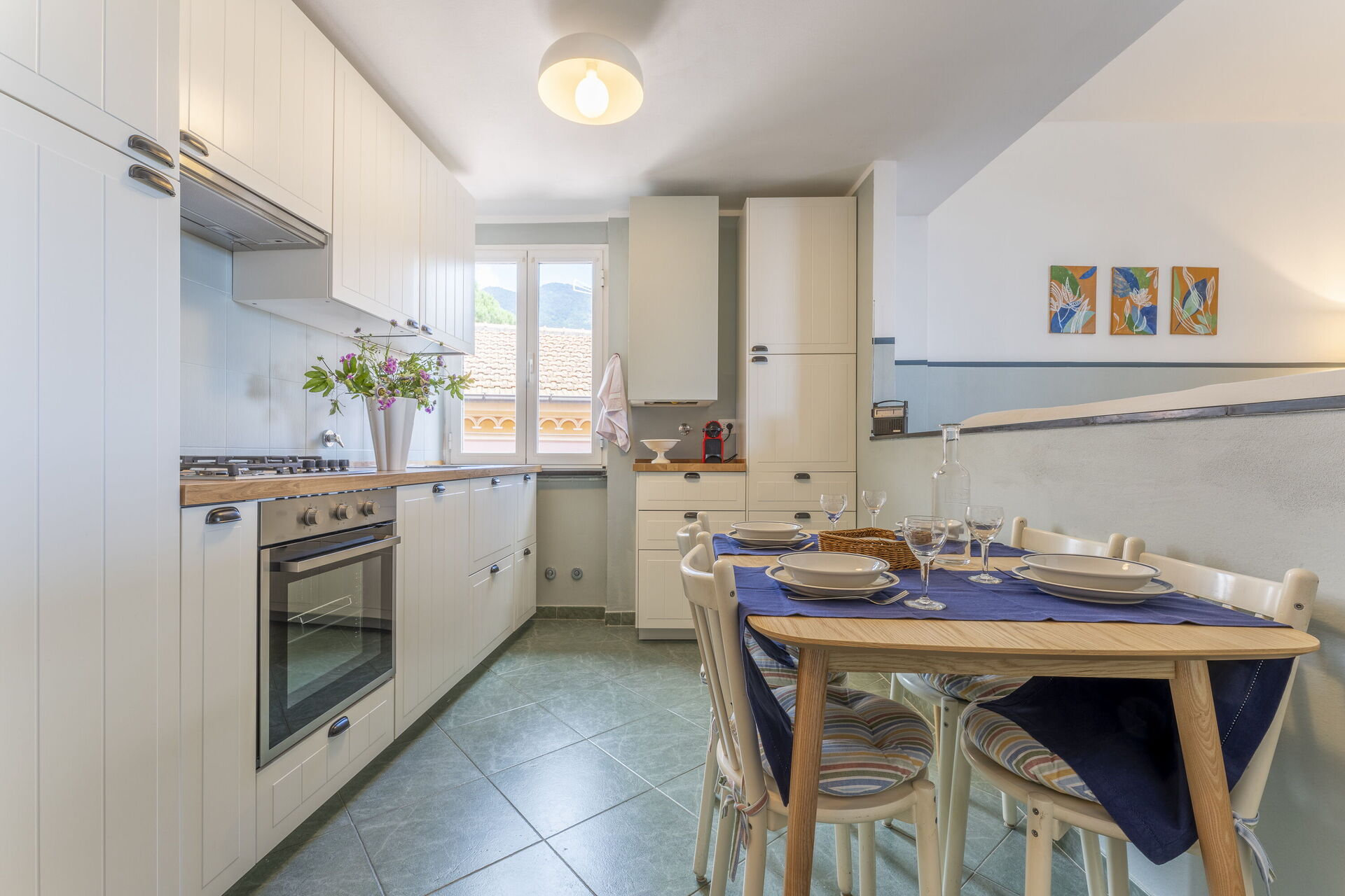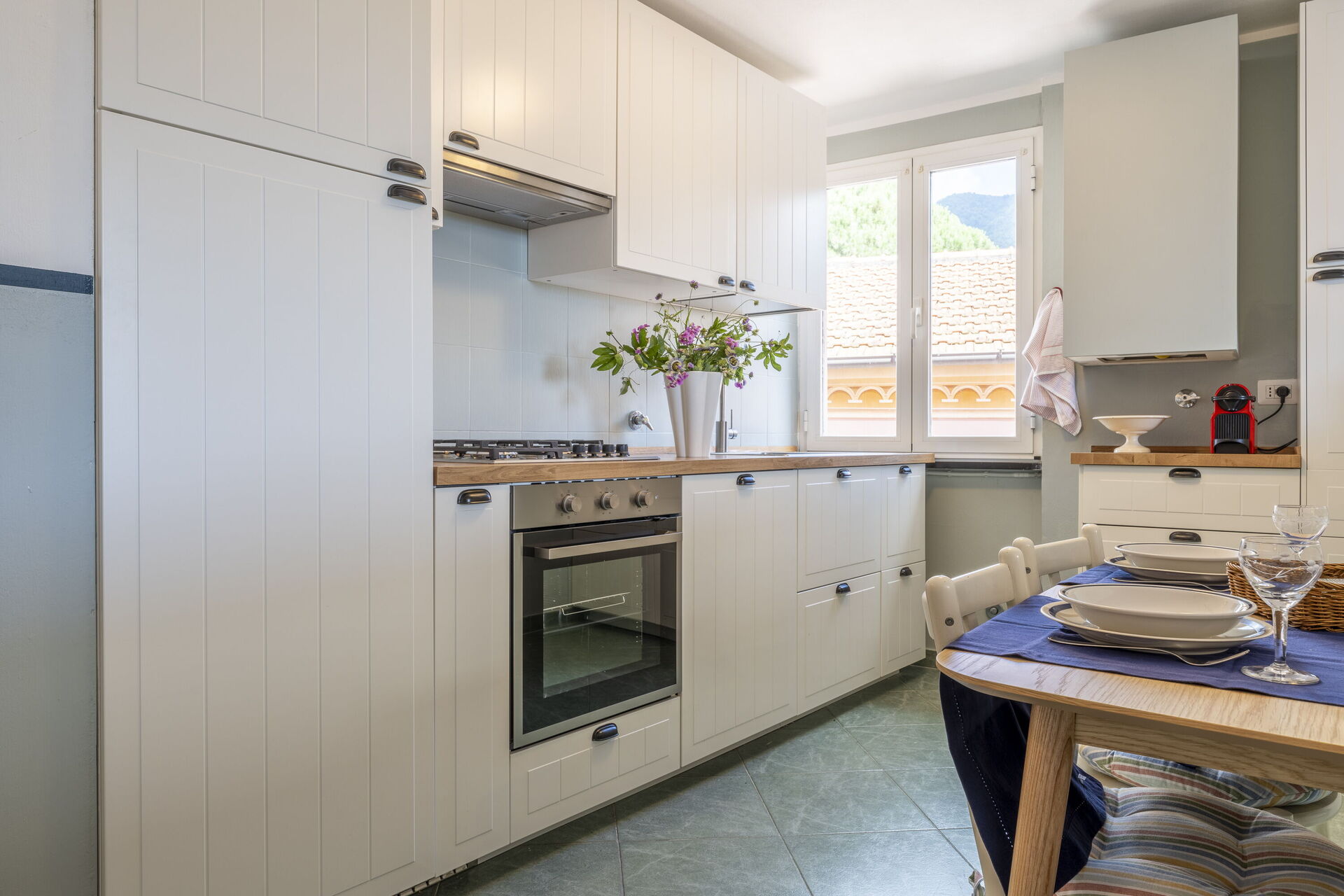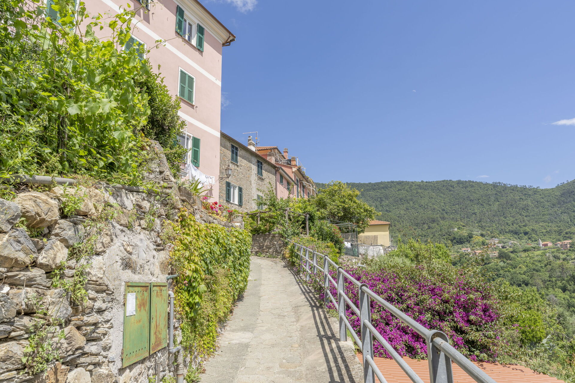 When you arrive you will be welcomed by the owner or manager where you’ll find a lovely clean well-maintained property with views of the hills and the sea perfect for a relaxing vacation in Liguria. Regardless of how you spend your days - sightseeing, visiting museums, shopping or just driving in the countryside, when you arrive home you can relax with your family and friends for a perfect ending to another day in Liguria. If you enjoy cooking for family and friends there is a well-equipped kitchen including coffee machine, toaster, stove and refrigerator, as well as, plenty of tableware and cutlery for up to five people.