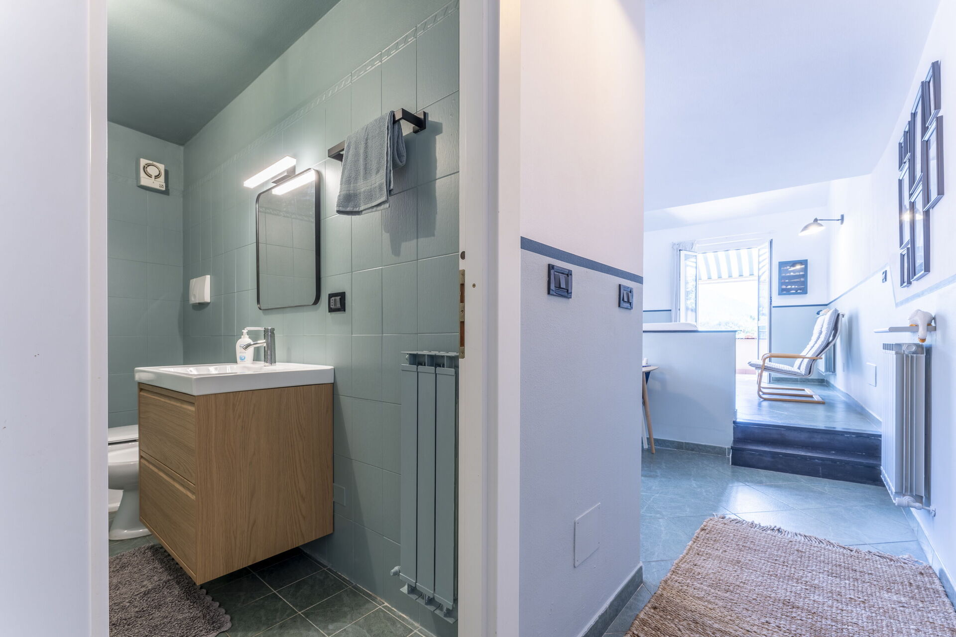 Living room: sofa, WIFI internet, television, exit to the terrace.