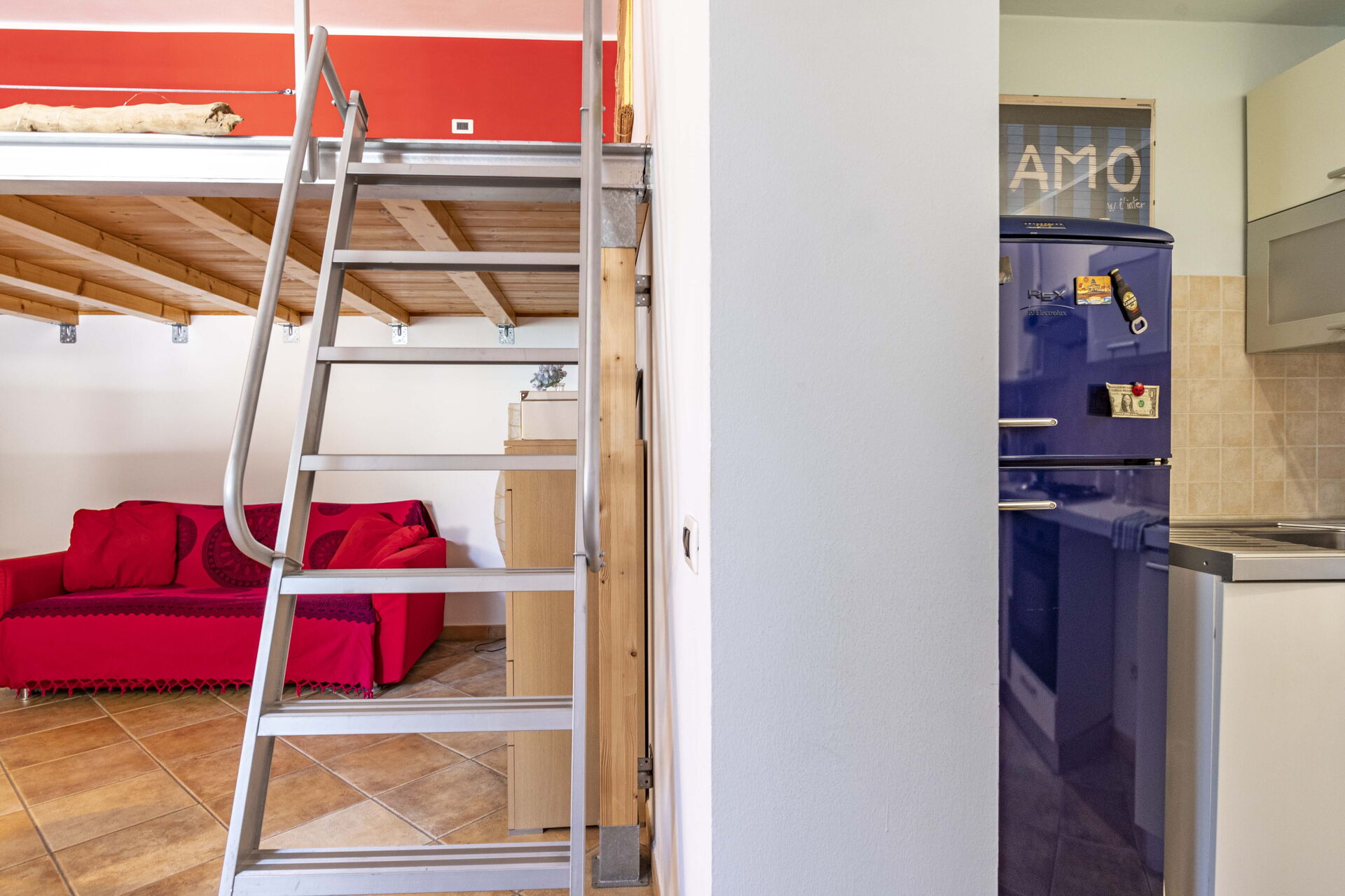 Kitchen + living room: well equipped kitchen, dining table, fridge, freezer, stove top, oven, toaster, italian coffee machine, sofa bed double, WIFI internet, satellite tv, loft.