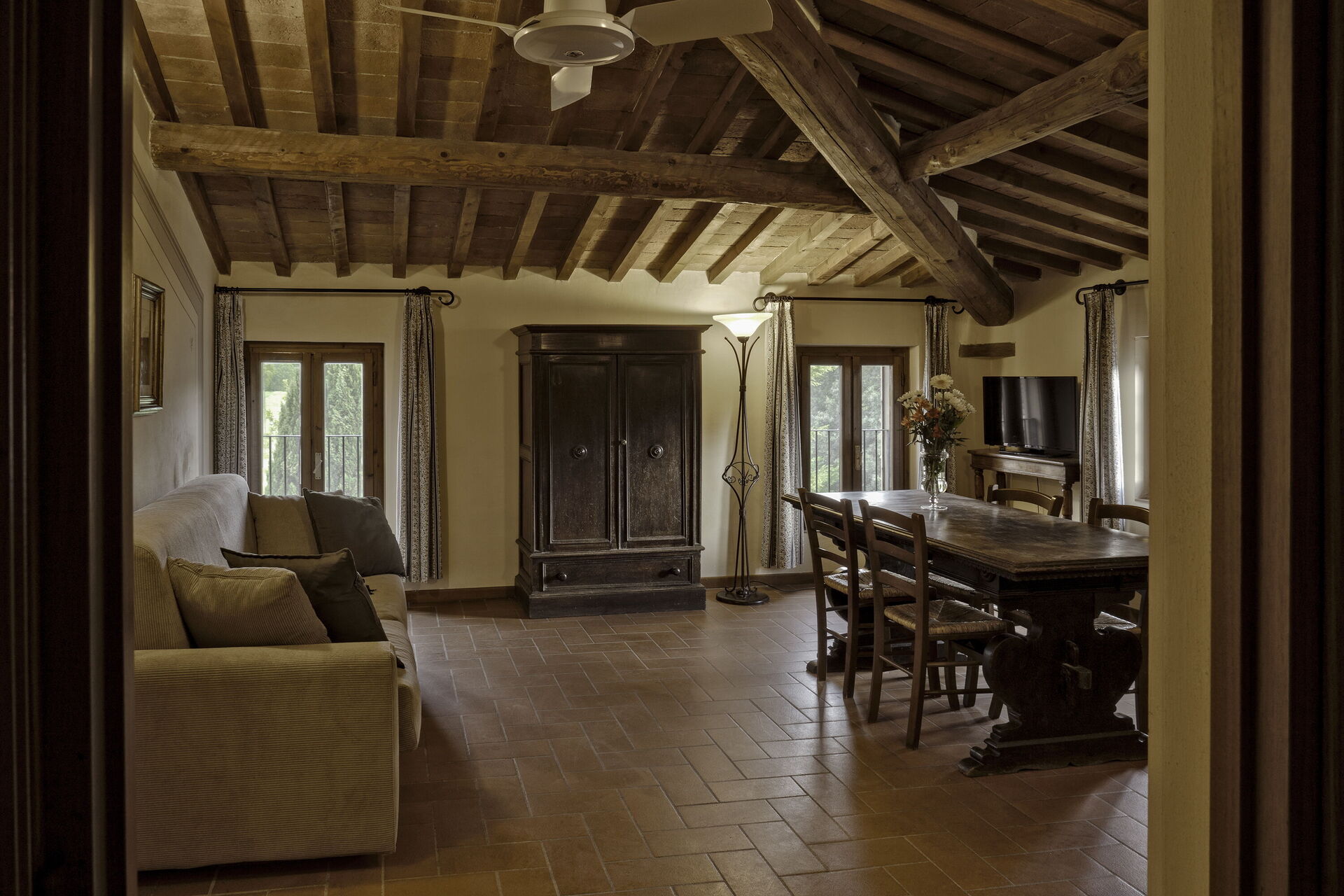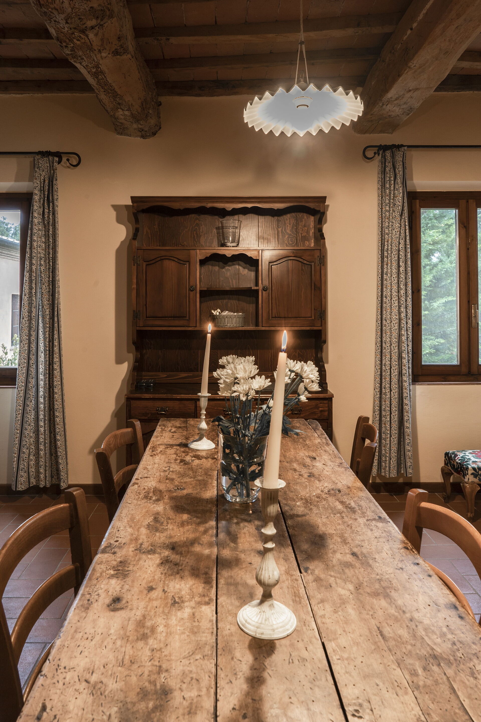 After arriving you will be greeted by the owner or manager where you’ll find a nice clean well-maintained property with views of the hills perfect for a splendid vacation in Tuscany. After a busy day of shopping, spend some time with friends and family poolside enjoying a glass of wine - a perfect way to unwind at the end the day. Dining with friends and family is a huge part of the Tuscan culture. Take advantage of the well-equipped kitchen to prepare meals using local produce while on your vacation. The kitchen includes microwave and refrigerator, as well as, plenty of tableware and cutlery for up to 35 people. Dine 'al fresco' like a real Tuscan, the fully furnished veranda is the ideal setting to enjoy food, family and the beautiful Tuscan weather.