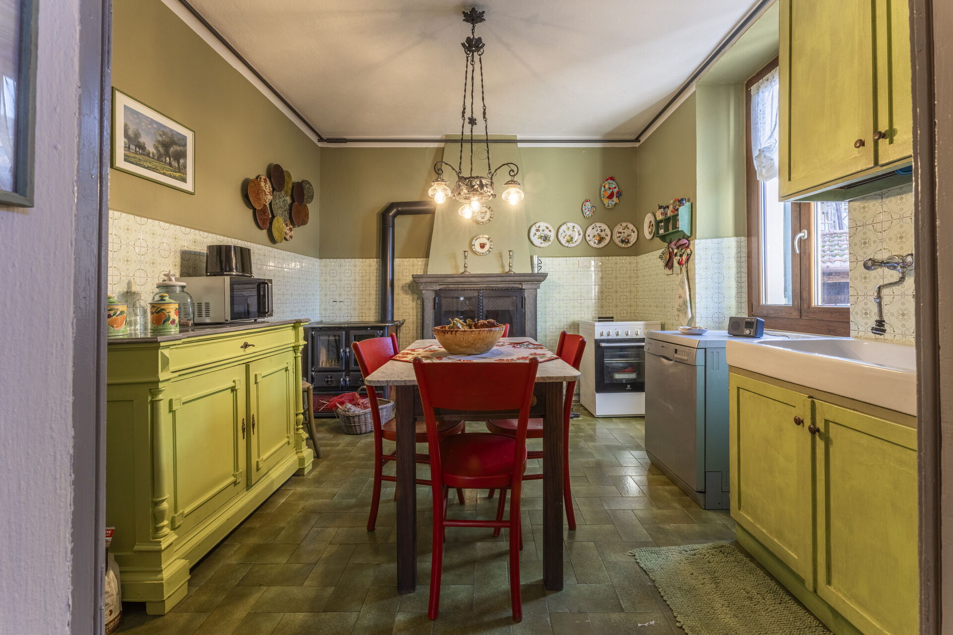 Kitchen: dining table, dishwasher, fridge, freezer, microwave, stove top, wood burning stove, oven, toaster, italian coffee machine, fireplace, WIFI internet.