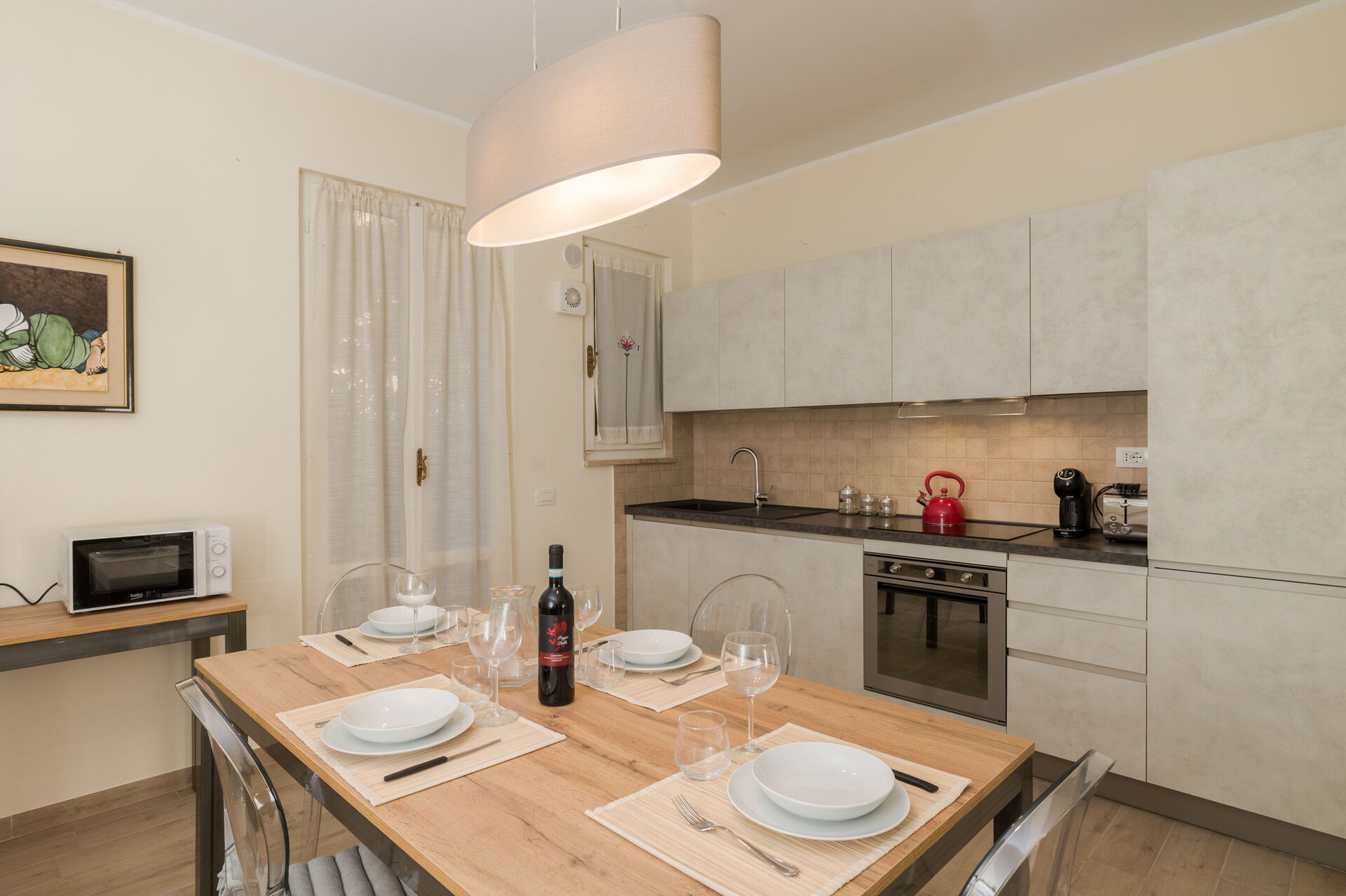 Kitchen: well equipped kitchen, dining table (people: 6), dishwasher, fridge, freezer, microwave, stove top, oven, toaster, iron, italian coffee machine, american coffee machine, WIFI internet, air conditioning, exit to the garden.