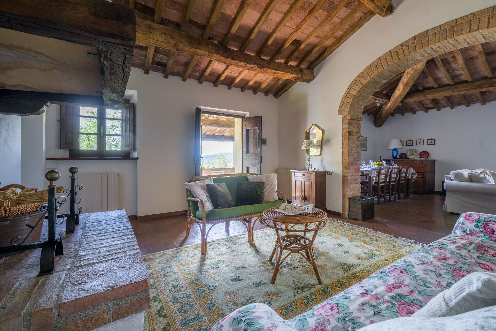 Living room: fireplace, dining table, sofa bed double, WIFI internet, television, exit to the balcony.