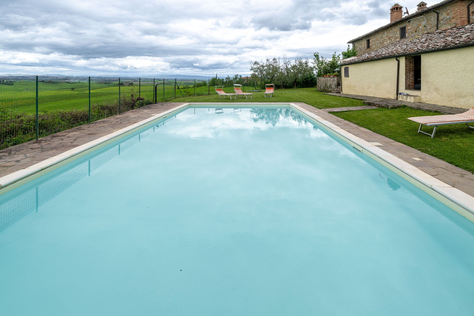 La Palazzina, Ville Di Corsano, Home And Pool is located 12 km (7 mi) from Monteroni D'arbia, Italy and only 18 km (11 mi) from Siena in the tourist area "Siena And Surroundings". La Palazzina, Ville Di Corsano, Home And Pool is a beautiful stone building (145 sq m) with WiFi internet and private pool. The property can accommodate up to six people comfortably in two bedrooms with one bathroom.