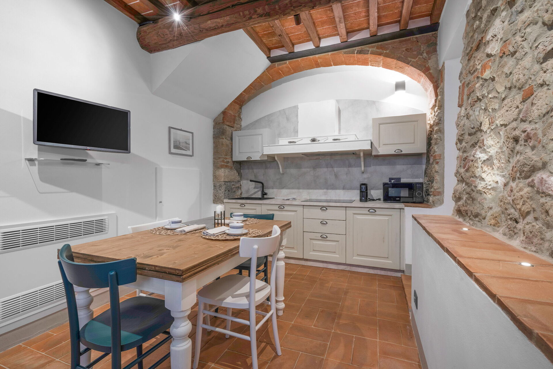 After arriving at Le Torri, Borgo Campassini, Monteriggioni you’ll find a beautiful clean well-maintained property with views of the hills perfect for a peaceful holiday in Tuscany. Regardless of how you spend your days - shopping, visiting museums, sightseeing or just driving in the countryside, when you arrive home you can relax with your family and friends at the pool for a perfect ending to another day in Tuscany. Sharing a meal with friends and family is a big part of the Tuscan culture. Take advantage of the well-equipped kitchen to prepare meals using local produce while on your vacation. The kitchen includes coffee machine, microwave, stove and refrigerator, as well as, plenty of tableware and cutlery for up to four people.