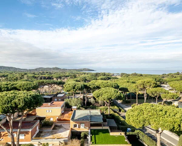 Villa Poggio Del Vento is a charming semi-detached house nestled in a quiet, sunny residential area just 2.7 km from the center of Punta Ala and 950 m from the beach. This cozy vacation rental boasts a private garden with a lush lawn and trees, a terrace spanning 20 m2 with outdoor furniture, and ample parking space. Guests can enjoy the convenience of nearby amenities, including a shop, grocery store, supermarket, restaurant, and bar within a 350 m radius, as well as a bus stop just 50 m away.