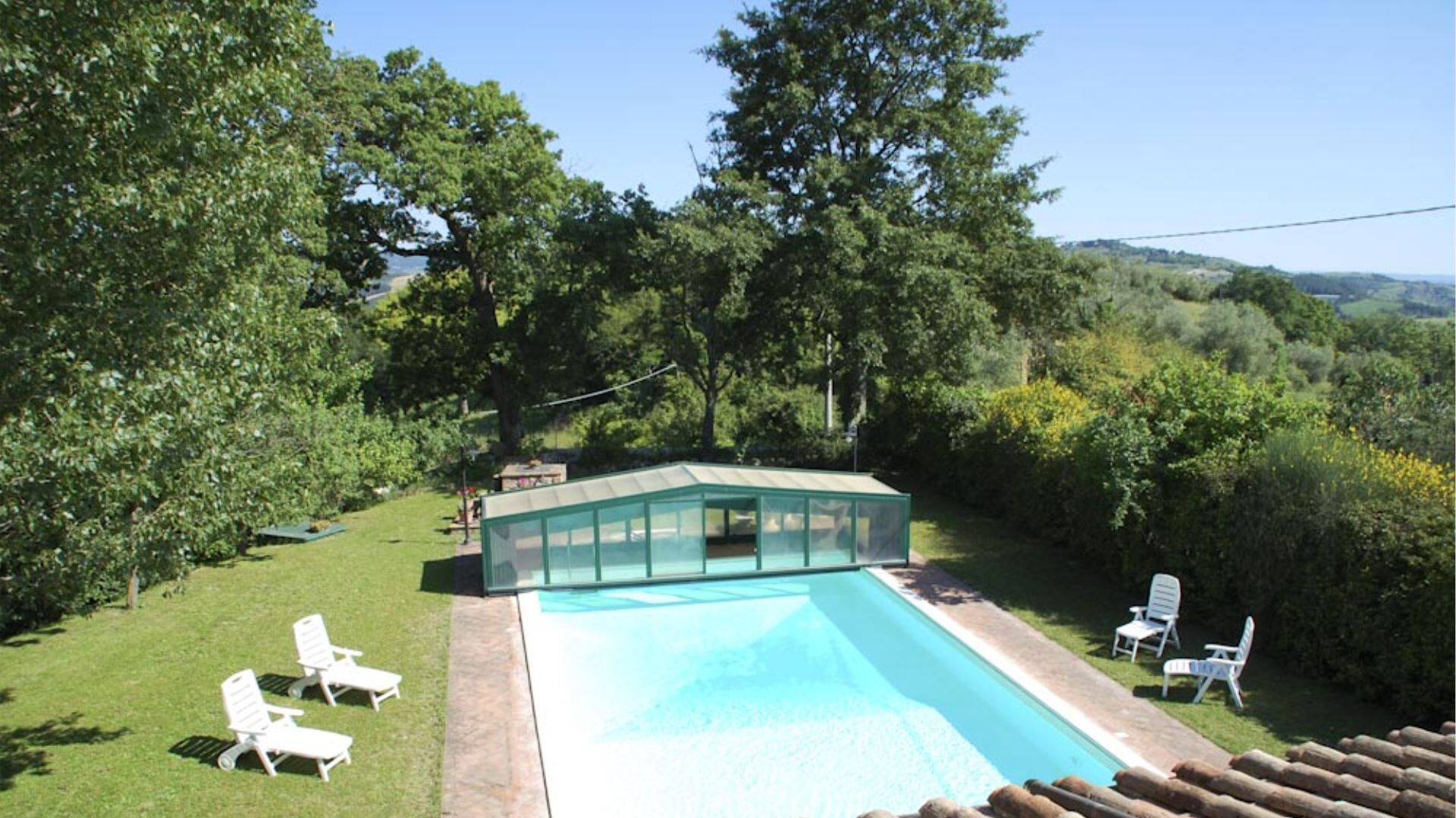 This elegant holiday villa in San Casciano Dei Bagni, Italy, offers a refined retreat for up to 6 guests in a peaceful countryside setting. The independent residence features thoughtfully designed living spaces distributed across multiple levels, complemented by modern conveniences including Internet Wifi and dedicated Parking facilities. You will find a harmonious blend of traditional charm and contemporary comfort, with ample indoor and outdoor spaces perfect for a relaxing Italian holiday. The property provides secure covered parking within an enclosed garden accessed through an automatic gate, ensuring both convenience and privacy throughout your stay.