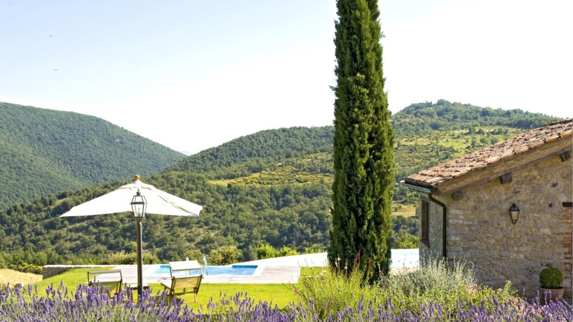 Villa Sibilla is a beautifully restored 16th century farmhouse nestled atop one of the Murlo hills in Perugia, Italy. This distinguished vacation rental commands spectacular views of the medieval castle of Antognolla and its 18-hole golf course, with vistas particularly stunning when admired from the expansive infinity pool complete with jacuzzi. The property forms part of Tenuta Umbra, one of Italy's most exclusive private country estates, renowned for its thousands of acres of pristine woods and olive groves, superb valleys, lakes and rivers. Villa Sibilla offers remarkable levels of comfort and elegance, providing the ideal setting for a relaxing and peaceful holiday. The estate boasts a prime location in the center of Umbria, where the simple pleasures of country life embrace art, history and architecture alongside excellent food and wine. The property provides convenient parking and accommodates guests across the main villa and the separate Olivo apartment, with all modern amenities seamlessly integrated into its historic charm.