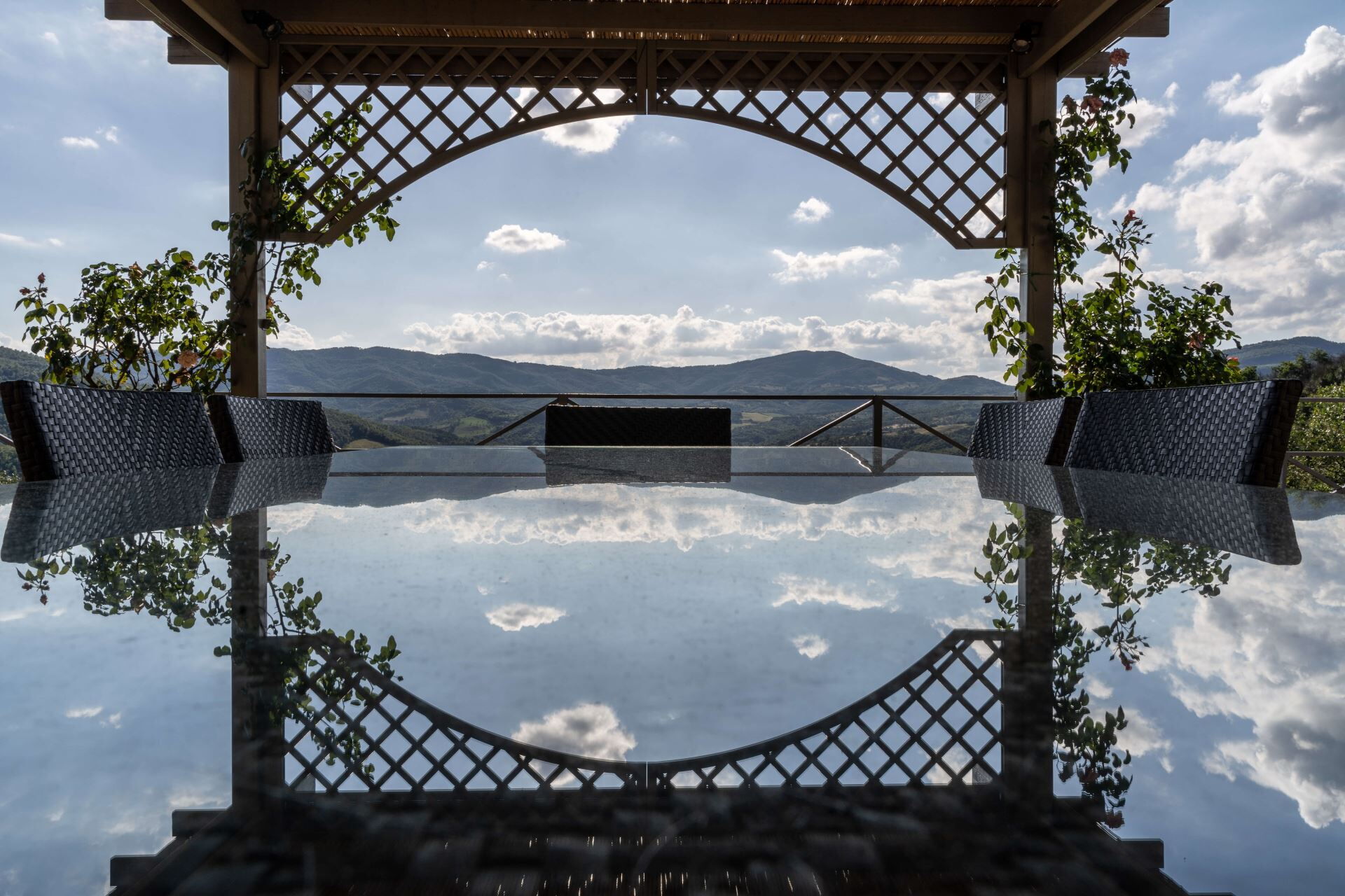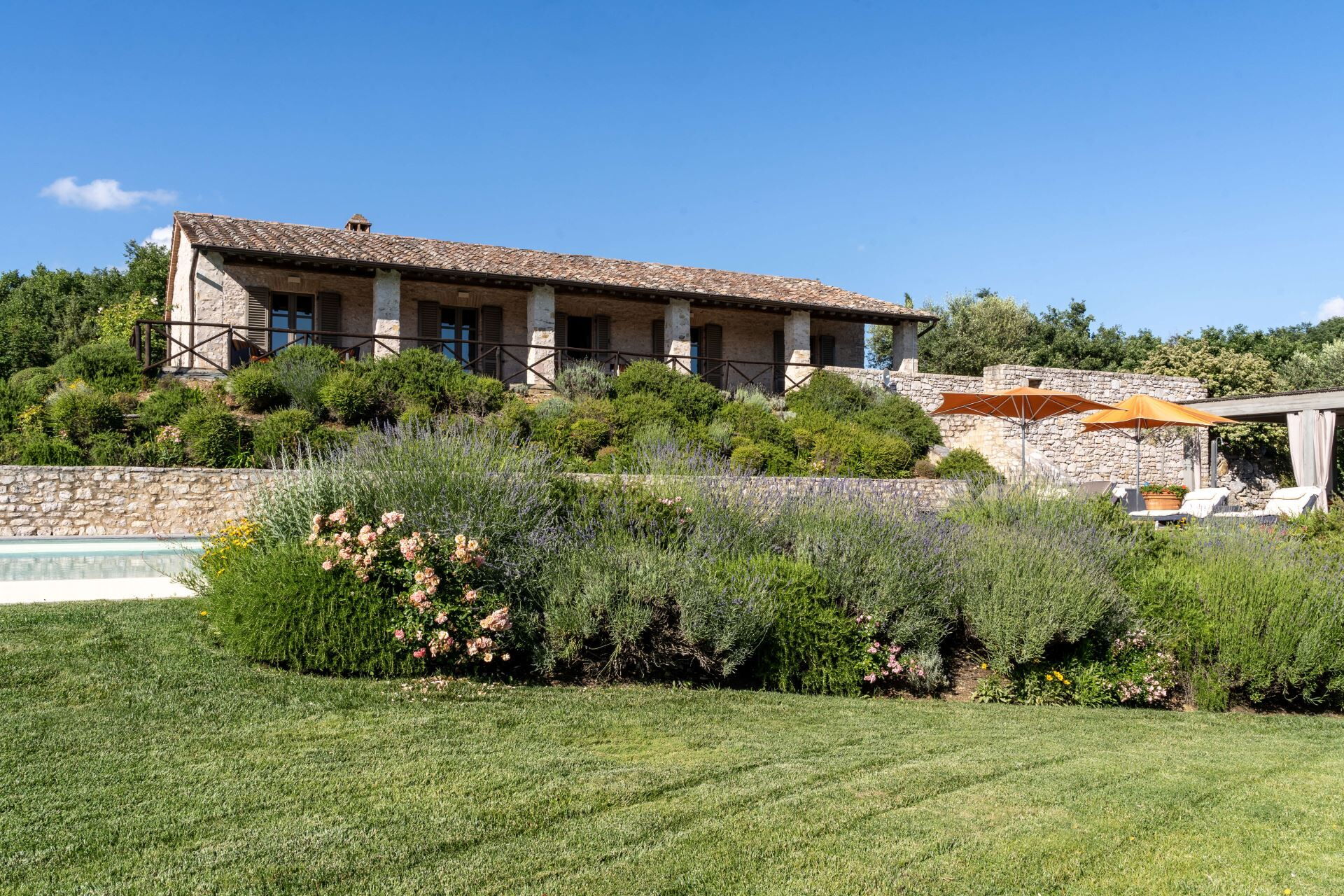 The outdoor spaces of Villa Collinette present a true oasis of tranquility and natural beauty. The magnificent infinity pool stretches across the landscape with views extending as far as the eye can see, creating an unparalleled swimming and lounging experience. The heated pool feature allows you to enjoy comfortable swimming even during cooler months, subject to seasonal availability. Expansive terraces and elegant pergolas furnished with comfortable sofas and a dining table accommodating 10 guests provide ideal spaces for leisurely breakfasts, long lunches, and sunset aperitivos immersed in the peaceful Umbrian atmosphere. Additional outdoor seating areas with tables and armchairs are positioned outside the main living spaces, perfectly situated to capture the stunning views overlooking the estate and offering an ideal spot for morning coffee. The property encompasses a vast private and fenced landscaped garden extending across 10,000 square meters, providing complete privacy and security. A barbecue facility enables you to prepare al fresco meals while enjoying the gentle breezes and panoramic surroundings. Table tennis equipment is available upon request for your entertainment and leisure.