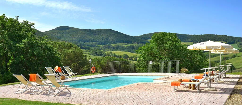 The outdoor spaces of this stunning property are designed to maximize your enjoyment of the beautiful Tuscan landscape. The villa is characterized by a generous porch that provides shaded relaxation areas, perfect for enjoying the Mediterranean climate while taking in views of the surrounding countryside. A dedicated solarium area offers the ideal spot for sunbathing and unwinding in complete privacy. The private heated swimming pool serves as the centerpiece of the outdoor amenities, allowing you to enjoy refreshing swims throughout your stay. Adjacent to the pool, you will find a barbecue area equipped for outdoor cooking and al fresco dining experiences. The terrace is easily accessible from various points inside the house, creating a seamless connection between indoor and outdoor living spaces. The property is surrounded by the natural beauty of a 650-hectare estate, offering you an authentic experience of the Tuscan countryside with its rolling hills and traditional agricultural landscape.