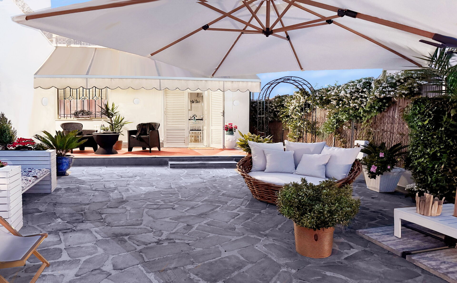 Garden: WIFI internet, barbecue, al fresco dining, garden furniture, sunbed, enclosed property.