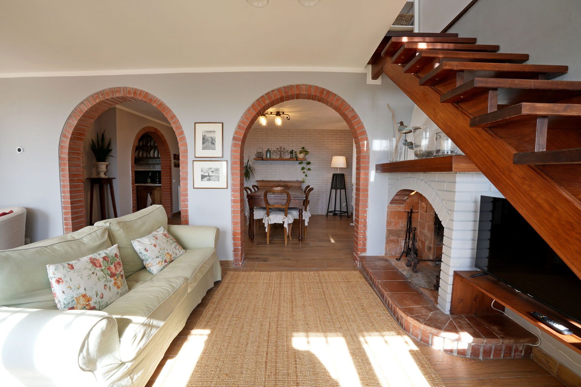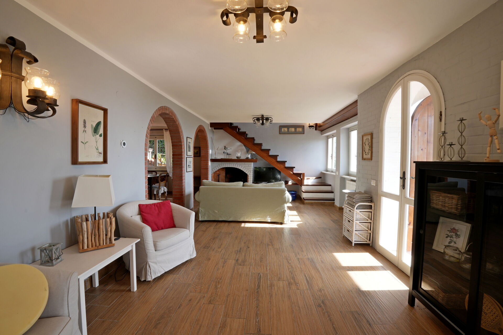 2 armchairs, exit to the garden, fireplace, sofa (people: 3), television, WIFI internet.