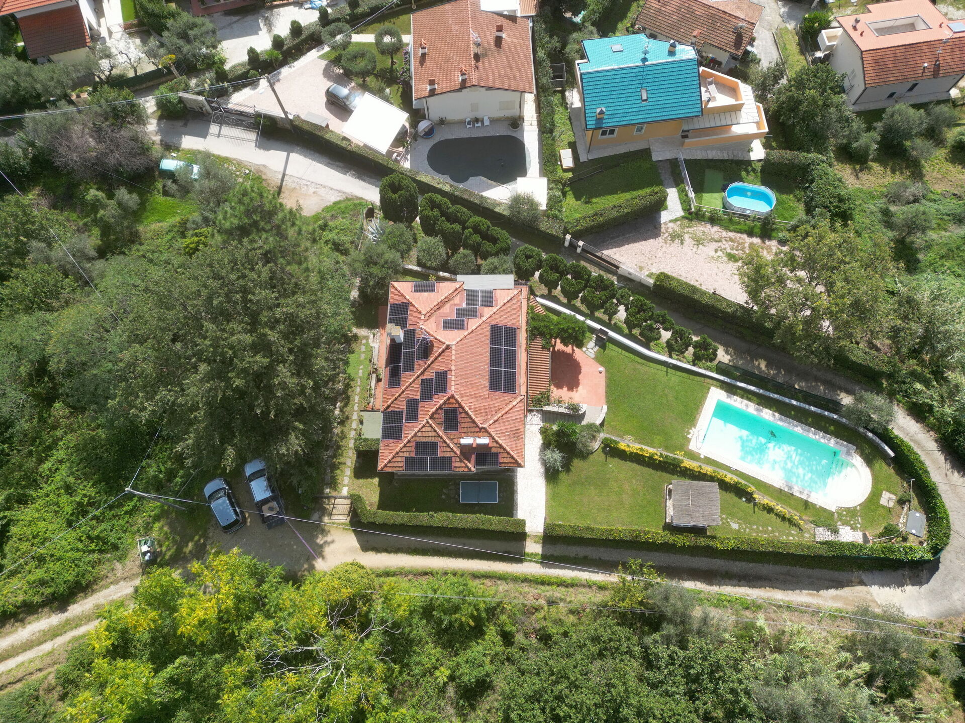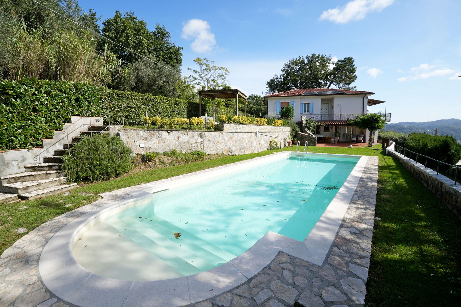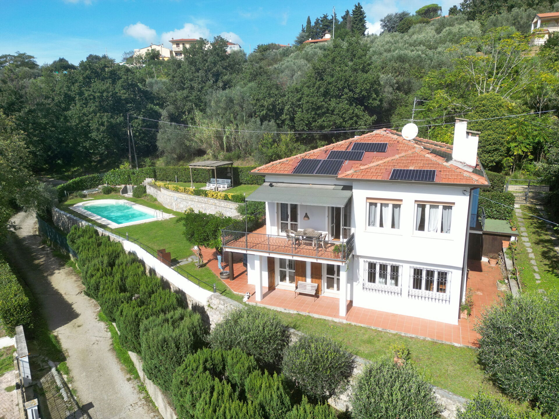 This holiday villa with private swimming pool in Versilia can be reached via a hill road, with curves, sometimes even narrow. The last 300 meters are narrow and steep and not suitable for drivers who are too fearful. The last 100 meters to the private parking (2 spaces) are unpaved.