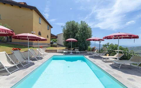 The "Antico Loggiato" is an agricultural estate situated at an elevated position on top of a hill in the countryside of Pontassieve, Italy. It offers a vacation rental opportunity with 4 apartments within the property. Guests can enjoy shared access to various amenities, including a fenced garden, a seasonal swimming pool (8 x 4 m, depth 150 cm, available from April 1 to October 31), table tennis facilities, garden furniture, a barbecue area, and a children's playground with a swing. The property also provides pool maintenance services by the owner/gardener.