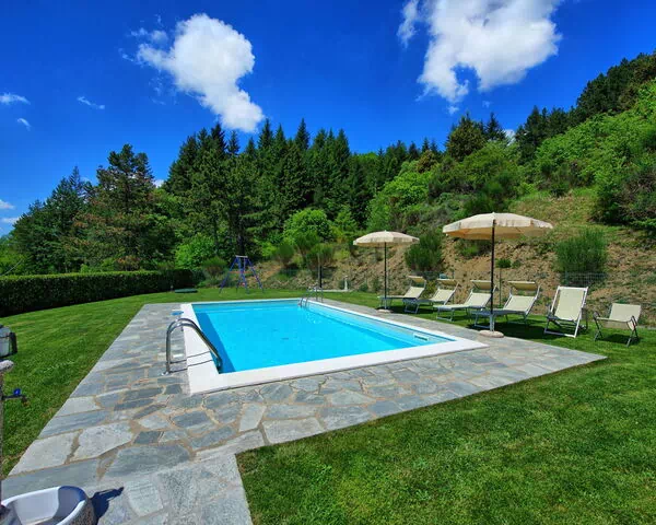 At guests’ disposal: private furnished outdoor area, private and fenced swimming-pool (8 x 4 m - maximum depth 1,40 m – open from 29/04 to 28/10), barbecue, playground for children. Parking within the grounds. The villa is provided with a laundry room and with air-conditioning.