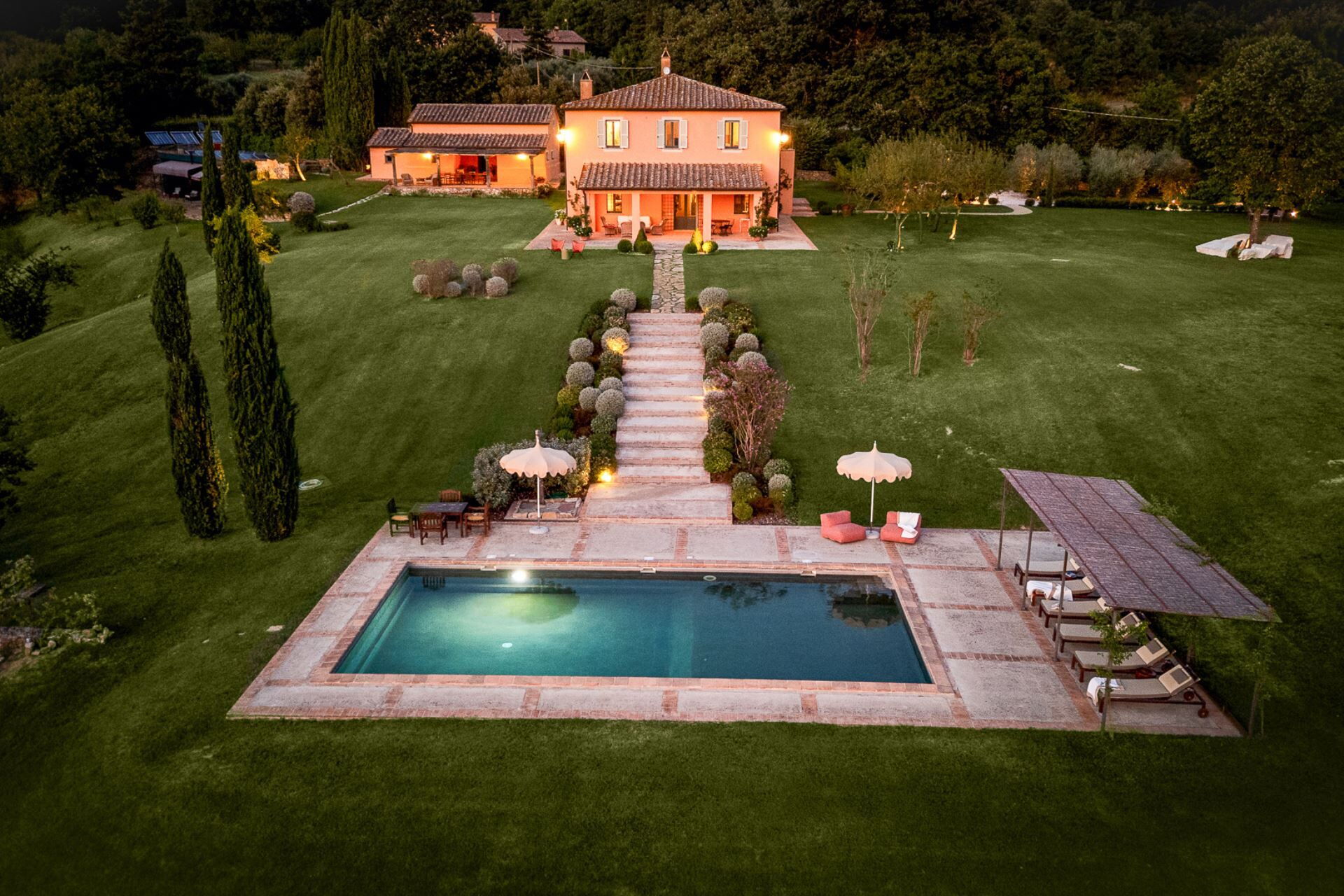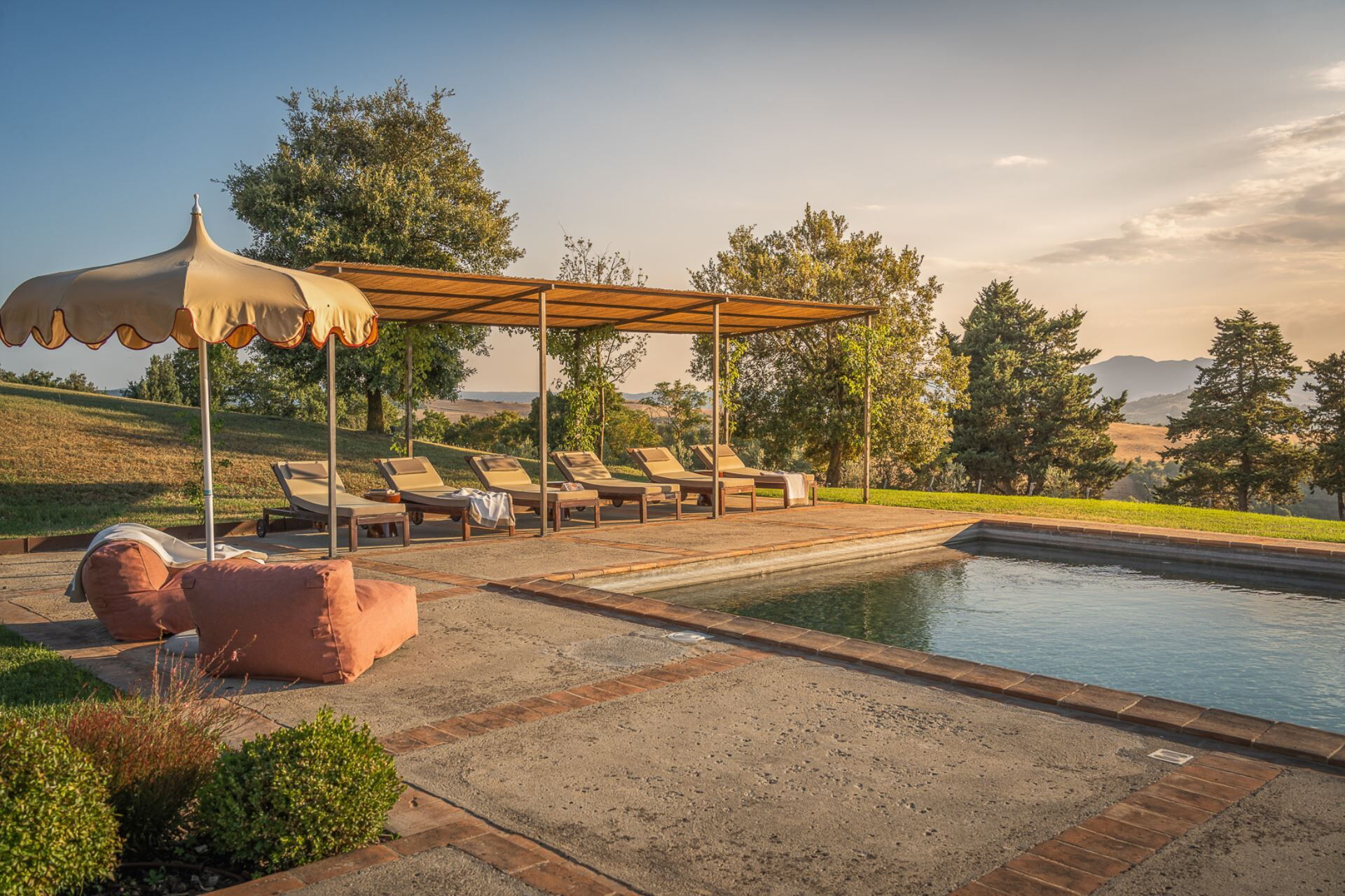 At sunset, pour a glass of local vino and relax in the pool or read your favorite book under the shaded pergola, to fully enjoy this dream place.