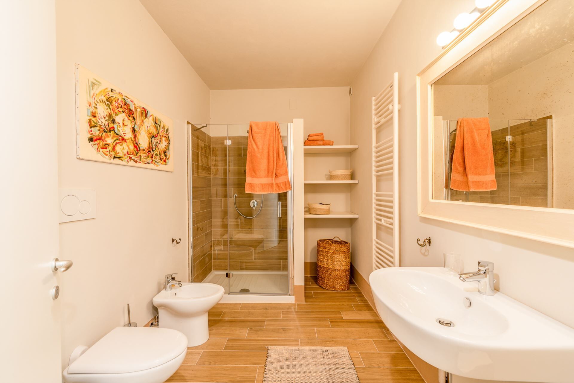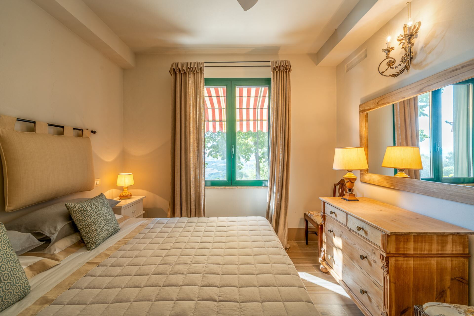 Casalberna will surprise you with its two further annexes, both of great charm and characterized by the same style and attention to detail of the main villa. This accommodation design is perfect for a large family or group of friends. The Guest House adjacent to the main property, houses 2 double bedrooms and a twin bedroom in an attic part, accessible by a spiral staircase, advisable only for two young teenagers. It has a charming shaded pergola with a large convivial table for al fresco dining and a stone barbecue. Exquisite views will delight you while you enjoy a dinner prepared by a local chef or cooking at the barbecue al fresco..