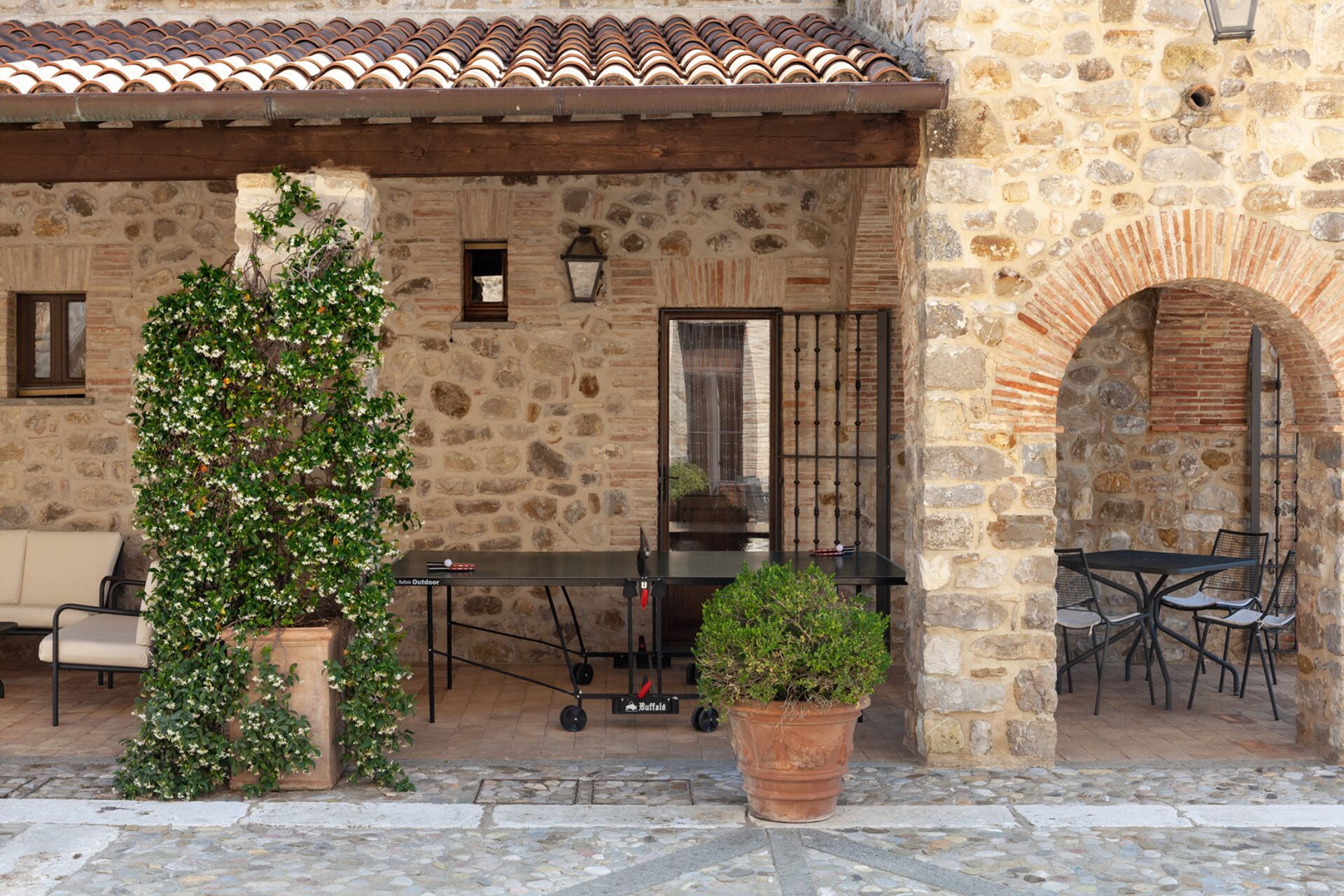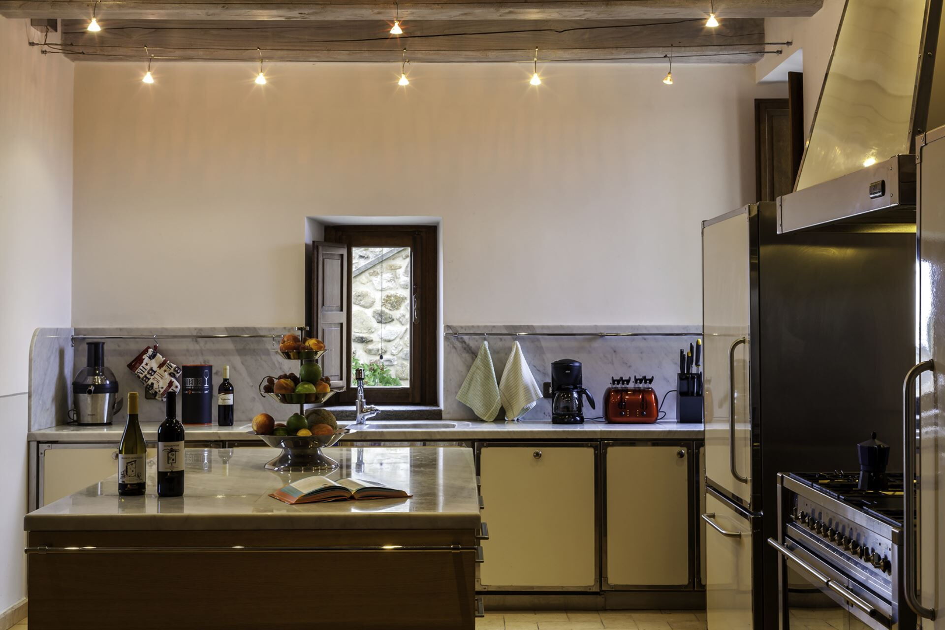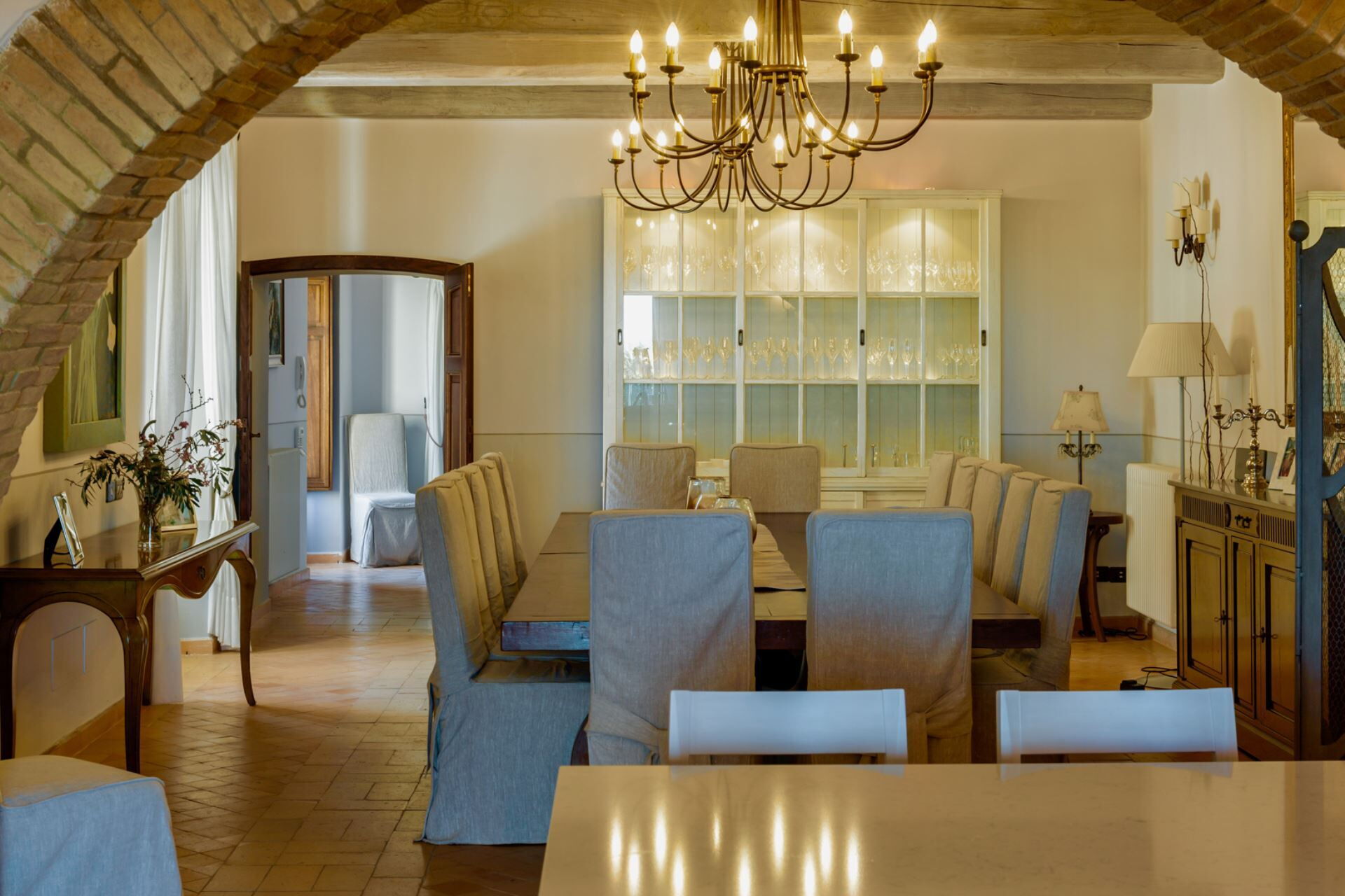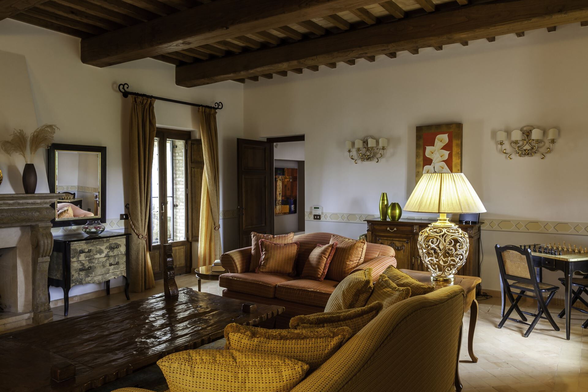 The 8 en suite bedrooms have been sensitively restored using local materials. Wooden and tiled floors, ancient beams and delicate paint and plaster work sit alongside beautifully integrated modern technology and contemporary luxury fittings.