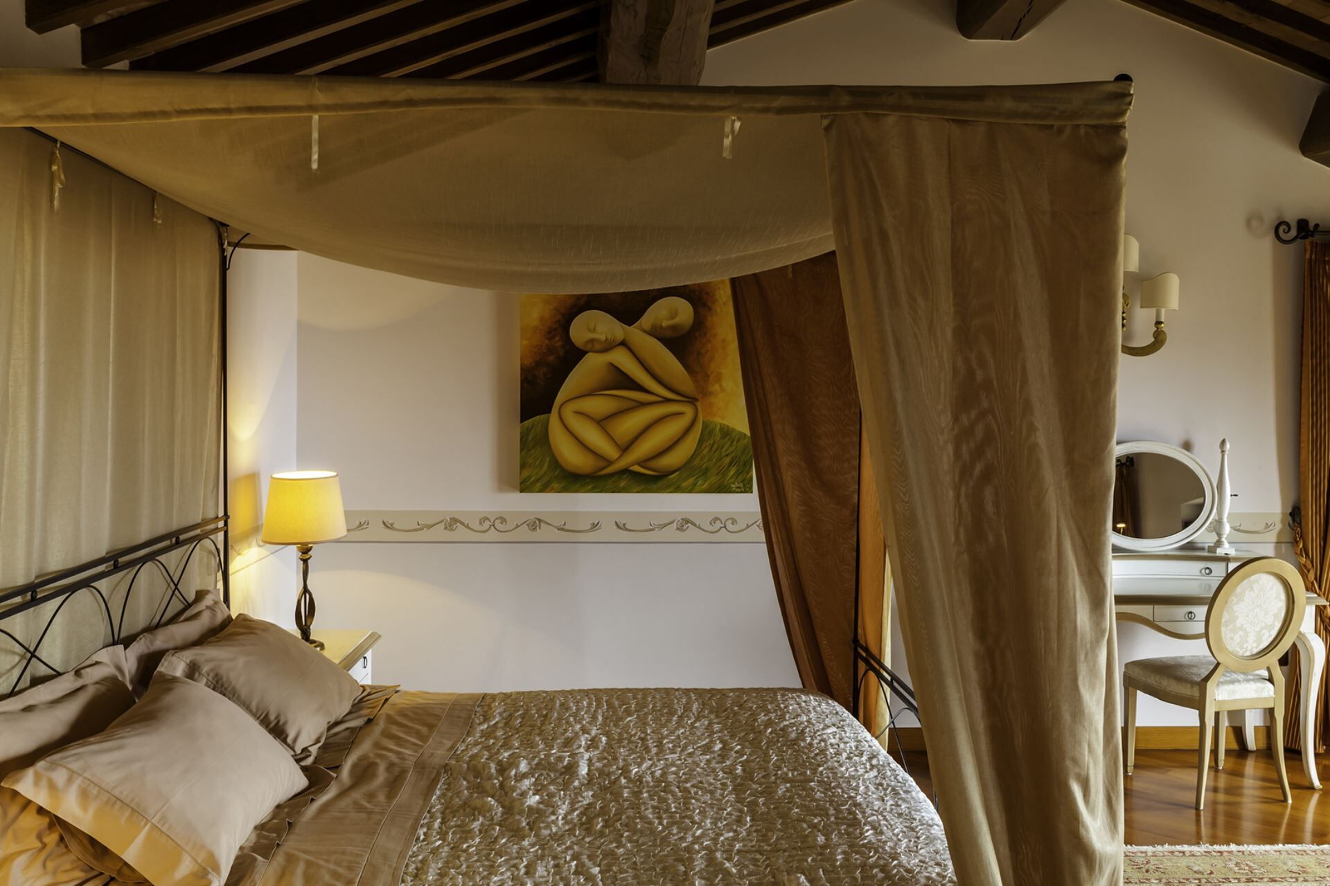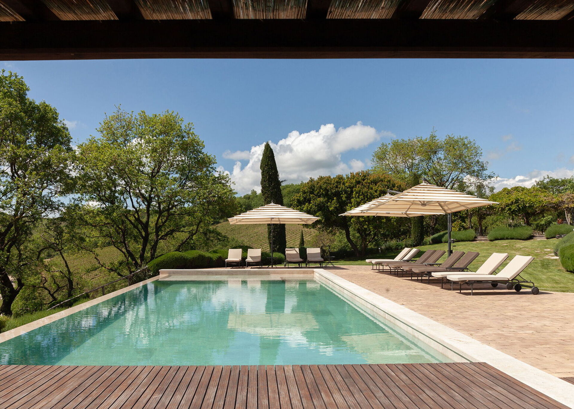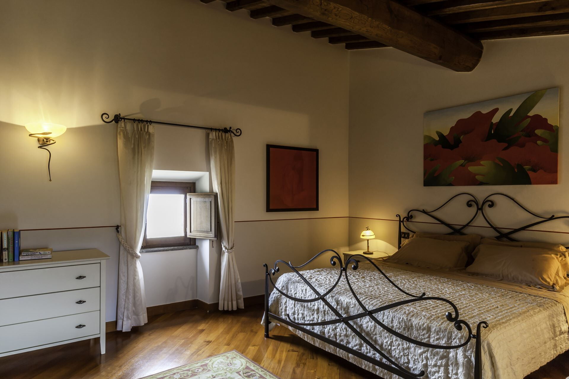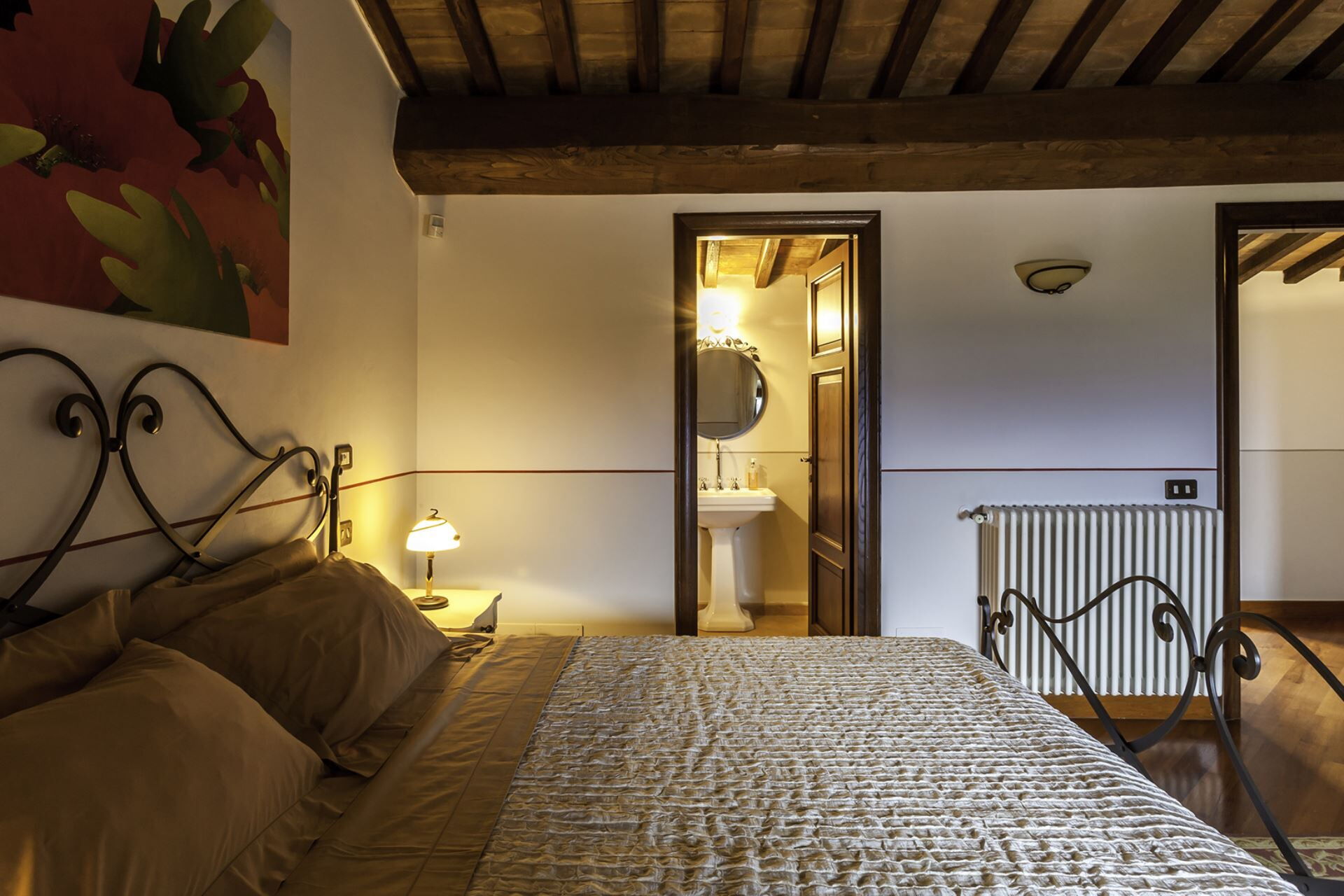 The 8 en suite bedrooms have been sensitively restored using local materials. Wooden and tiled floors, ancient beams and delicate paint and plaster work sit alongside beautifully integrated modern technology and contemporary luxury fittings.