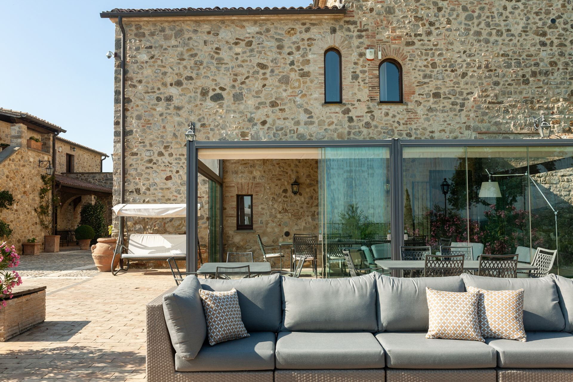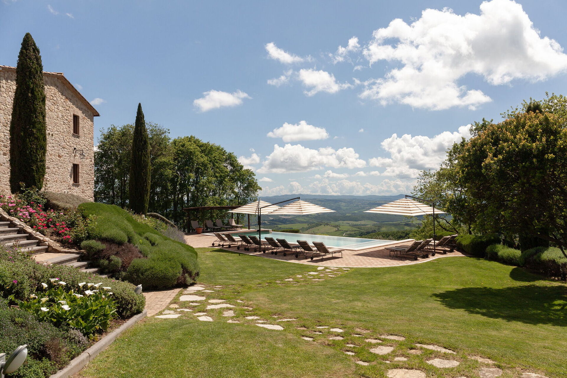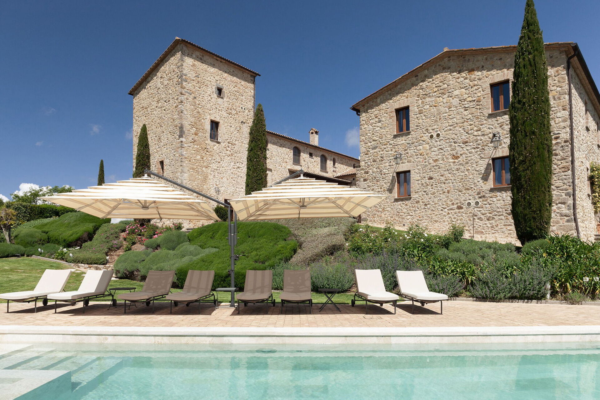 Torre Antica is a short car trip from several fabulous villages, including San Casciano dei Bagni, Cetona, Città della Pieve and Orvieto. The location of the property is excellent for discovering this corner of Umbria, but also for exploring areas of nearby Tuscany. Thanks to the proximity of the A1 motorway (Fabro exit, 10 minutes) and the Fabro train station, both Florence and Rome are easily reachable. Close to the property, 25 km away, is also the lovely Città della Pieve (Umbria), with many delicious restaurants and bars for an authentic Italian lifestyle. The UNESCO site of the splendid Val d'Orcia is just a few kilometers away and here there are magnificent spa resorts such as the aforementioned San Casciano dei Bagni, Bagni Vignoni and Chianciano Terme, all within easy reach for spending a relaxing day. You will find yourself immersed in one of the most renowned areas of Umbria and Tuscany to taste excellent wines or experience prestigious wineries and quality restaurants. Whether you are looking for traditional restaurants or looking for quality experiences in starred restaurants, here you can give vent to all your gastronomic desires. A few kilometers away there is the lake, Trasimeno, but also Tuscan towns such as Montepulciano and Pienza for a gastronomic break and a good glass of wine. Don't miss a visit to Orvieto, known for its wines, its splendid cathedral and the fantastic historic center for an authentic Italian lifestyle. There is so much to see and do, including historic villages to visit and countryside to discover, that will continually delight your senses. Finally, you can choose the ideal vehicle for each destination: from the car to the scooter to the e-bike. If you would like more information on this area or to know the exact location of the property, write to booking@greatstays.it