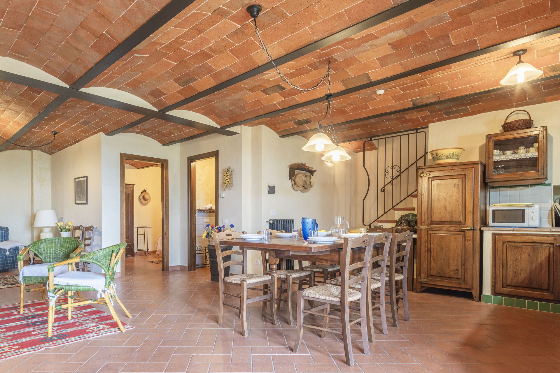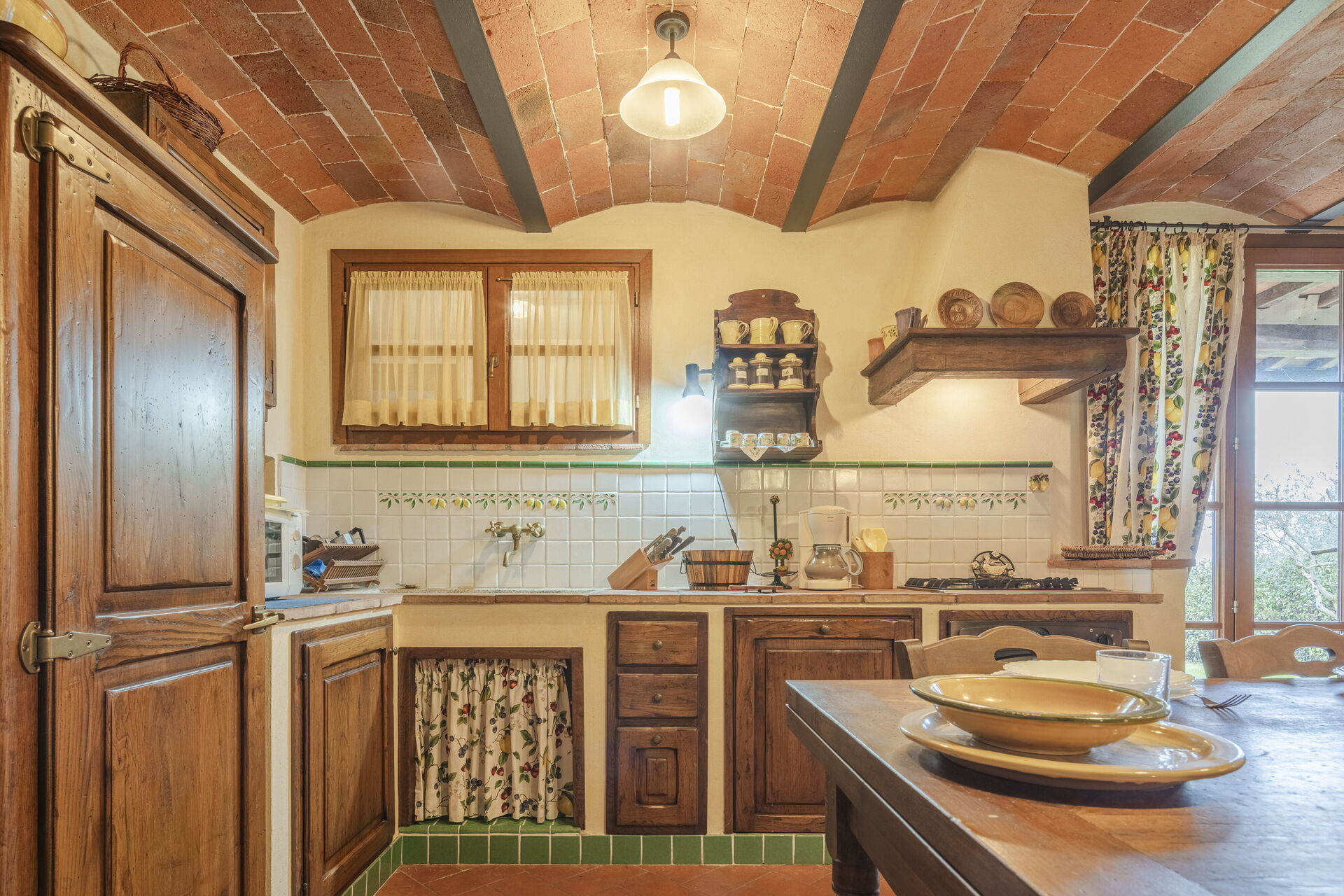 Upon arrival you will be welcomed by the owner or manager where you’ll find a lovely clean well-maintained property perfect for a splendid holiday in Tuscany. For your enjoyment you will find a shared pool where you can unwind while enjoying a nice cold beverage after a hectic day of visiting museums. Sharing a meal with friends and family is a huge part of the Tuscan culture. Take advantage of the well-equipped kitchen to prepare meals using local produce while on your vacation. The kitchen includes stove and refrigerator, as well as, plenty of tableware and cutlery for up to six people.
