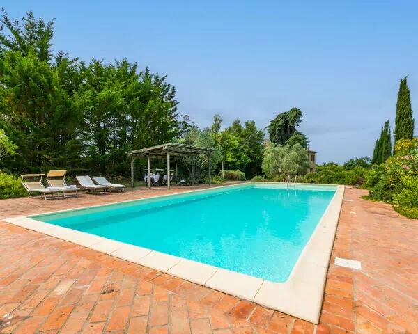 The Tramonto features a spacious outdoor area with a garden and a private swimming pool. The pool measures 16 x 8 meters and has a depth ranging from 140 to 140 cm, making it suitable for both swimming and relaxation. The pool is only available during the summer season, from June 28 to August 30. Additionally, the property boasts a 2-hectare private land, offering ample space for outdoor activities and enjoyment.