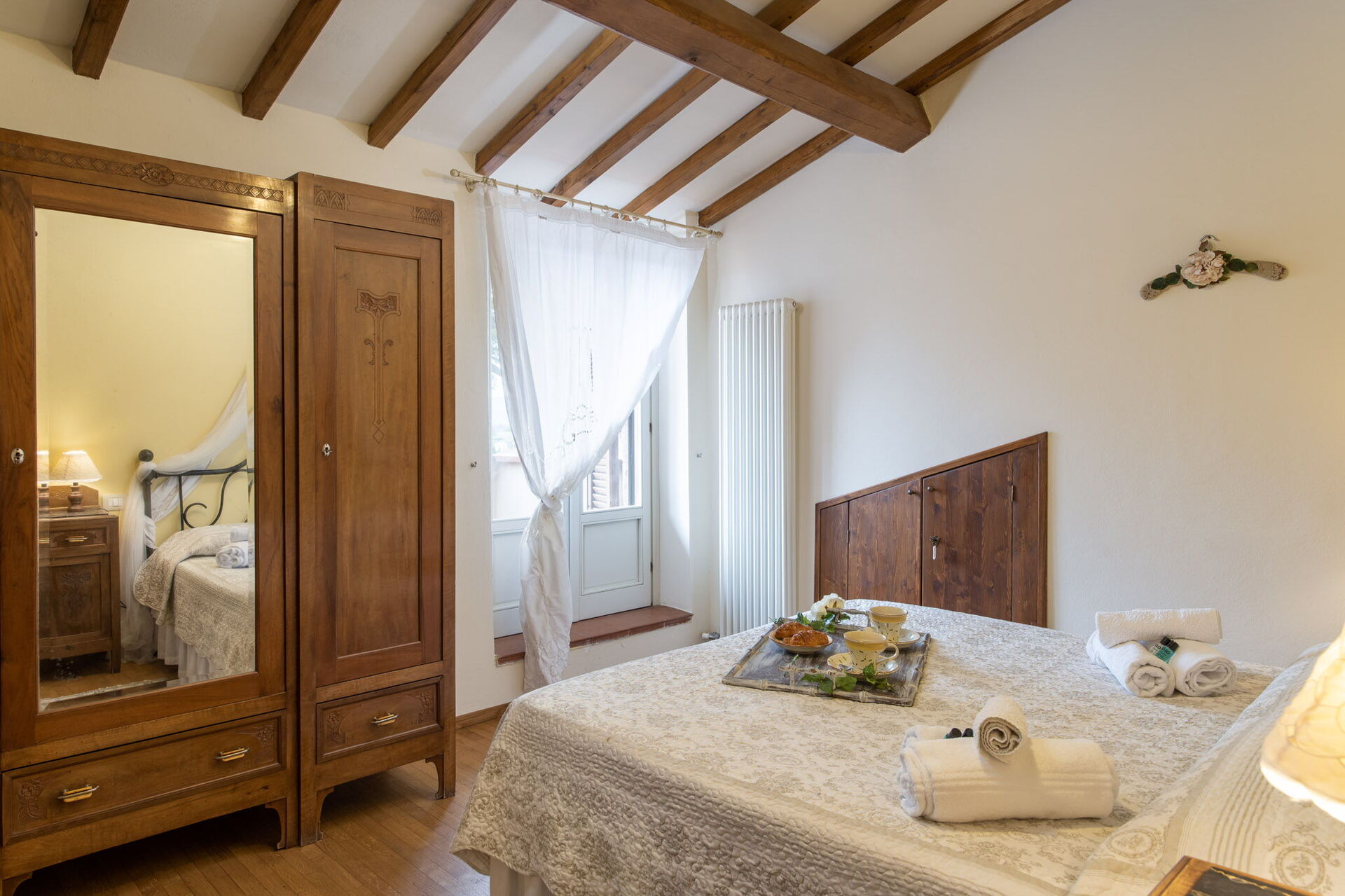 Bedroom + Ensuite Bathroom: double bed (length: 190m, width: 160m), WIFI internet, internet, basin, bidet, shower, hairdryer, bathroom with no window, exit to the garden.