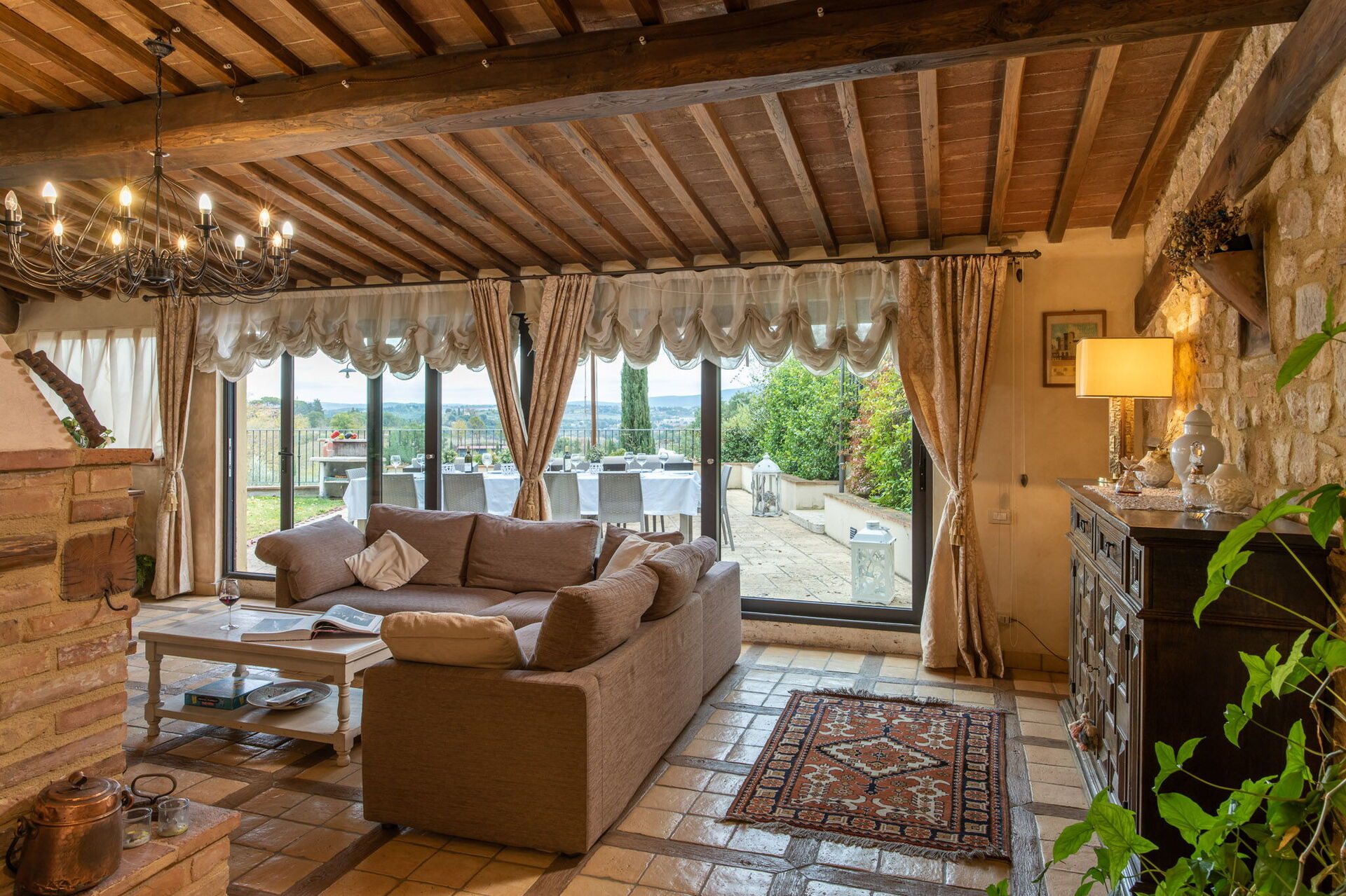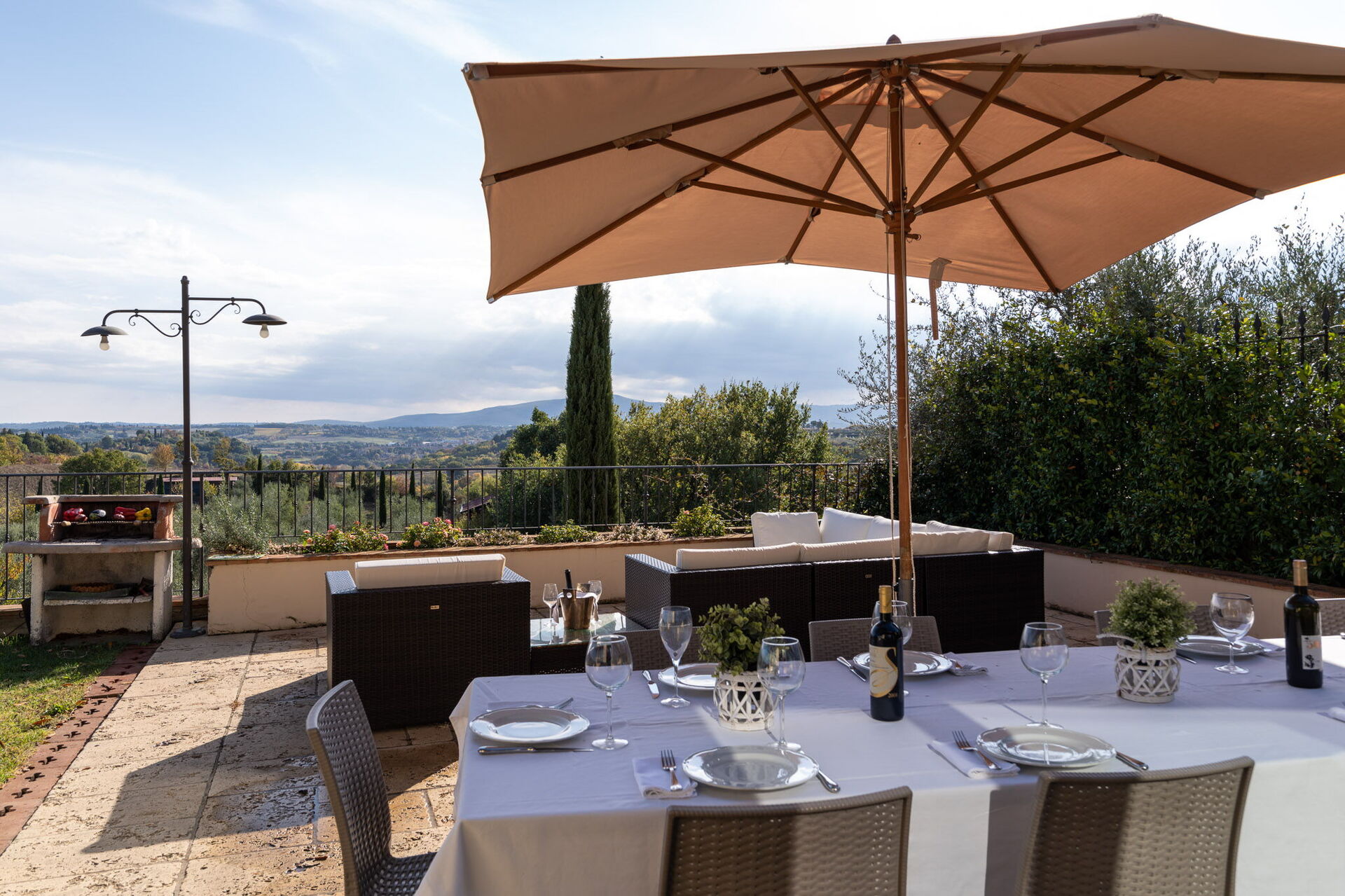 Upon arrival you will be welcomed by the owner or manager where you’ll find a beautiful clean well-maintained property with views of the hills perfect for a peaceful holiday in Tuscany. For your enjoyment you will find a private pool where you can relax while enjoying a nice cold beverage after a hectic day of shopping. Outside you will also find a hot tub and barbecue grill. If you enjoy cooking for family and friends there is a well-equipped kitchen including coffee machine, microwave, toaster, stove and refrigerator, as well as, plenty of tableware and cutlery for up to 14 people. If you prefer to dine 'al fresco', there is a fully furnished veranda where you can enjoy the weather while dining outdoors.