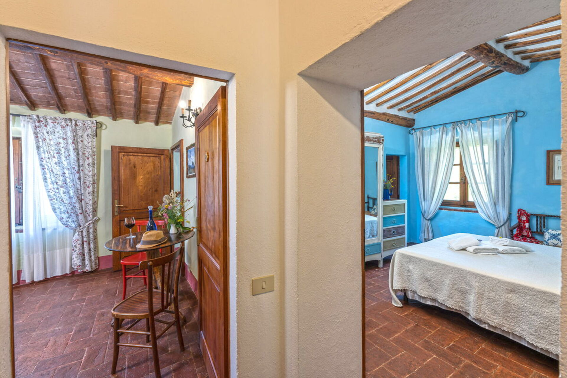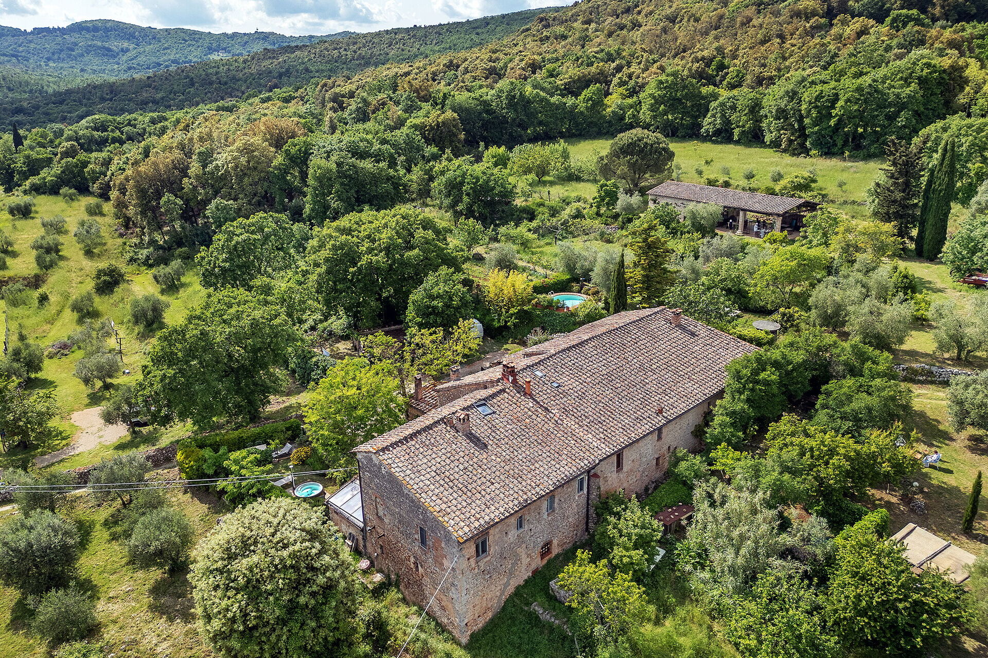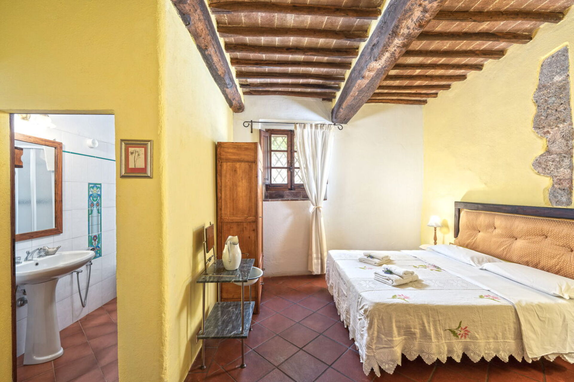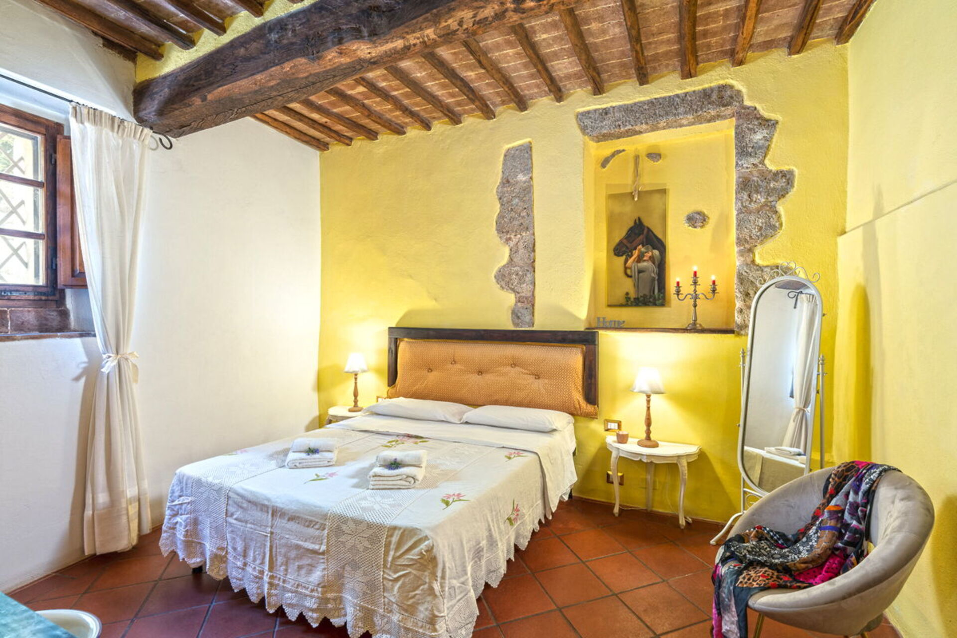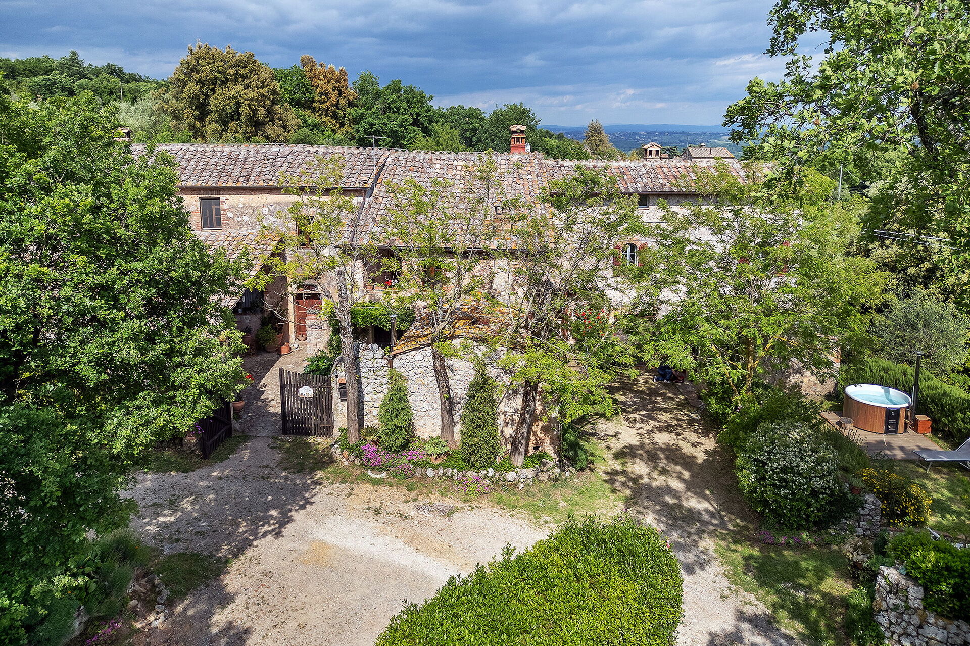 Podere Lorena, Charming Tuscan Farmhouse is a lovely stone building (300 sq m) with WiFi internet, private pool and hot tub. The property can sleep up to 12 people comfortably in six bedrooms with six bathrooms. Podere Lorena, Charming Tuscan Farmhouse is located 14 km (9 mi) from Monteriggioni, Italy and only 14 km (9 mi) from Siena in the tourist area "Siena And Surroundings".