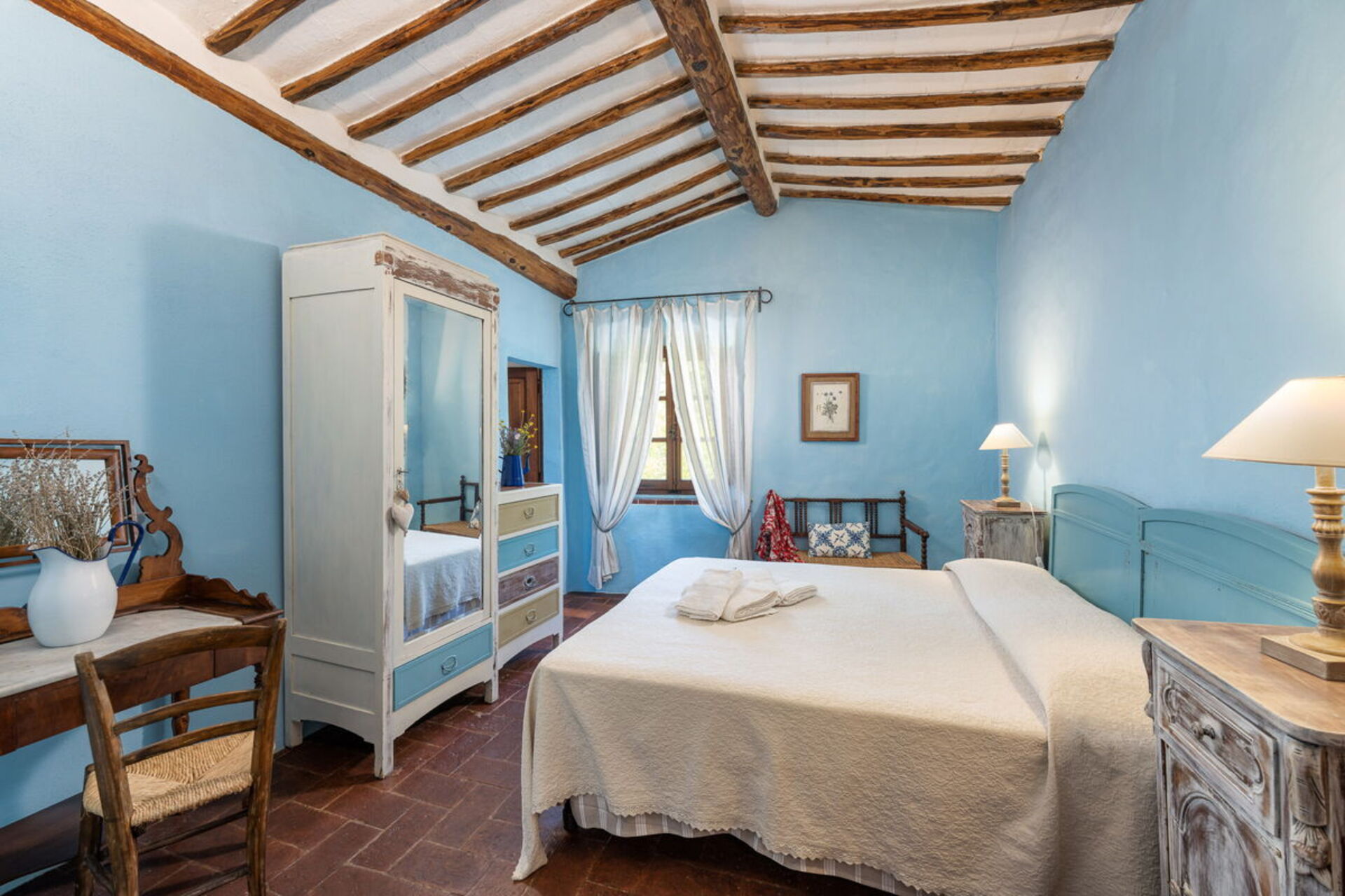 Bedroom + Ensuite Bathroom 3: double bed (length: 1.9m, width: 1.6m), WIFI internet, mosquito net, armchair, basin, bidet, shower, hairdryer.