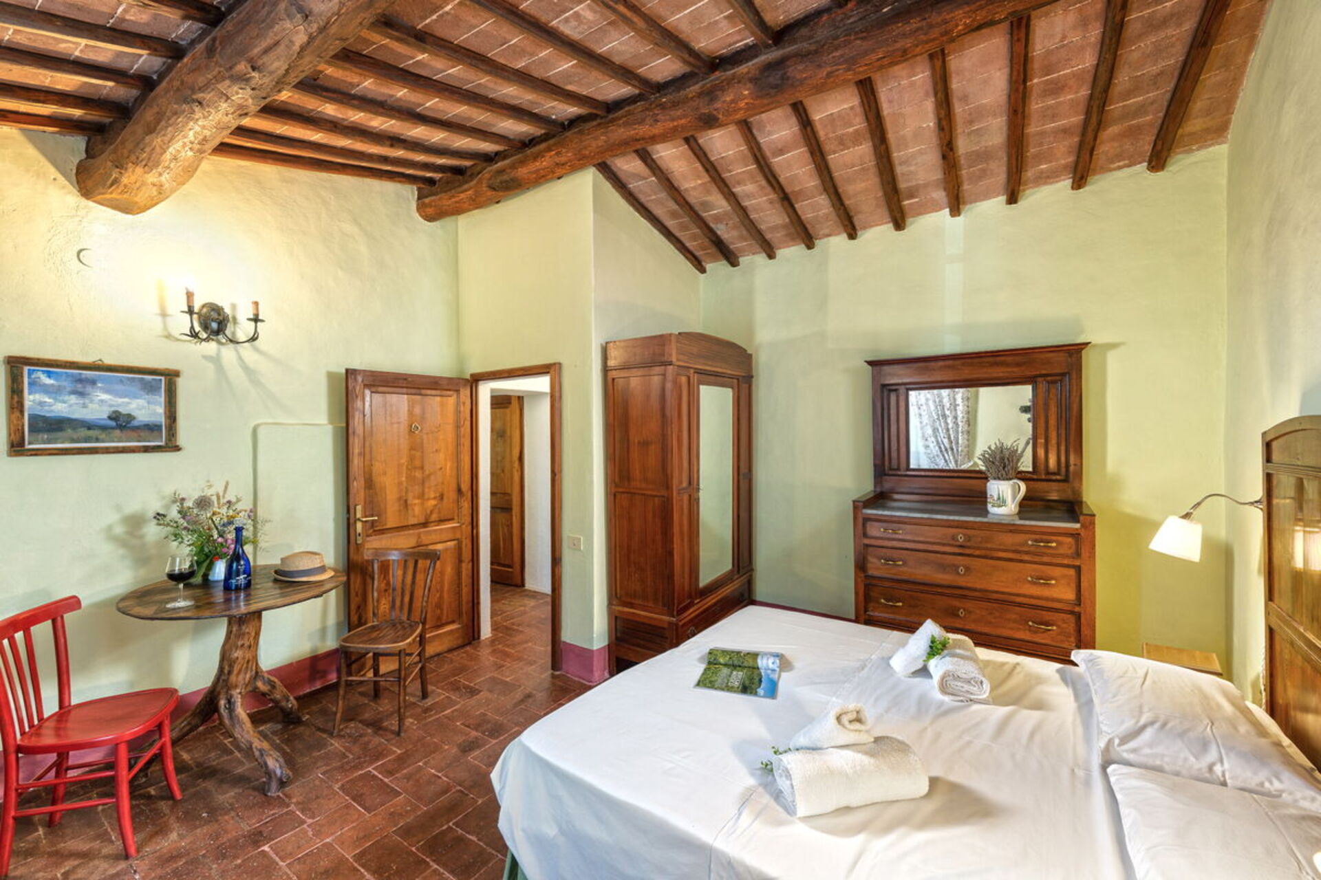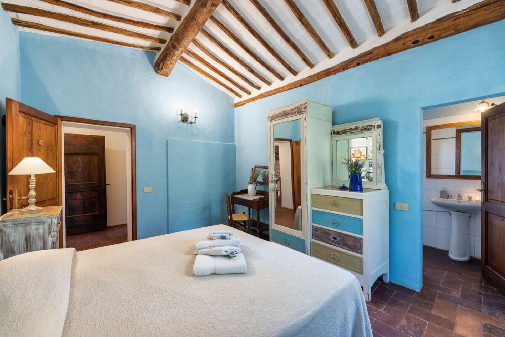 Bedroom + Ensuite Bathroom 3: double bed (length: 1.9m, width: 1.6m), baby bed, WIFI internet, mosquito net, armchair, basin, toilet, bidet, shower, hairdryer.