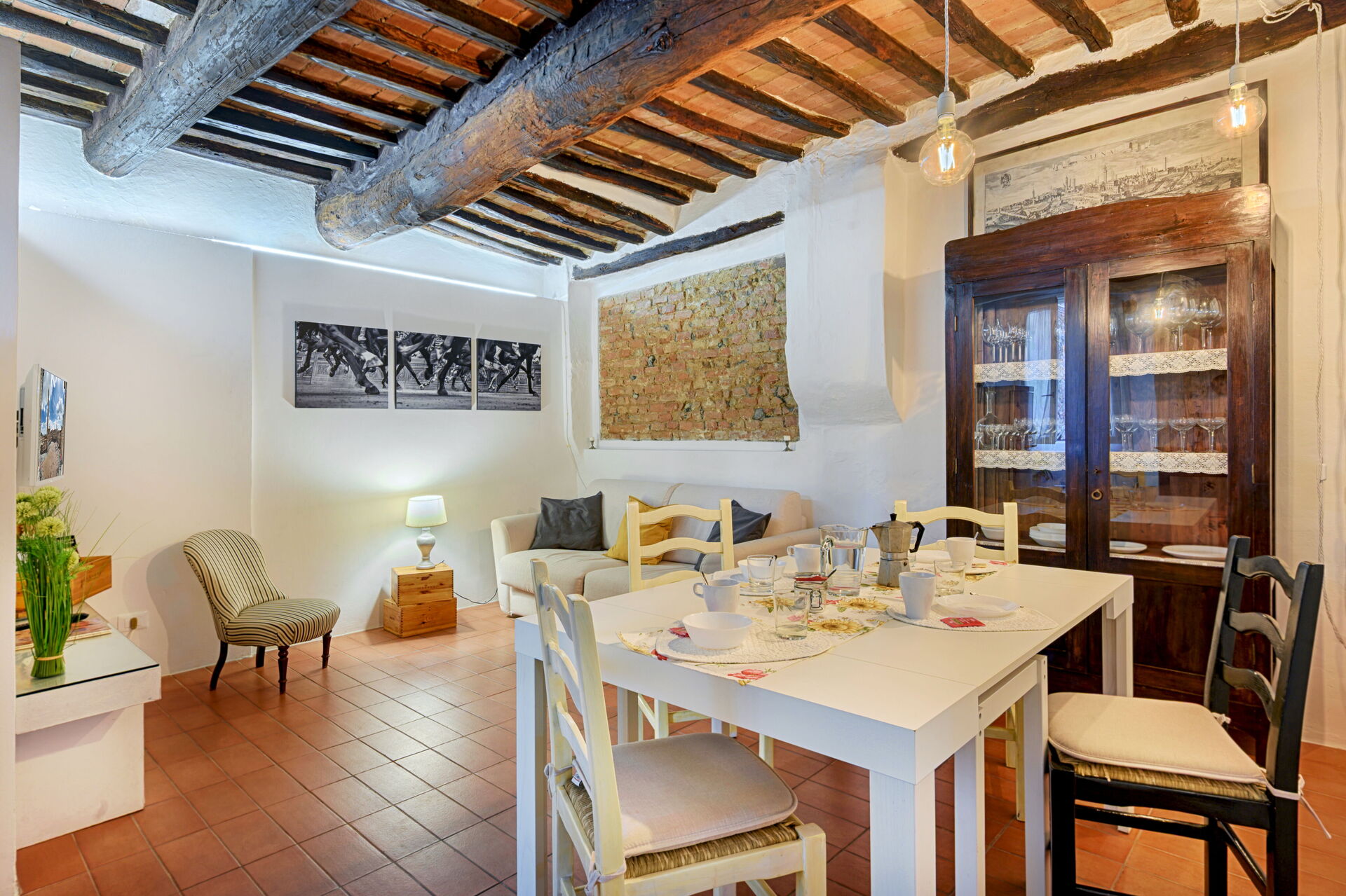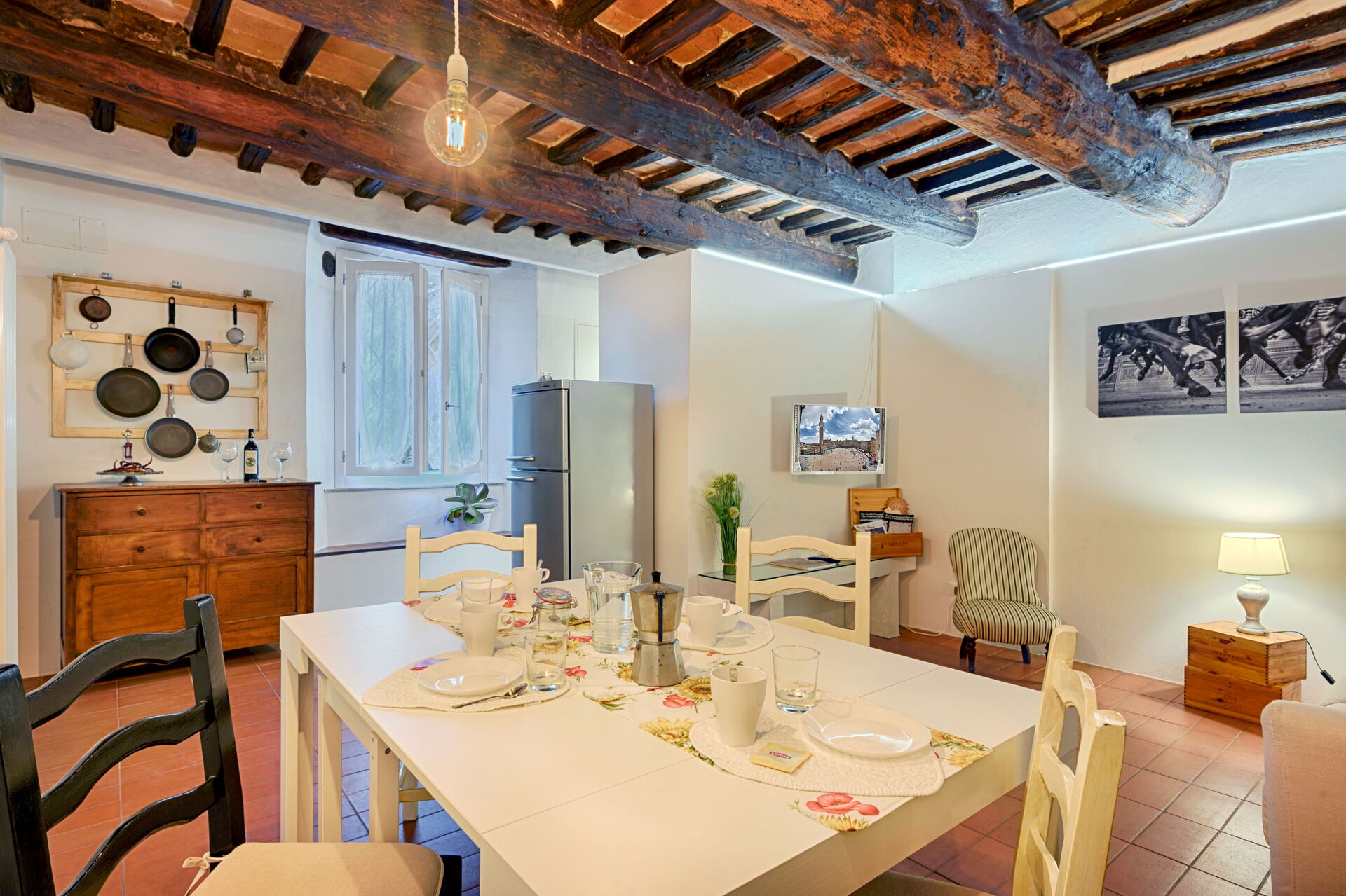 When you arrive you will be welcomed by the owner or manager where you’ll find a beautiful clean well-maintained property ideal for a splendid vacation in Tuscany. Regardless of how you spend your days - visiting museums, shopping, sightseeing or just driving in the countryside, when you arrive home you can unwind with your family and friends for a perfect ending to another day in Tuscany. Sharing a meal with friends and family is a huge part of the Tuscan culture. Take advantage of the well-equipped kitchen to prepare meals using local produce while on your holiday. The kitchen includes coffee machine, microwave, toaster, stove and refrigerator, as well as, plenty of tableware and cutlery for up to four people.