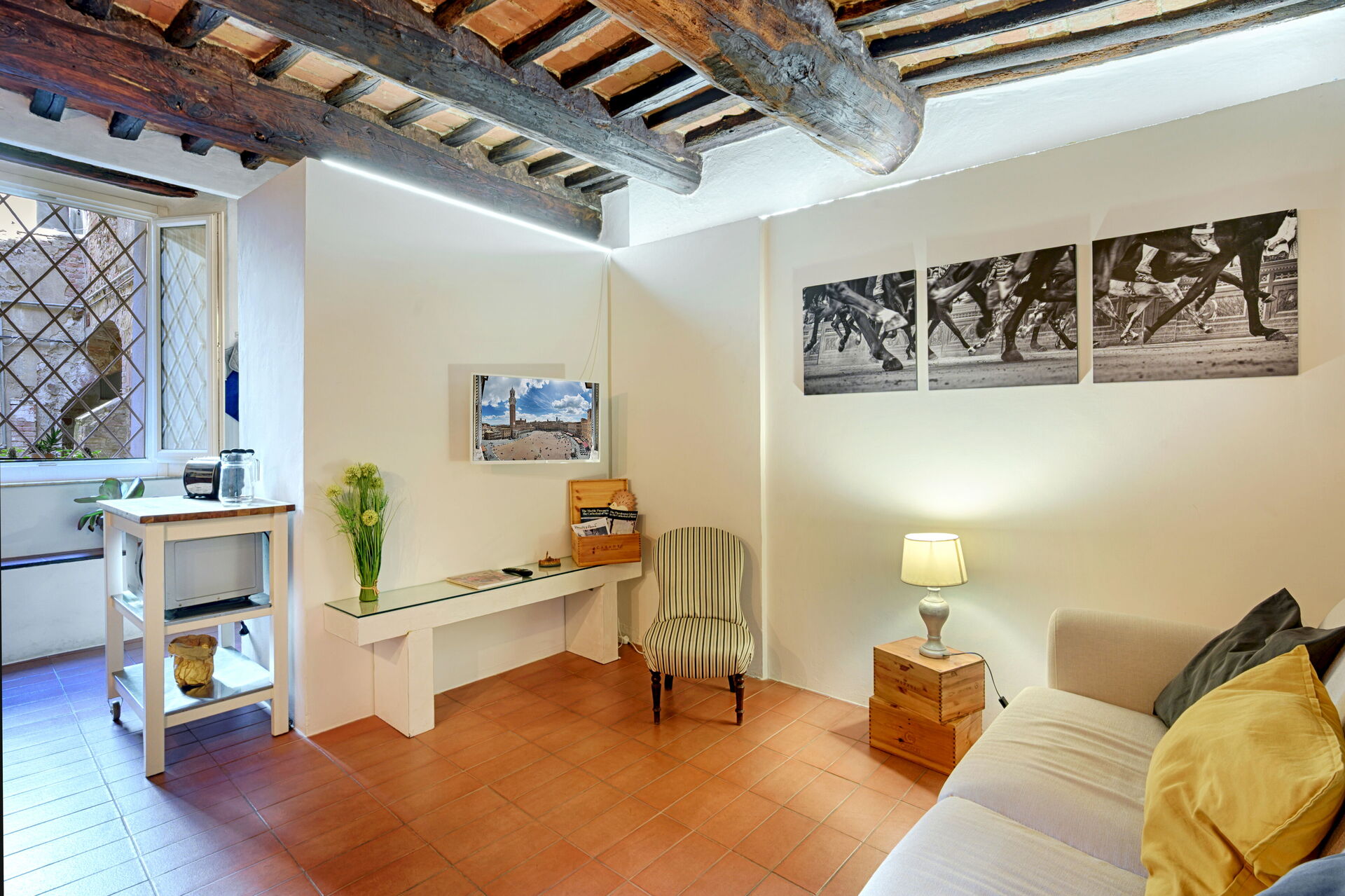 The Silent Courtyard Retreat: Spacious 2-Bedroom S is a beautiful holiday rental (90 sq m) with WiFi internet. The property can sleep up to four people comfortably in two bedrooms with two bathrooms. The Silent Courtyard Retreat: Spacious 2-Bedroom S is located in the centre of Siena, Italy and only 40 km (25 mi) from San Gimignano in the tourist area "Siena And Surroundings".
