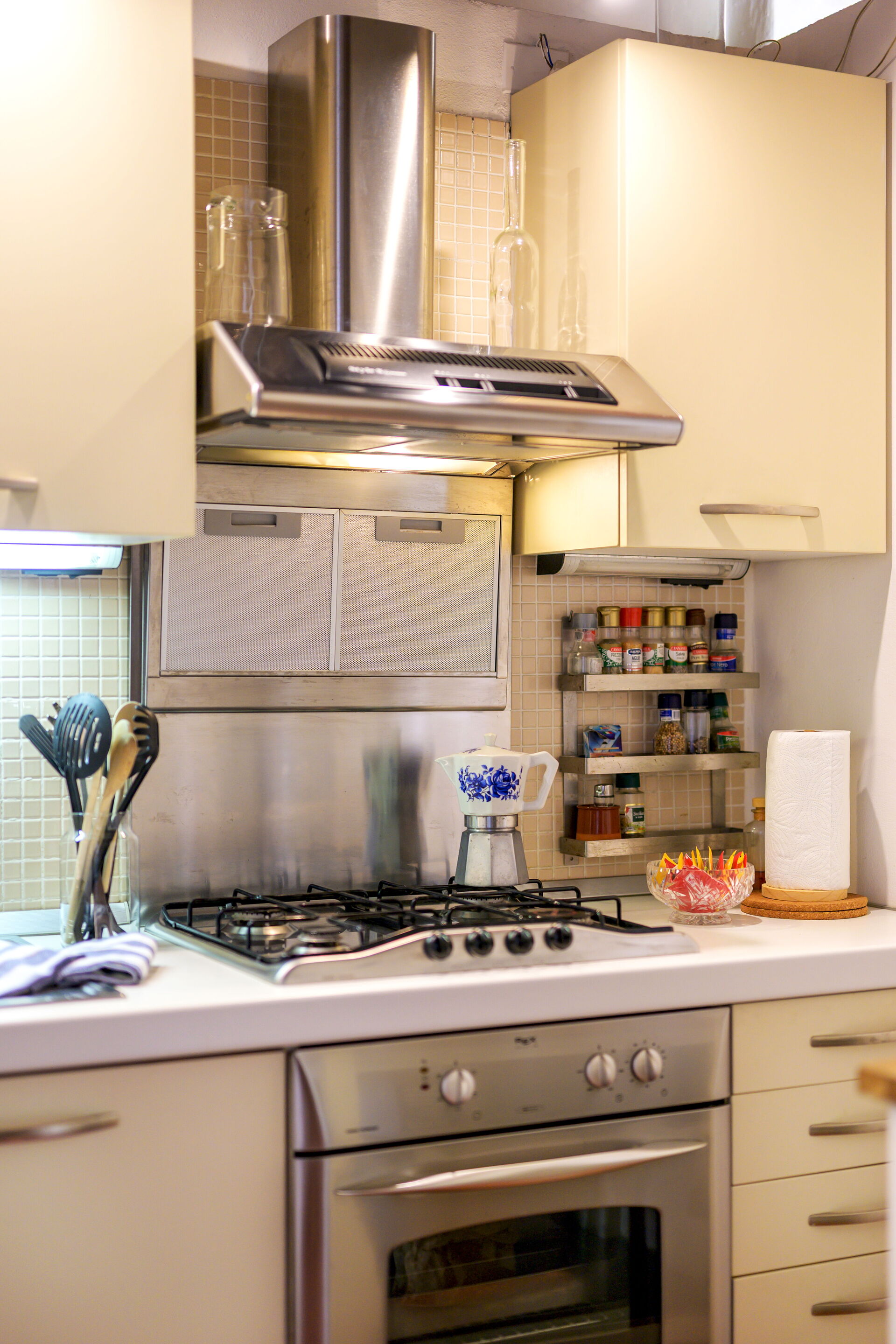 Kitchen + living room (45 m2): dining table (people: 6), dishwasher, fridge, freezer, microwave, stove top, toaster, iron, italian coffee machine, american coffee machine, sofa (people: 4), WIFI internet, television, smoke detector, co2 detector, exit to the patio.