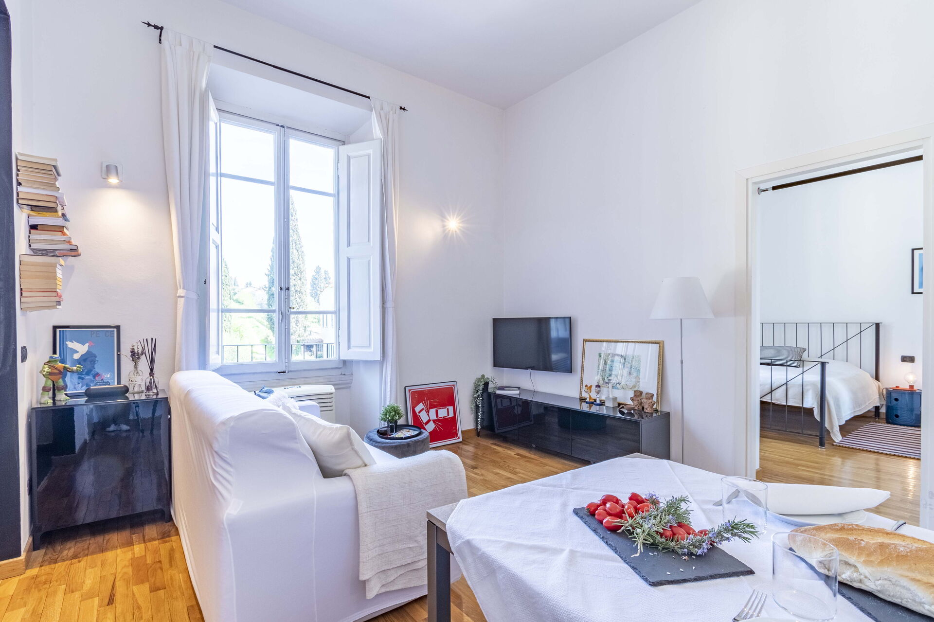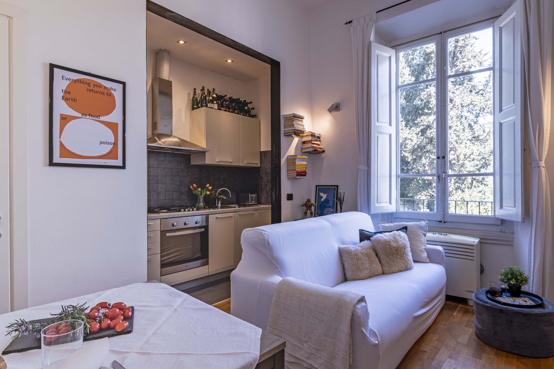 After arriving you’ll find a beautiful clean well-maintained property with views of the city and the hills perfect for a splendid vacation in Tuscany. After a hectic day of visiting museums, spend some time with friends and family enjoying a glass of wine - a perfect way to unwind at the end the day. If you enjoy cooking for family and friends there is a well-equipped kitchen including coffee machine, toaster, stove and refrigerator, as well as, plenty of tableware and cutlery for up to four people.