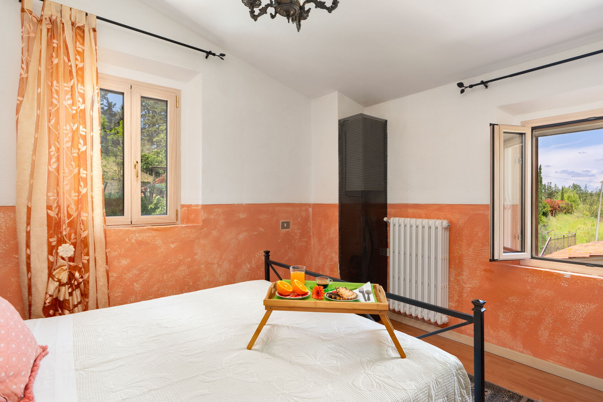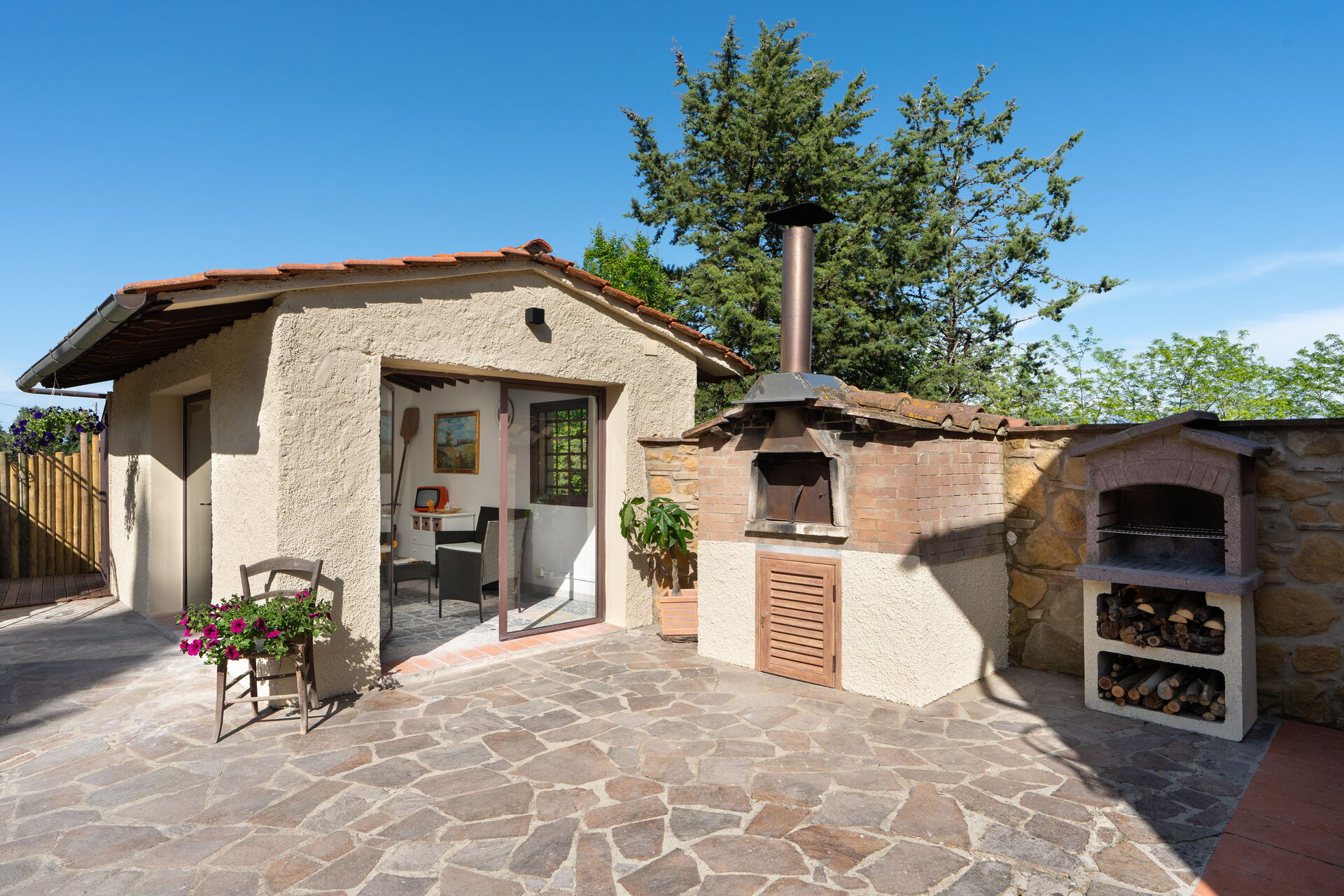 After arriving you will be welcomed by the owner or manager where you’ll find a nice clean well-maintained property with views of the hills perfect for a peaceful vacation in Tuscany. For your pleasure you will find a private pool where you can unwind while enjoying a nice cold beverage after a busy day of sightseeing. Dining with friends and family is a huge part of the Tuscan culture. Take advantage of the well-equipped kitchen to prepare meals using local produce while on your vacation. The kitchen includes coffee machine, microwave, stove and refrigerator, as well as, plenty of tableware and cutlery for up to seven people.
