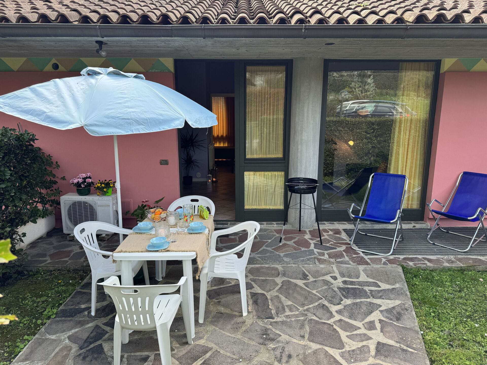 Kitchen + living room: dining table (people: 4), fridge, freezer, stove top, oven, american coffee machine, sofa (people: 2), WIFI internet, mosquito net, highchair, satellite tv, smoke detector, co2 detector, exit to the garden.