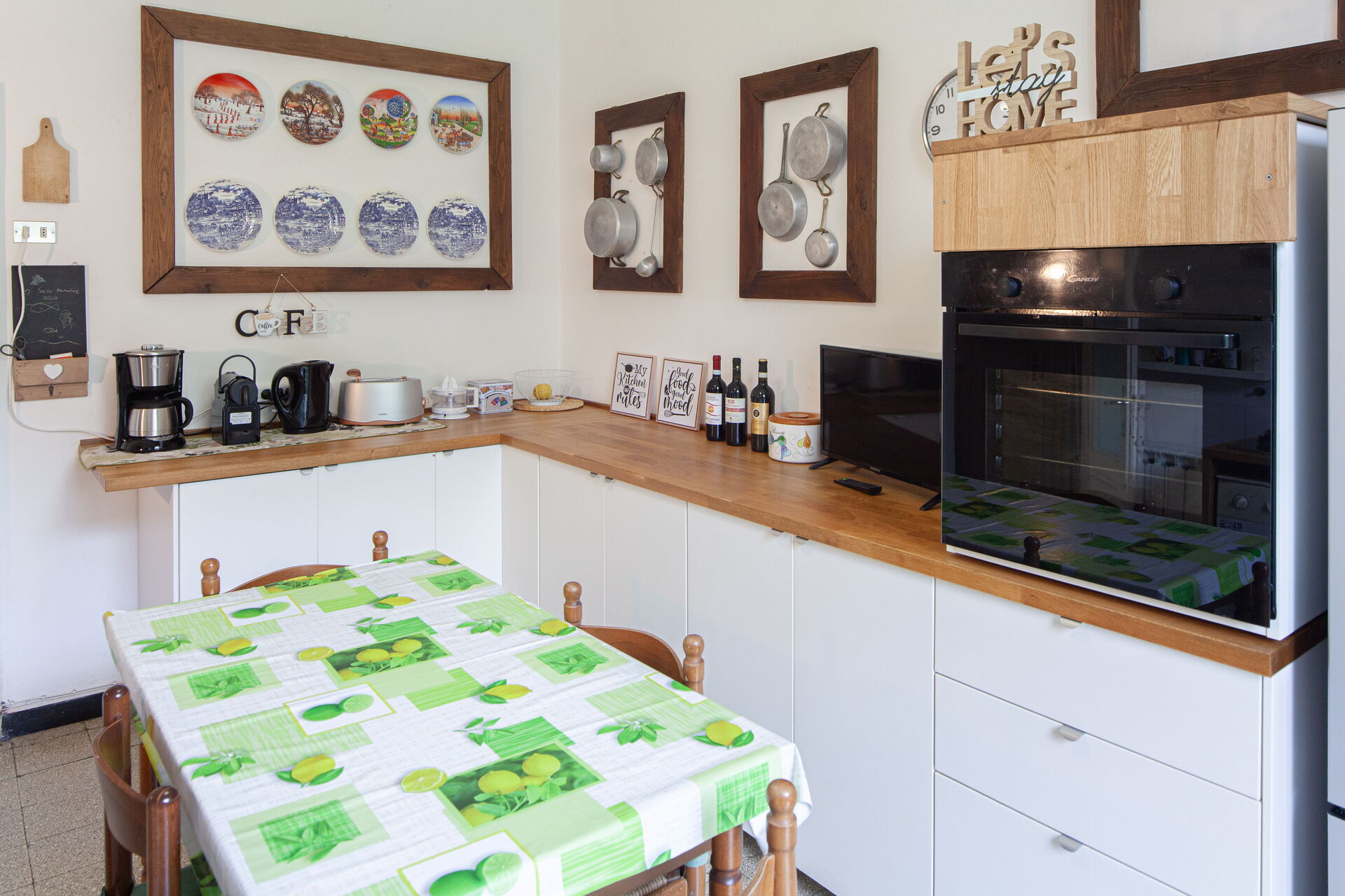 Very well equipped kitchen, dishwasher, washing machine, hob with 4 burners, oven, fridge, freezer, sink. Nespresso, American coffee machine, Italian moka, electric kettle, toaster, hand blender, juicer. Dining table with chairs. TV.
