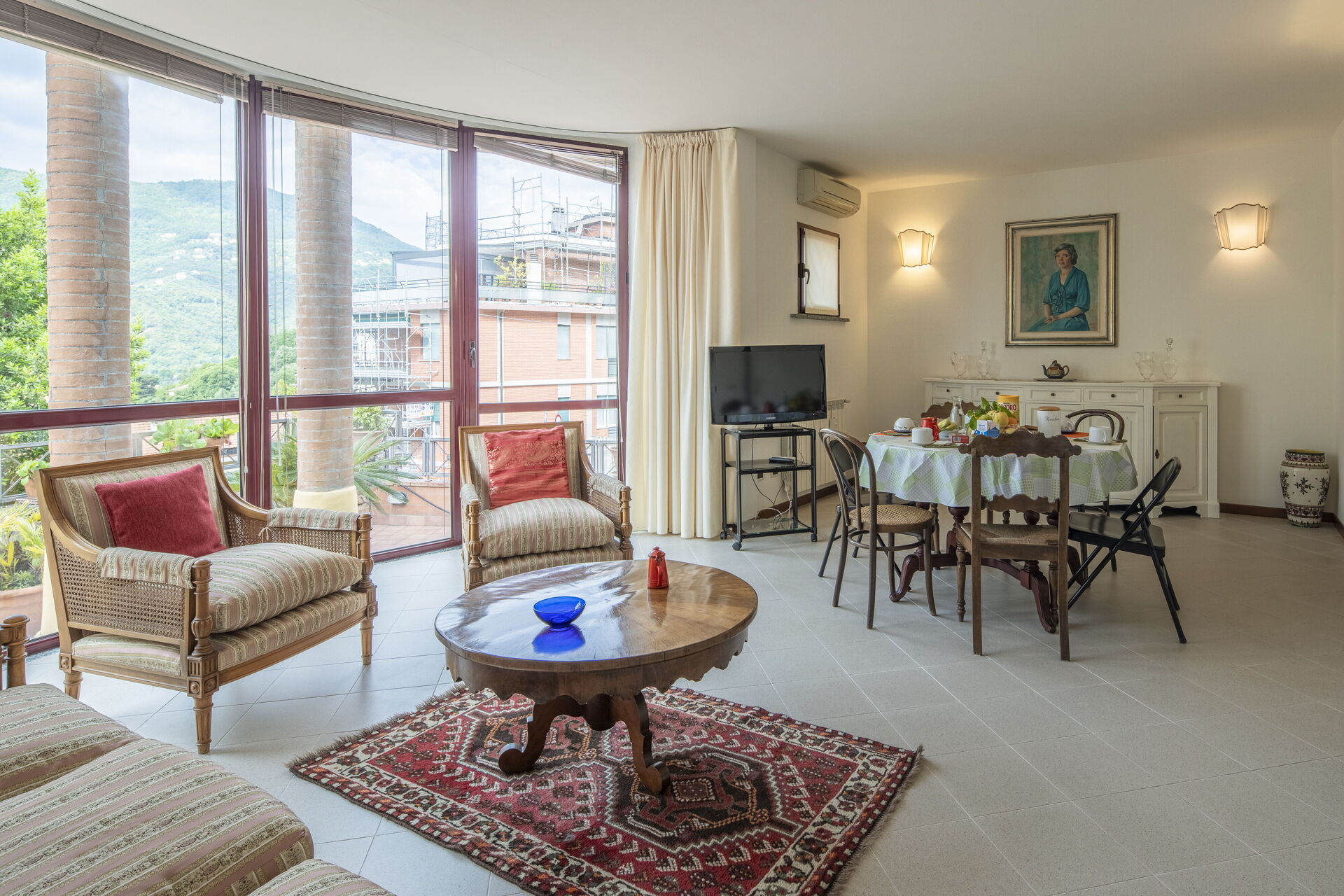 After arriving you’ll find a beautiful clean well-maintained property with views of the city and the hills ideal for a splendid vacation in Liguria. A real benefit of renting a home, instead of multiple hotel rooms, is the ability to relax after a busy day of sightseeing with family and friends. Enjoy a meal together along with some local wine to finish the day. If you enjoy cooking for family and friends there is a well-equipped kitchen including coffee machine, toaster, stove and refrigerator, as well as, plenty of tableware and cutlery for up to four people.
