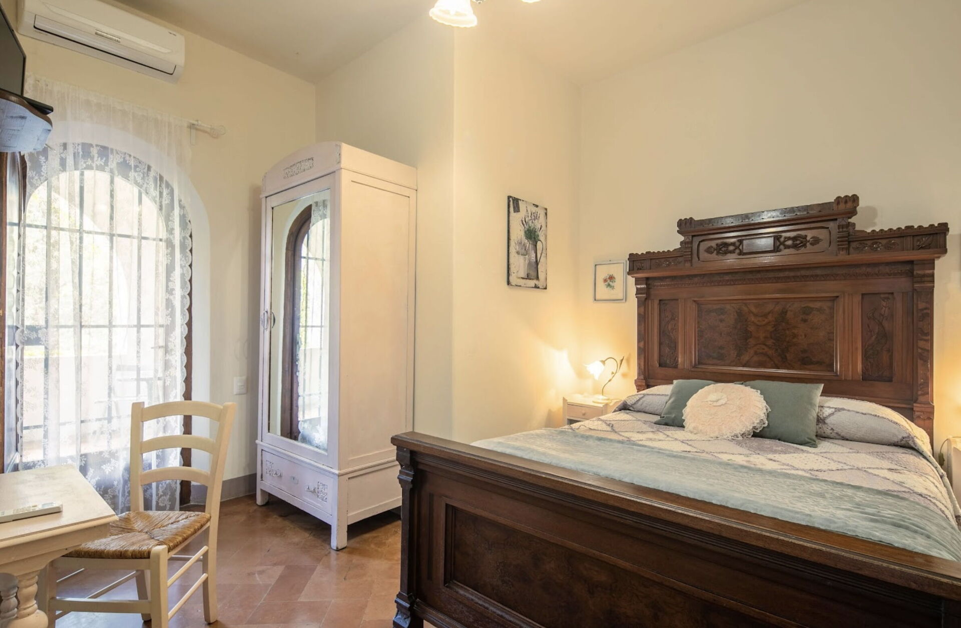 Bedroom + Ensuite Bathroom 5: double bed, WIFI internet, air conditioning, sofa, working desk, basin, toilet, bidet, hairdryer, exit to the terrace.