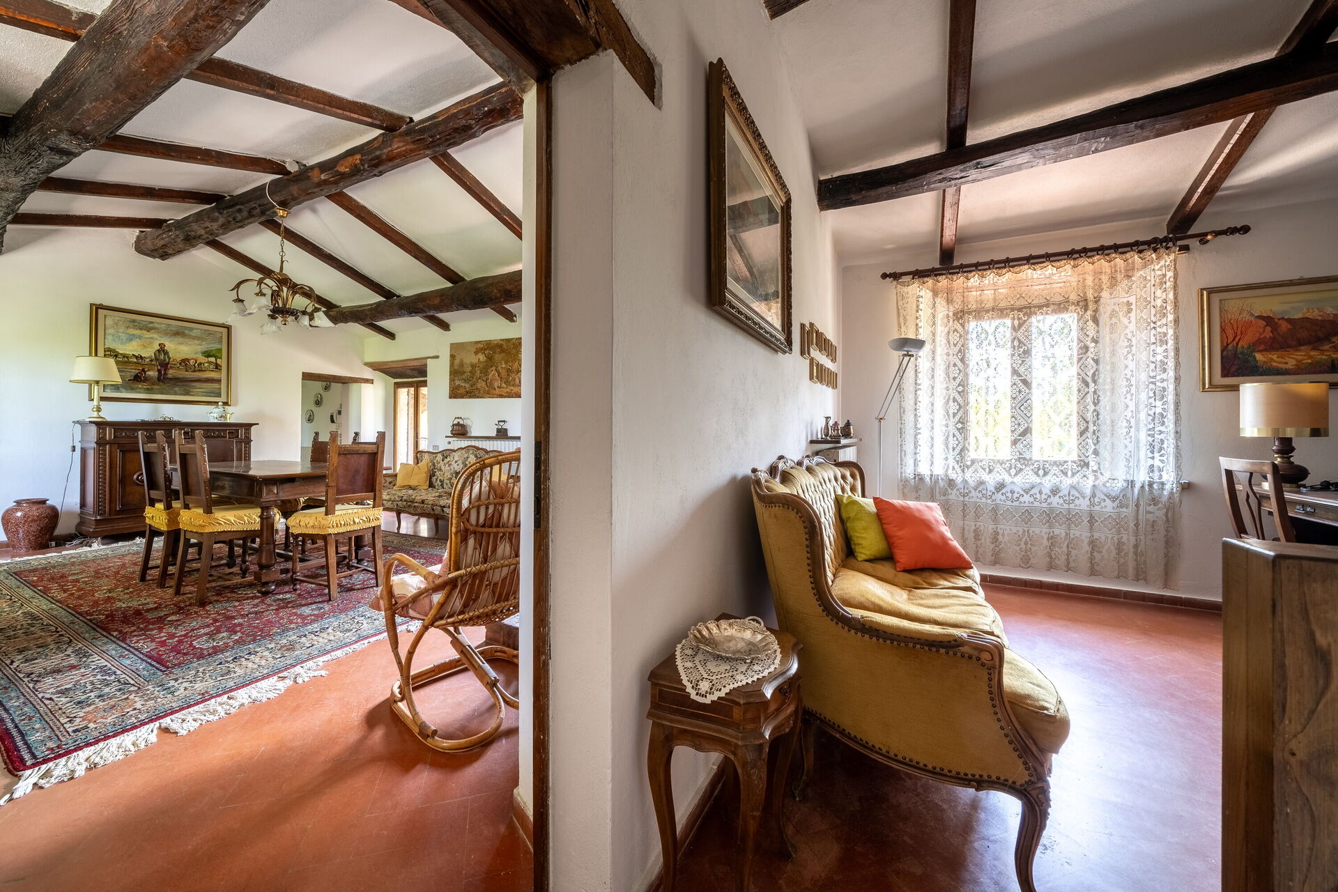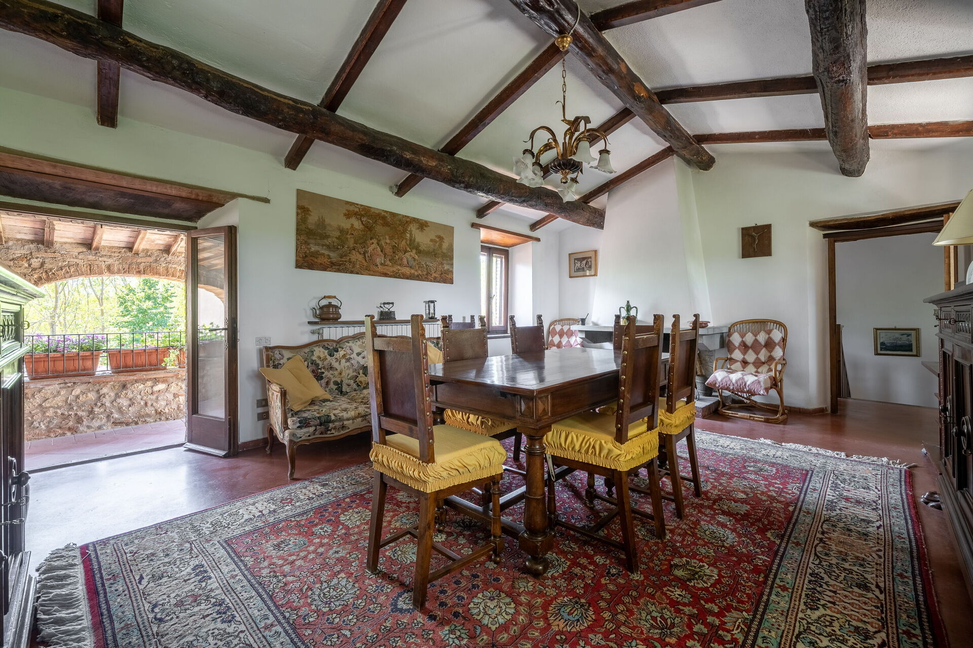 Dining room: dining table, armchair, WIFI internet, mosquito net, television, exit to the veranda.