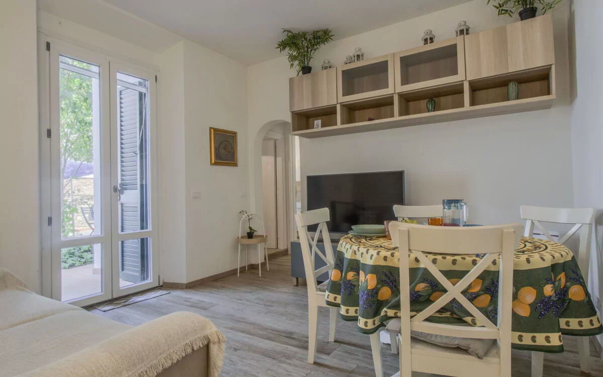 The Deva apartment comes well-equipped with various amenities to ensure a comfortable stay. The living/dining room features a double sofa bed, digital TV, and air conditioning. There is also a double bedroom with digital TV and air conditioning, with both rooms providing direct access to the garden. The kitchen is fully-equipped with an oven, dishwasher, 4 induction hot plates, toaster, microwave, and an electric coffee machine. Other amenities include electric heating, wooden floors, a 55 square meter garden with terrace furniture, an electric barbecue, and deck chairs. Additionally, the apartment provides a washing machine, children's high chair, hair dryer, and complimentary Wi-Fi internet access.