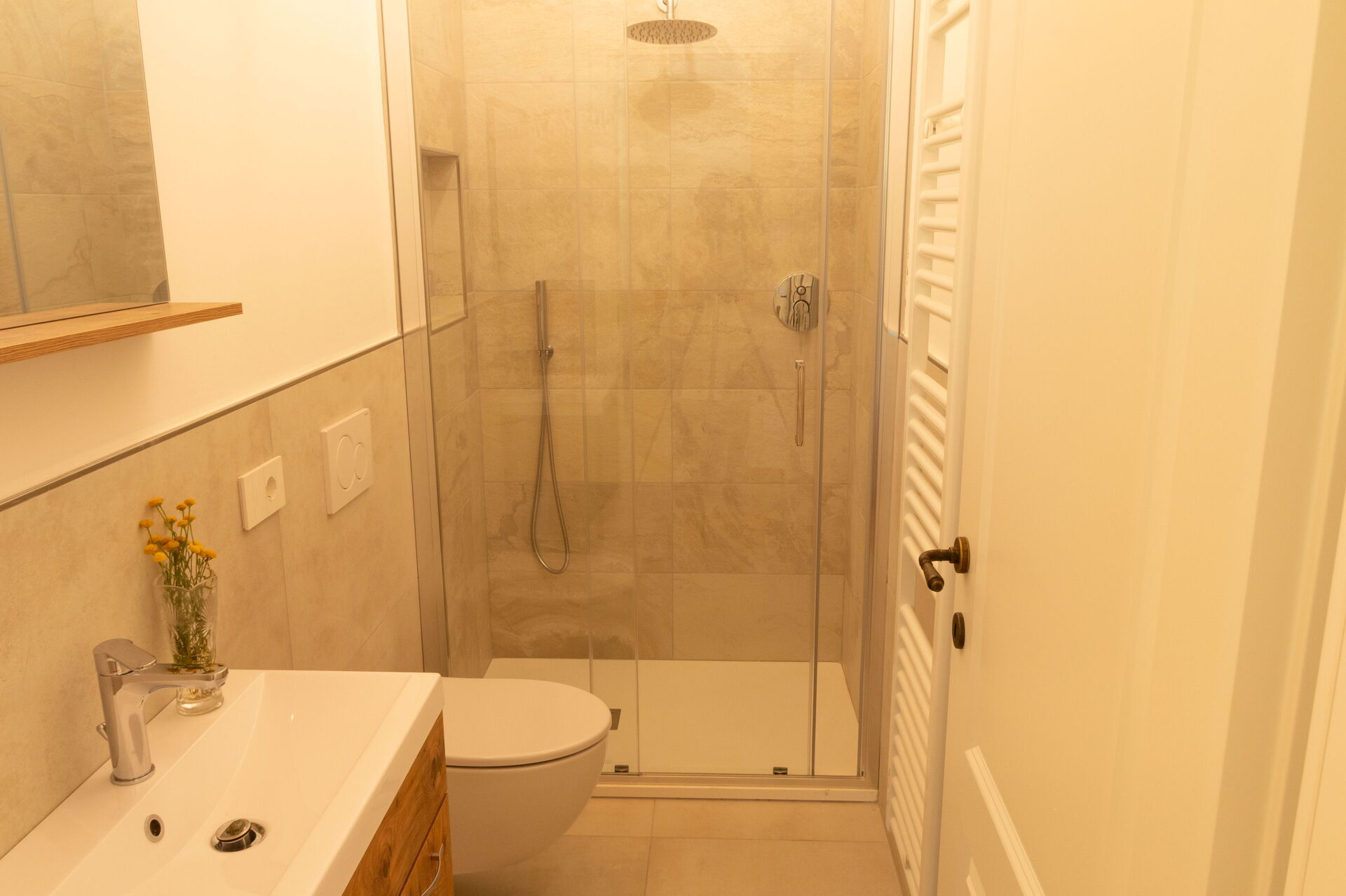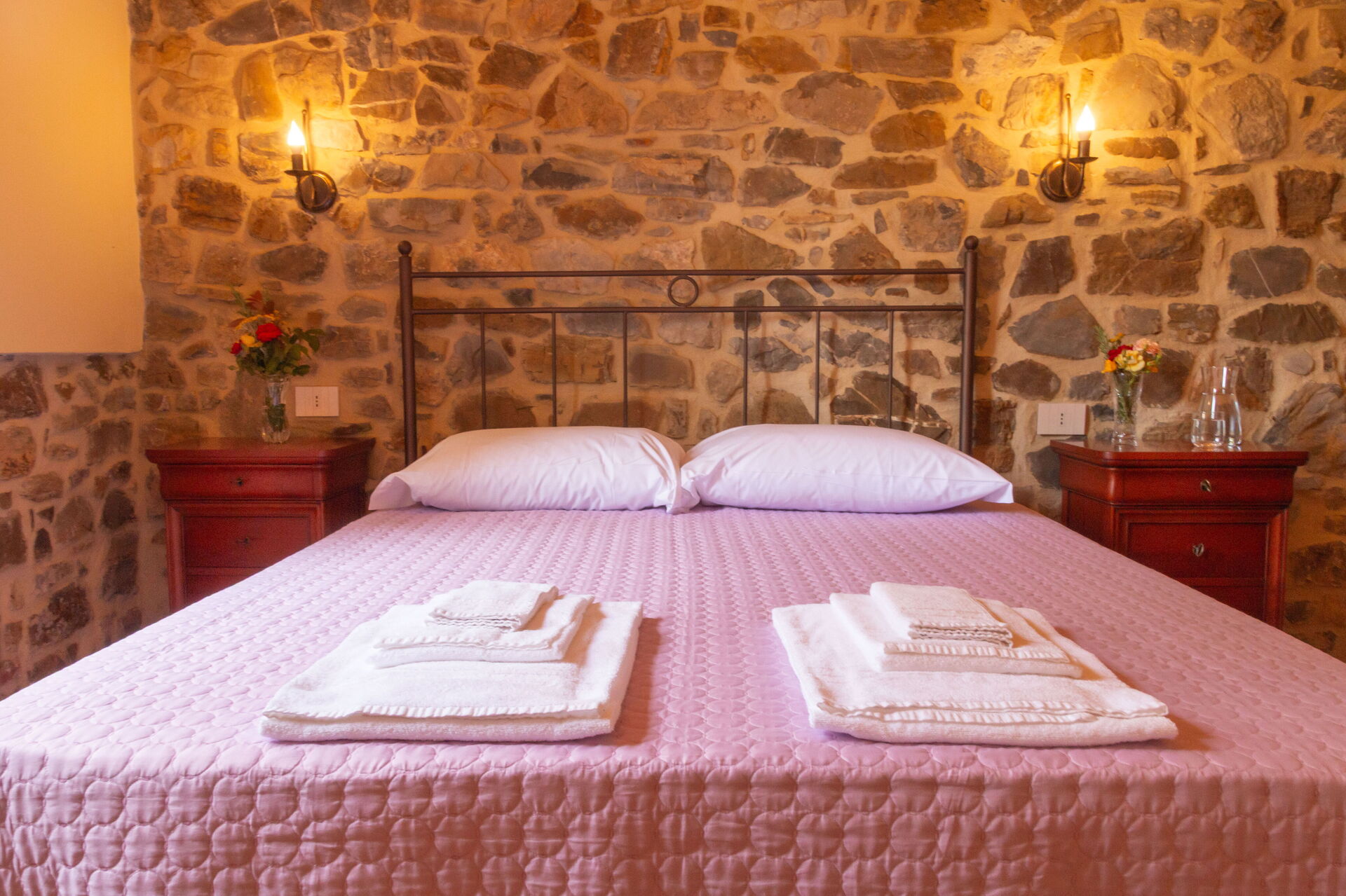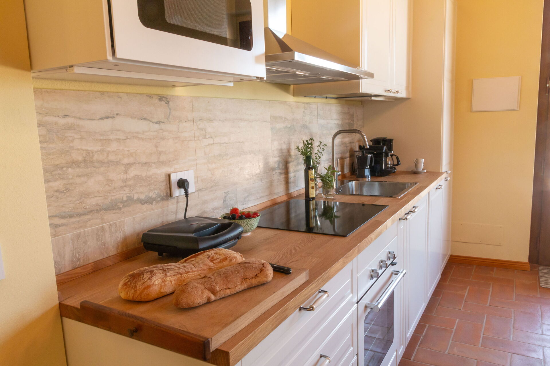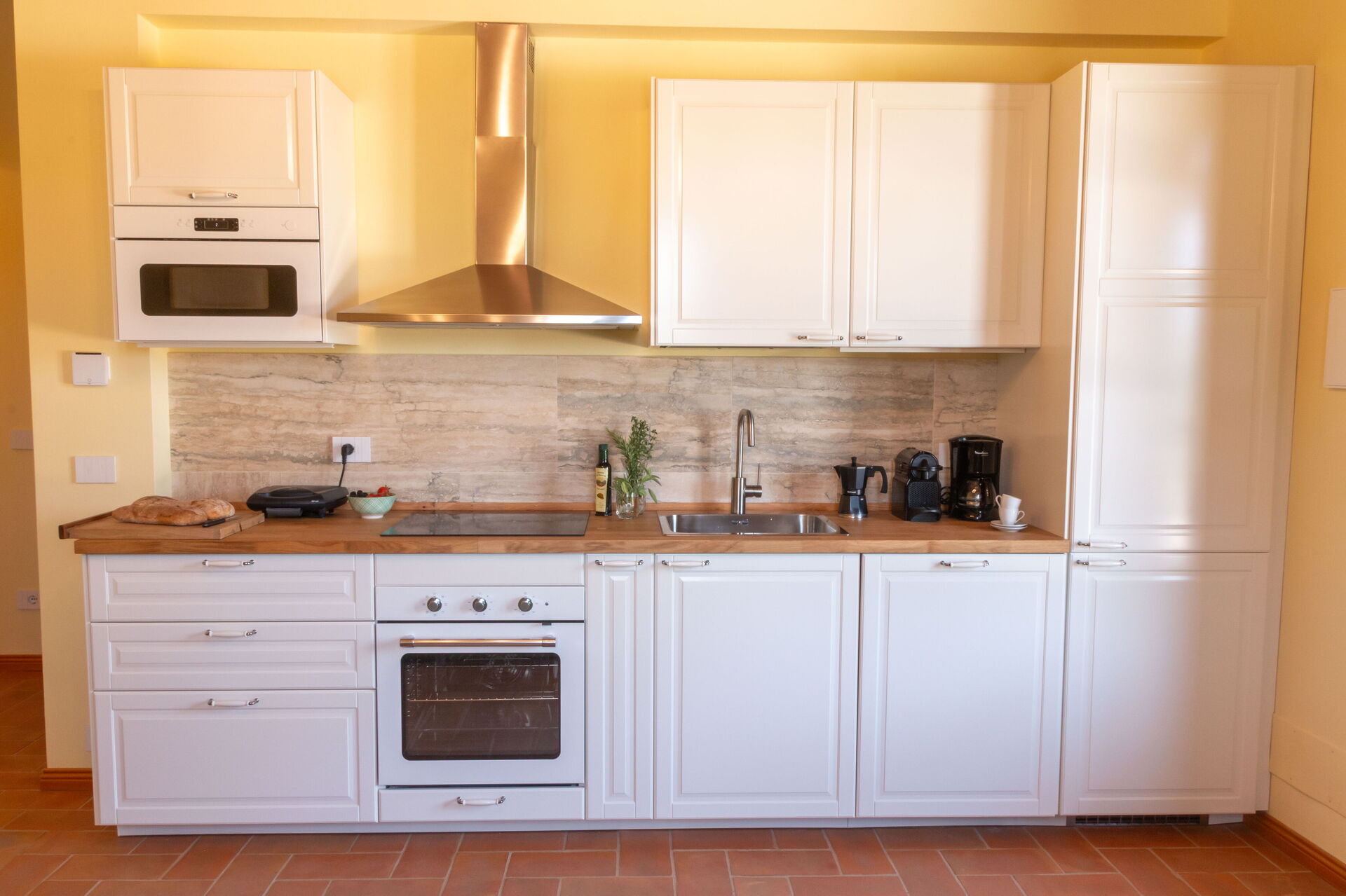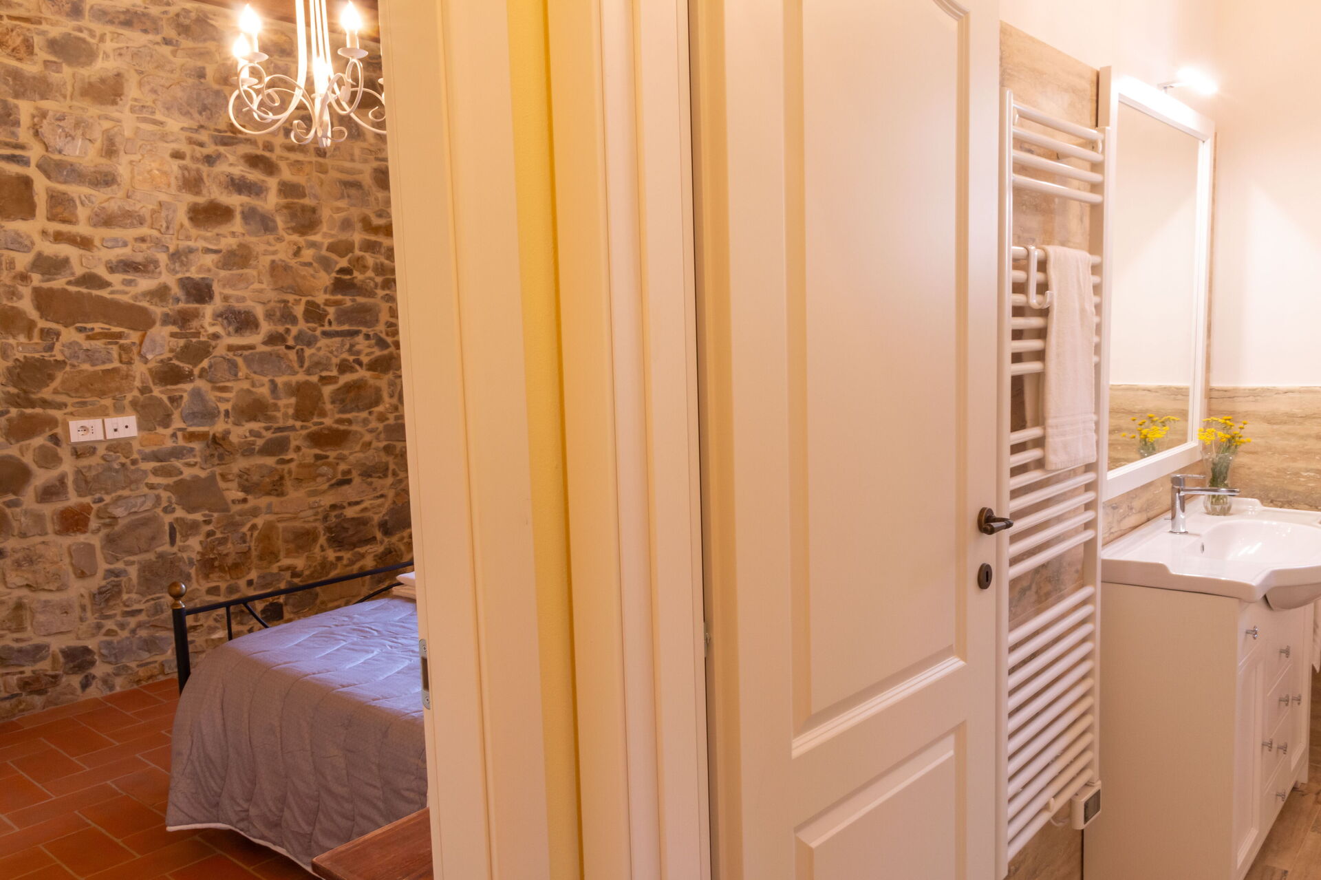 Inside you’ll find a fully equipped kitchen, a cozy living room with TV and streaming services, two double bedrooms, and two bathrooms. The exposed stone walls and wooden beams create a truly authentic Tuscan atmosphere.